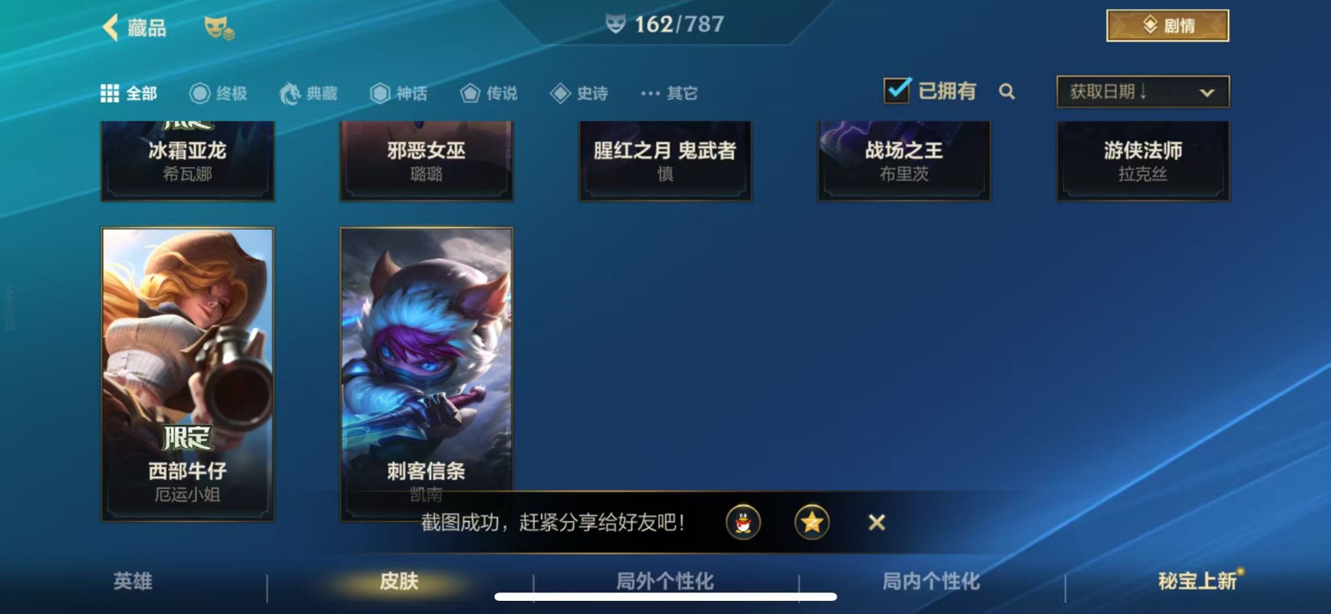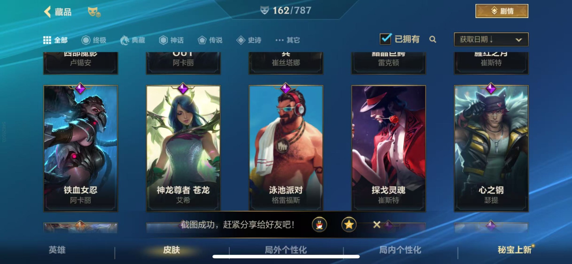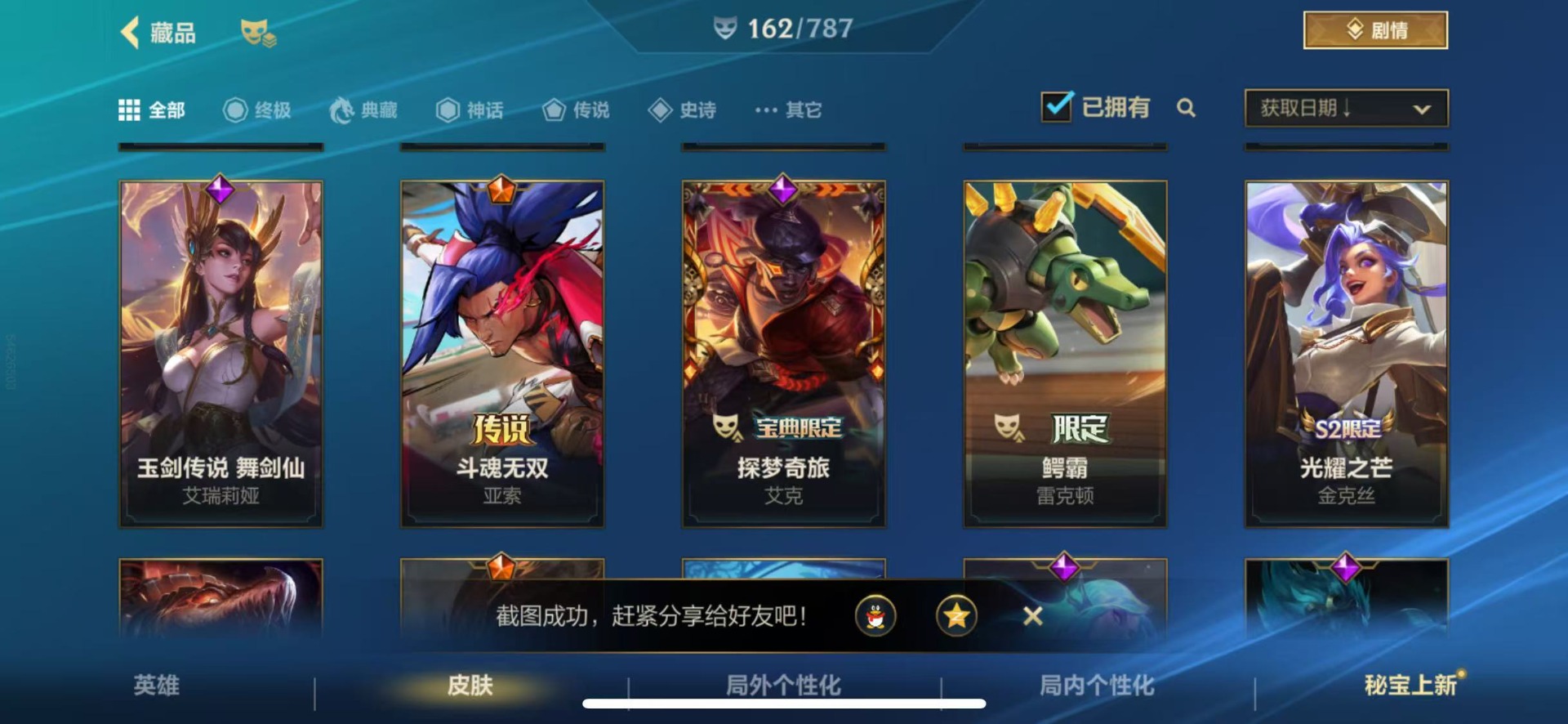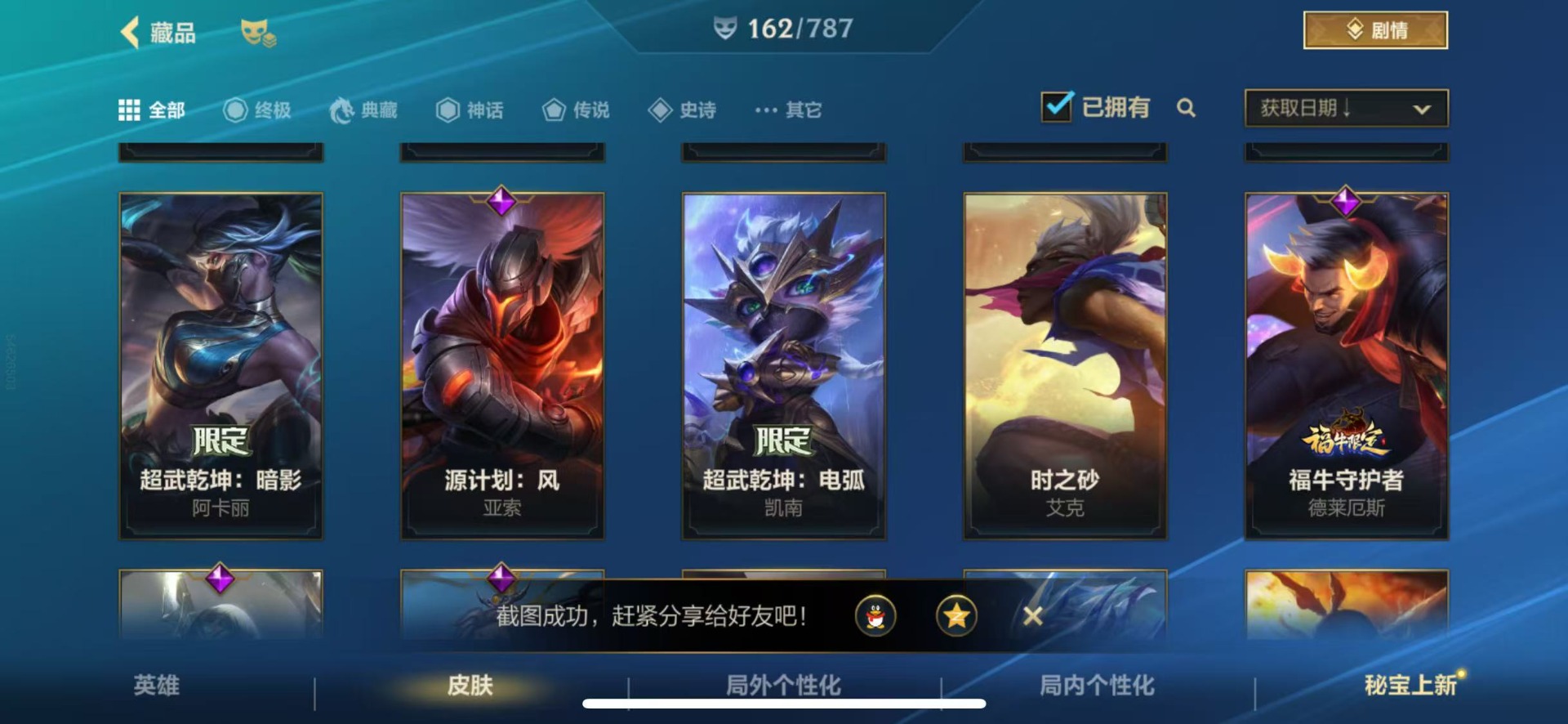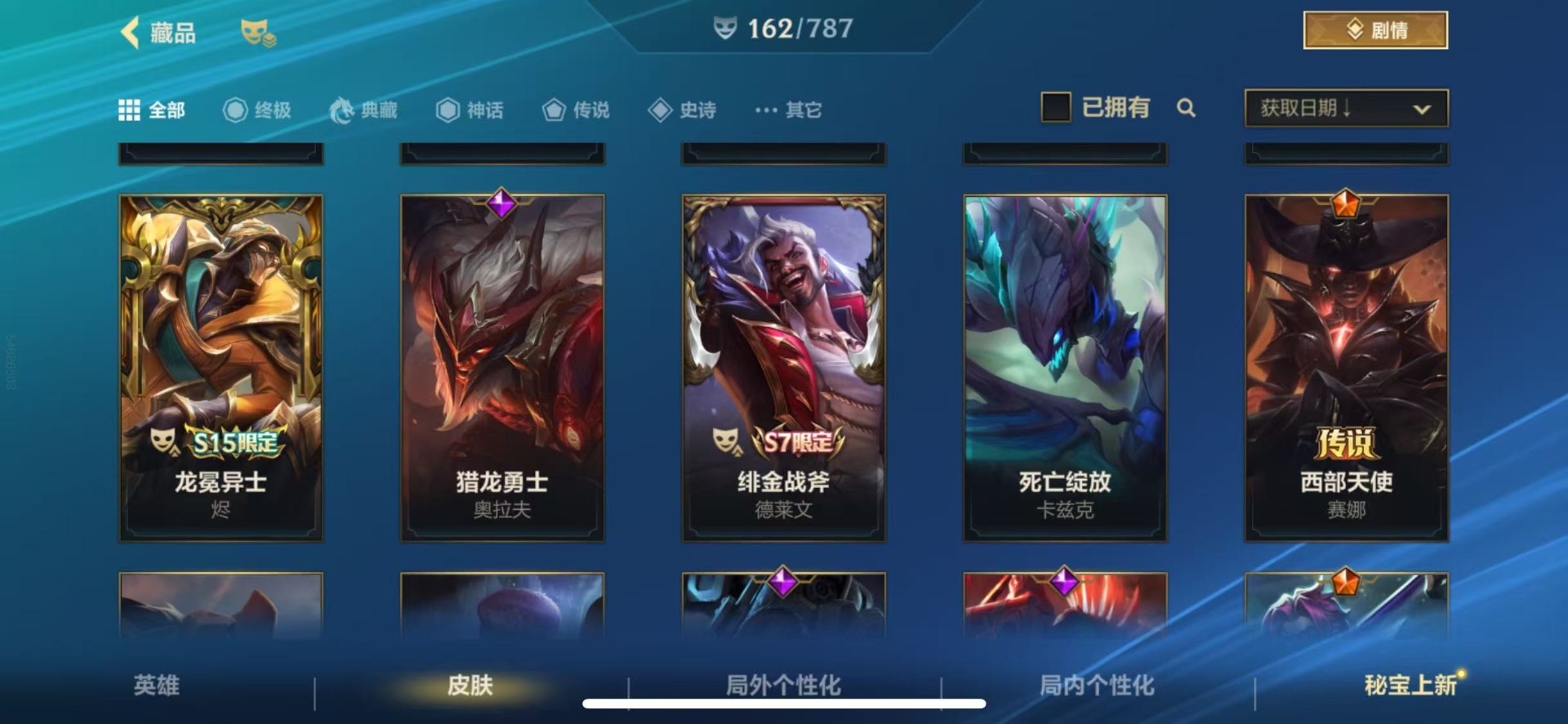 3神话 2限定 30传说 63史诗 162皮肤 可二次 可修改实名 【段位】:大师 【神话皮】:露展虹舞 阿萝拉涂鸦小队斑斓艺术布兰德春晖仙子苍云缥缈卡莎 【限定皮肤】:星之守护者霞星之守护者洛 【传说皮】:暗星尊黎明使者德莱文御风墨影 亚索淳和墨意 嘉文四世心之钢凯隐灵魂莲华腕豪