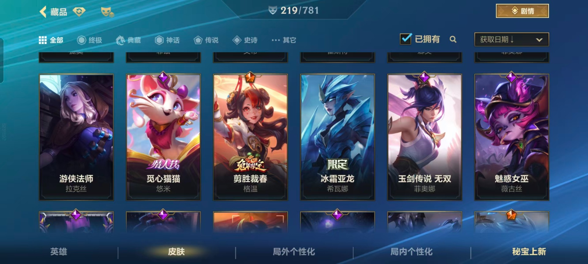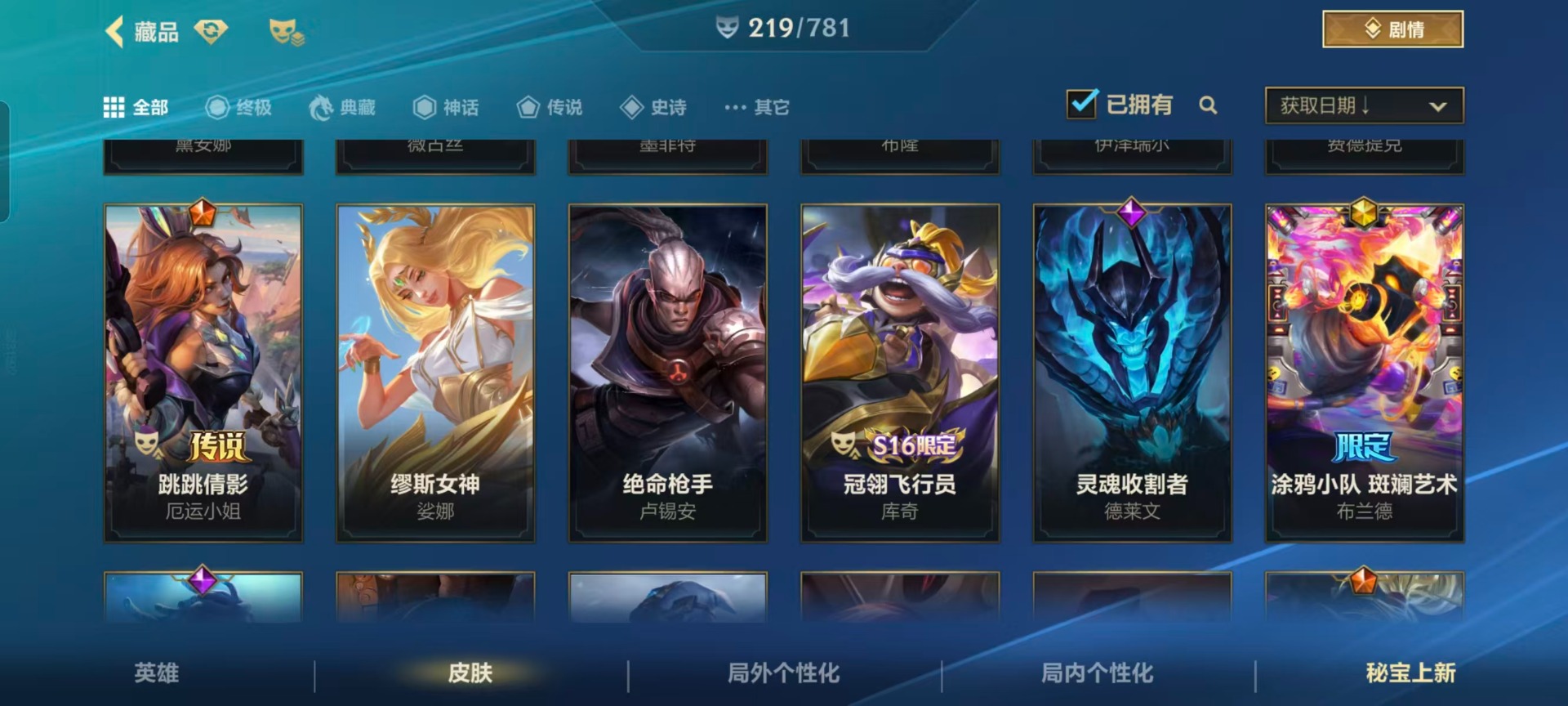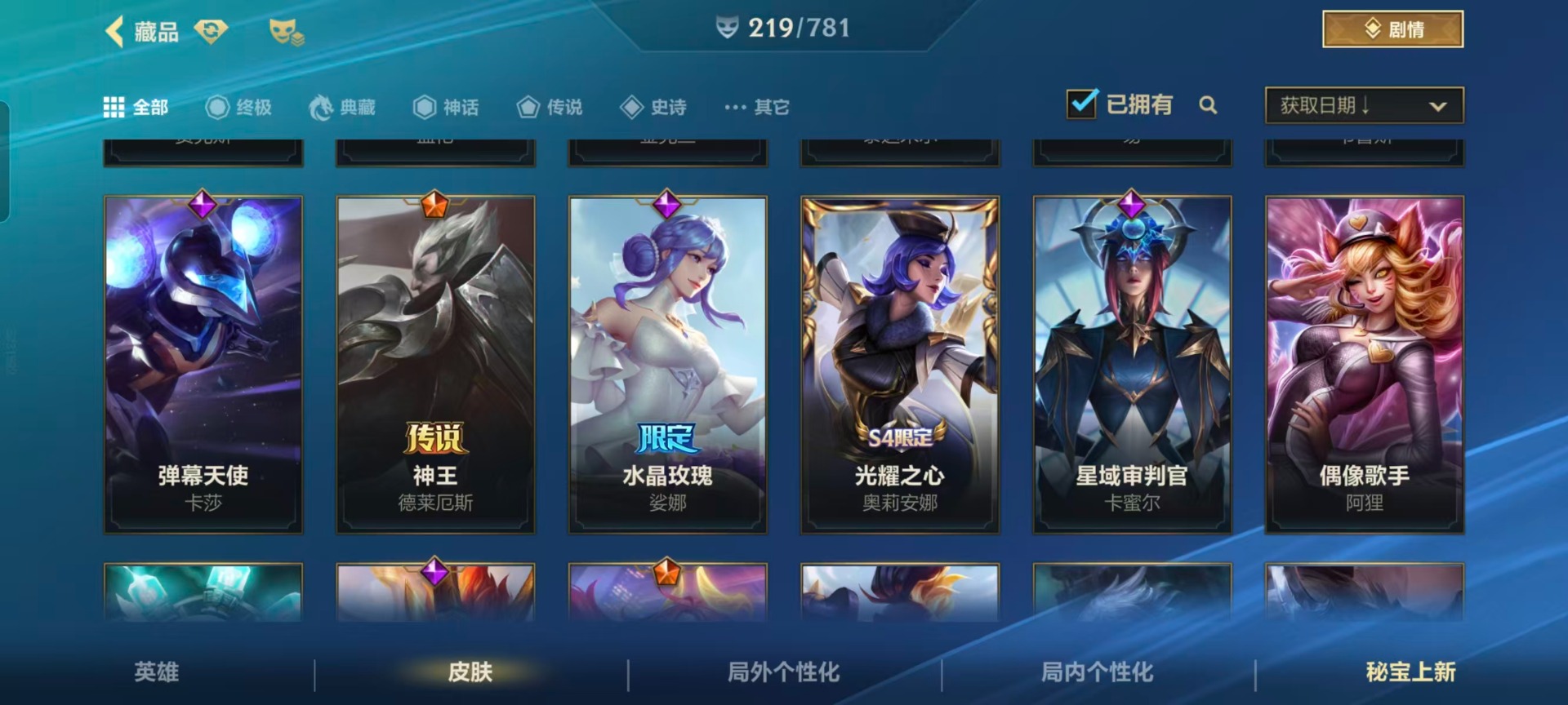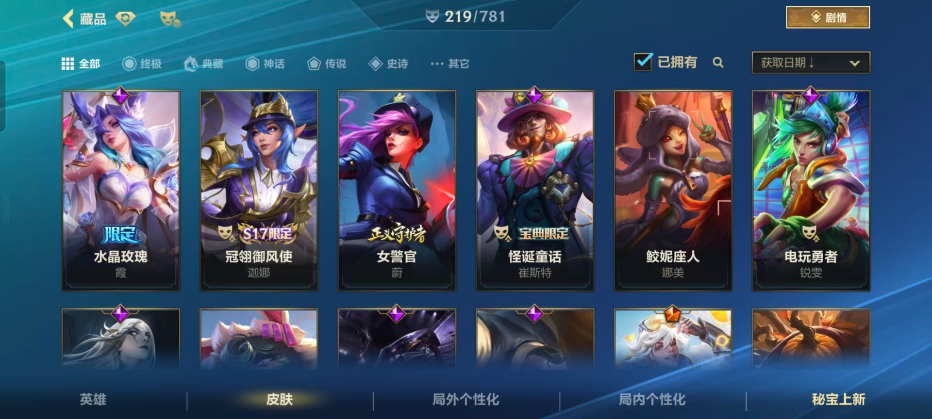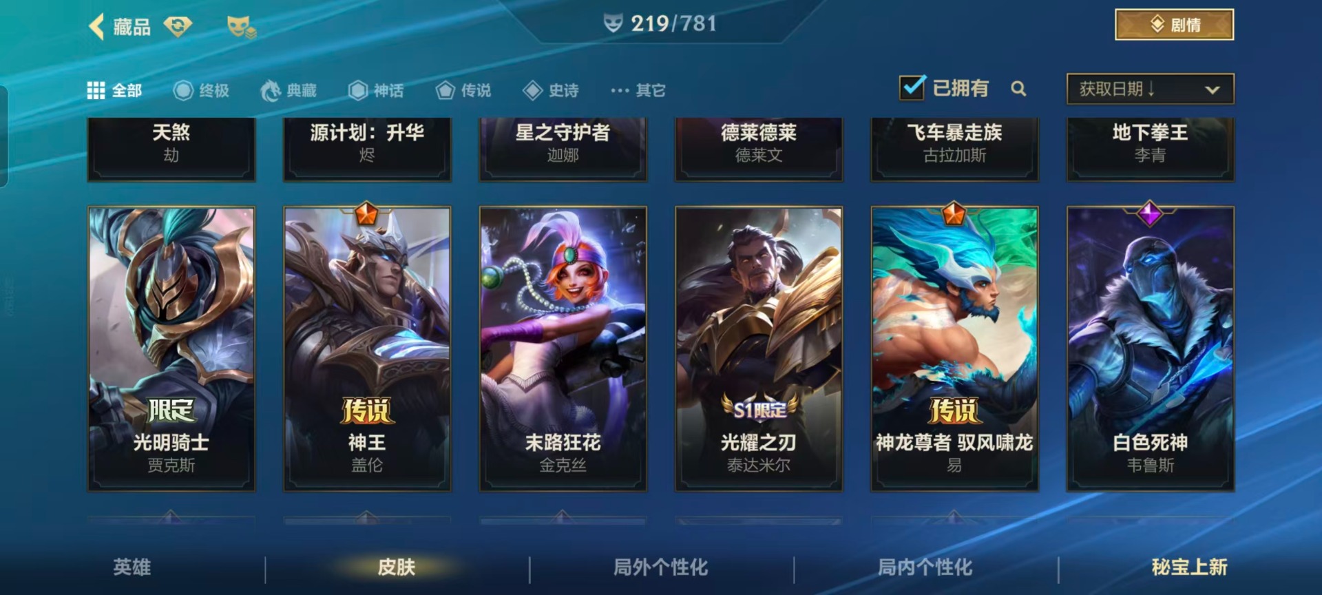 2神话 7限定 25传说 89史诗 219皮肤 可二次 可修改实名 【段位】:铂金 【神话皮】:涂鸦小队斑斓艺术布兰德龙的传人 【限定皮肤】:龙的传人地底世界卡牌广寒仙子嫦娥斩星魔剑赵云子龙水晶玫瑰永恩水晶玫瑰琴女 【传说皮】:暗星尊天棱快晴 伊泽瑞尔西部魔影卢锡安天煞劫神王
