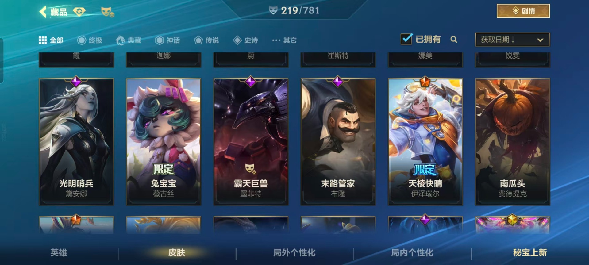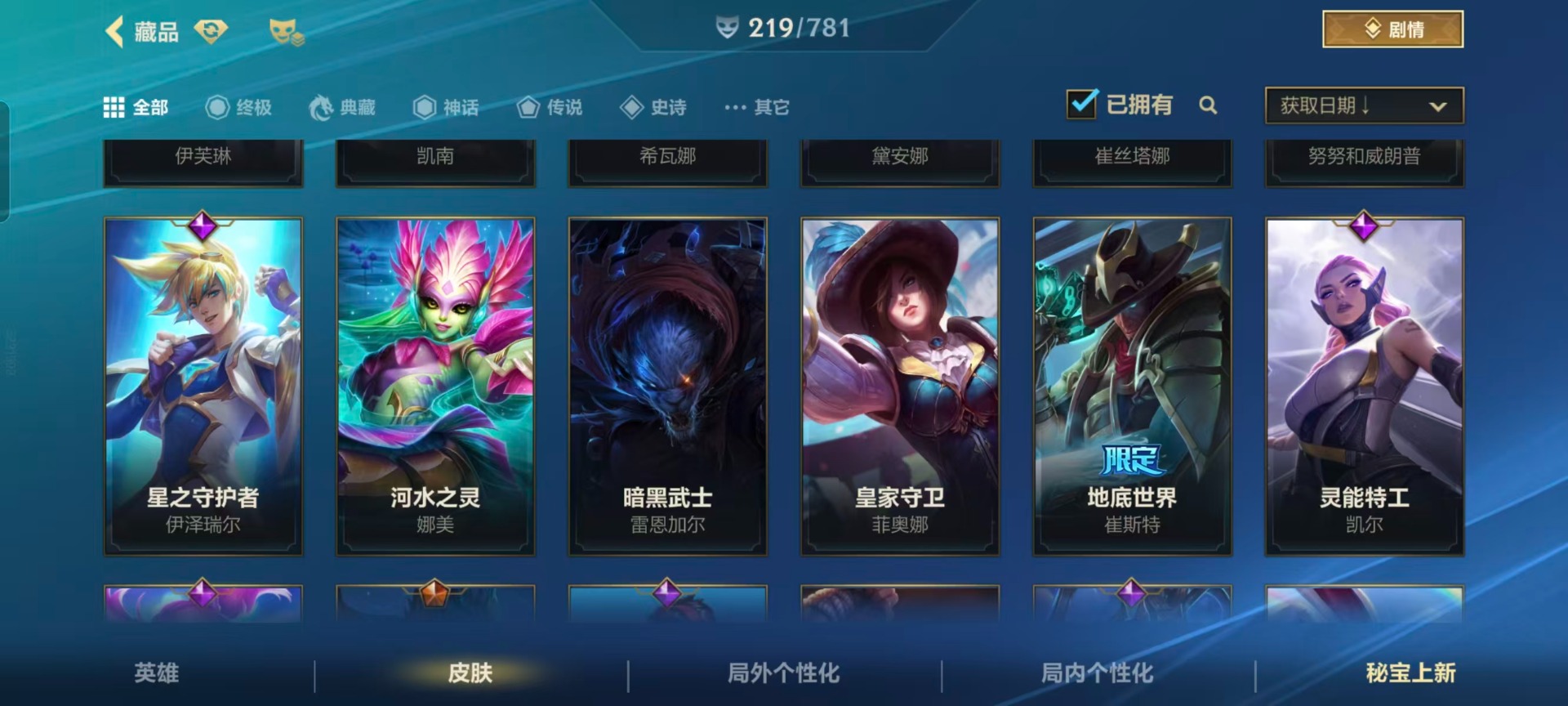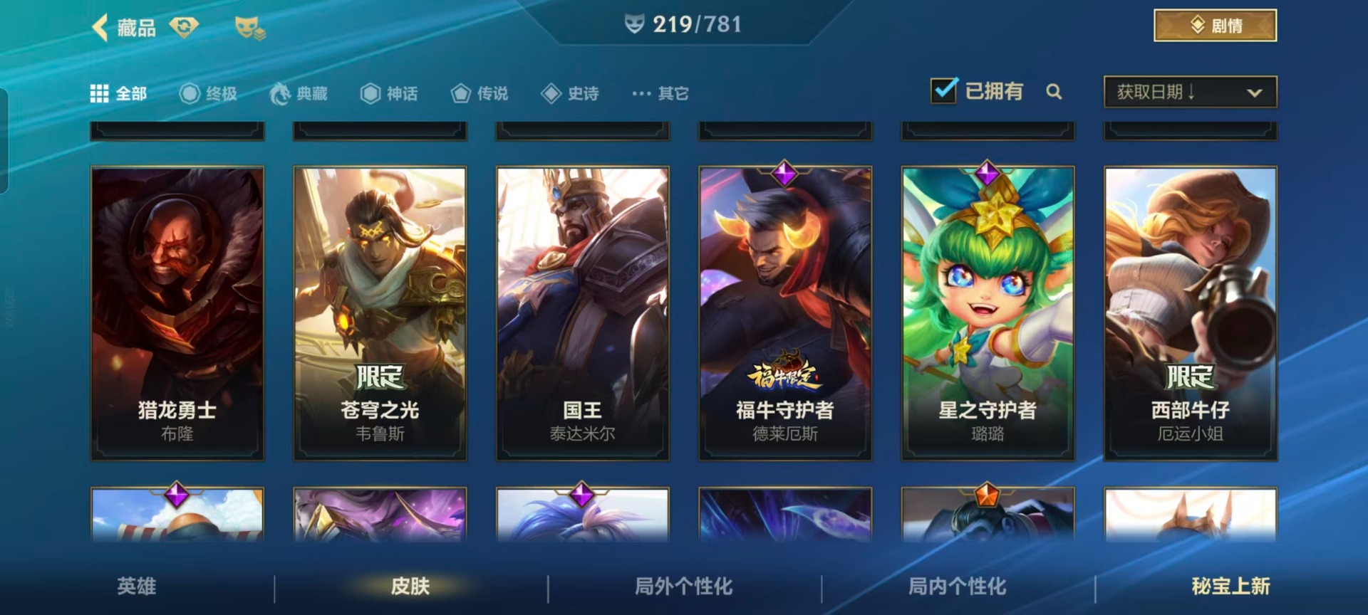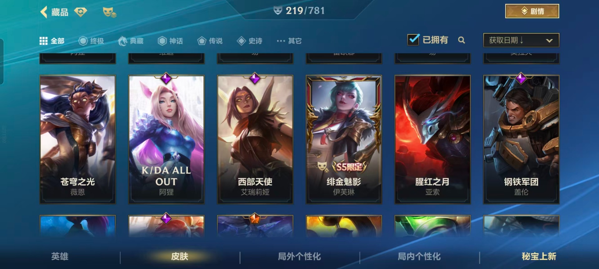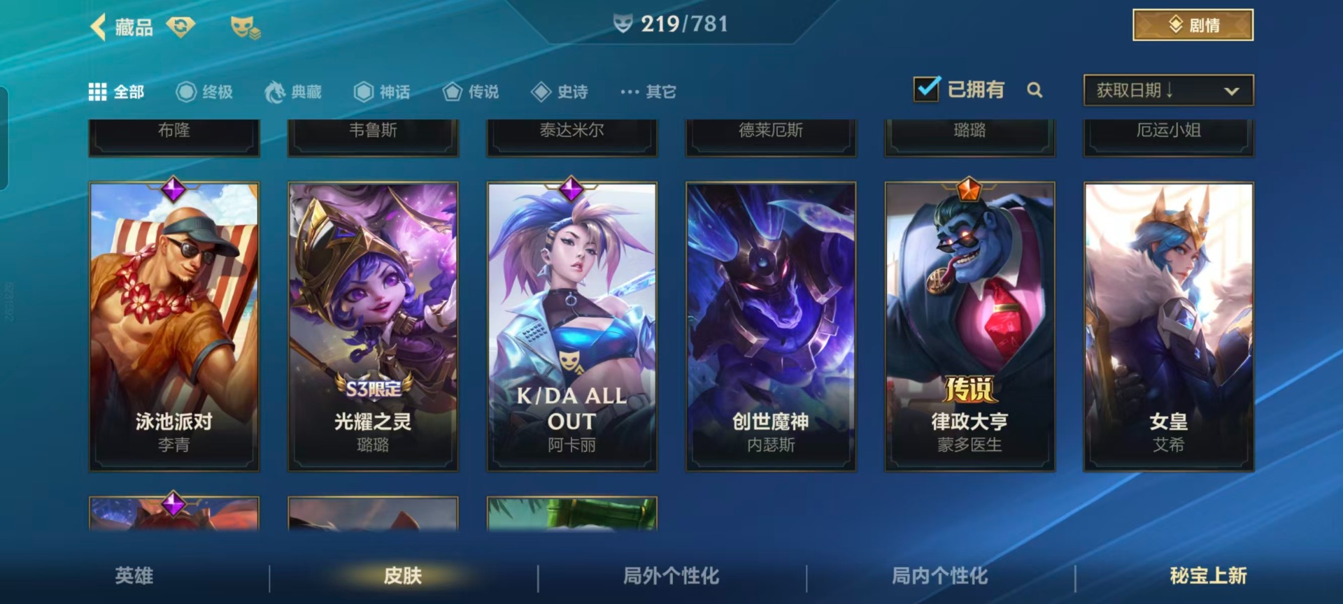 2神话 7限定 25传说 89史诗 219皮肤 可二次 可修改实名 【段位】:铂金 【神话皮】:涂鸦小队斑斓艺术布兰德龙的传人 【限定皮肤】:龙的传人地底世界卡牌广寒仙子嫦娥斩星魔剑赵云子龙水晶玫瑰永恩水晶玫瑰琴女 【传说皮】:暗星尊天棱快晴 伊泽瑞尔西部魔影卢锡安天煞劫神王