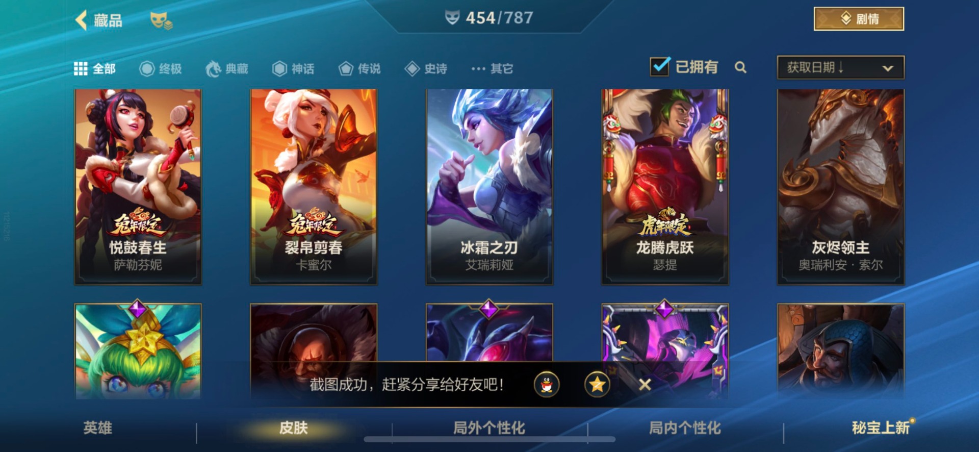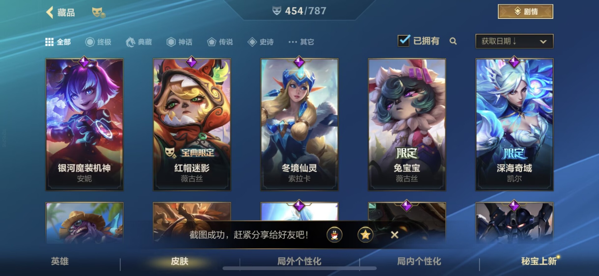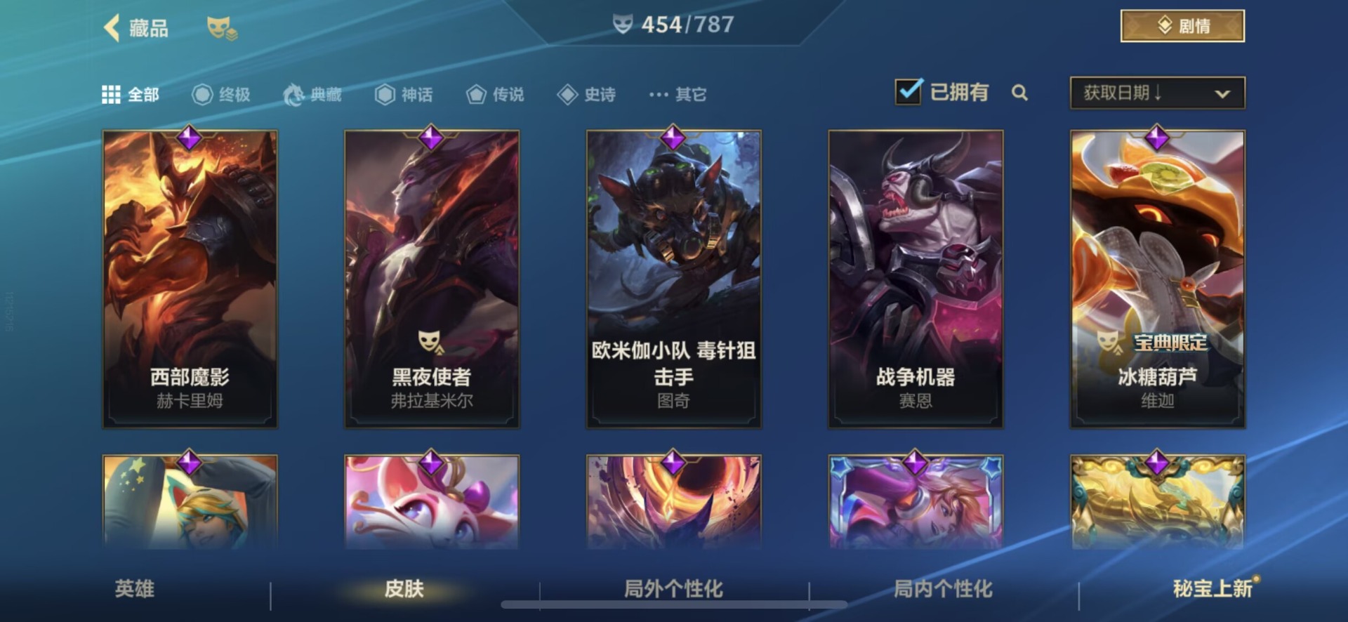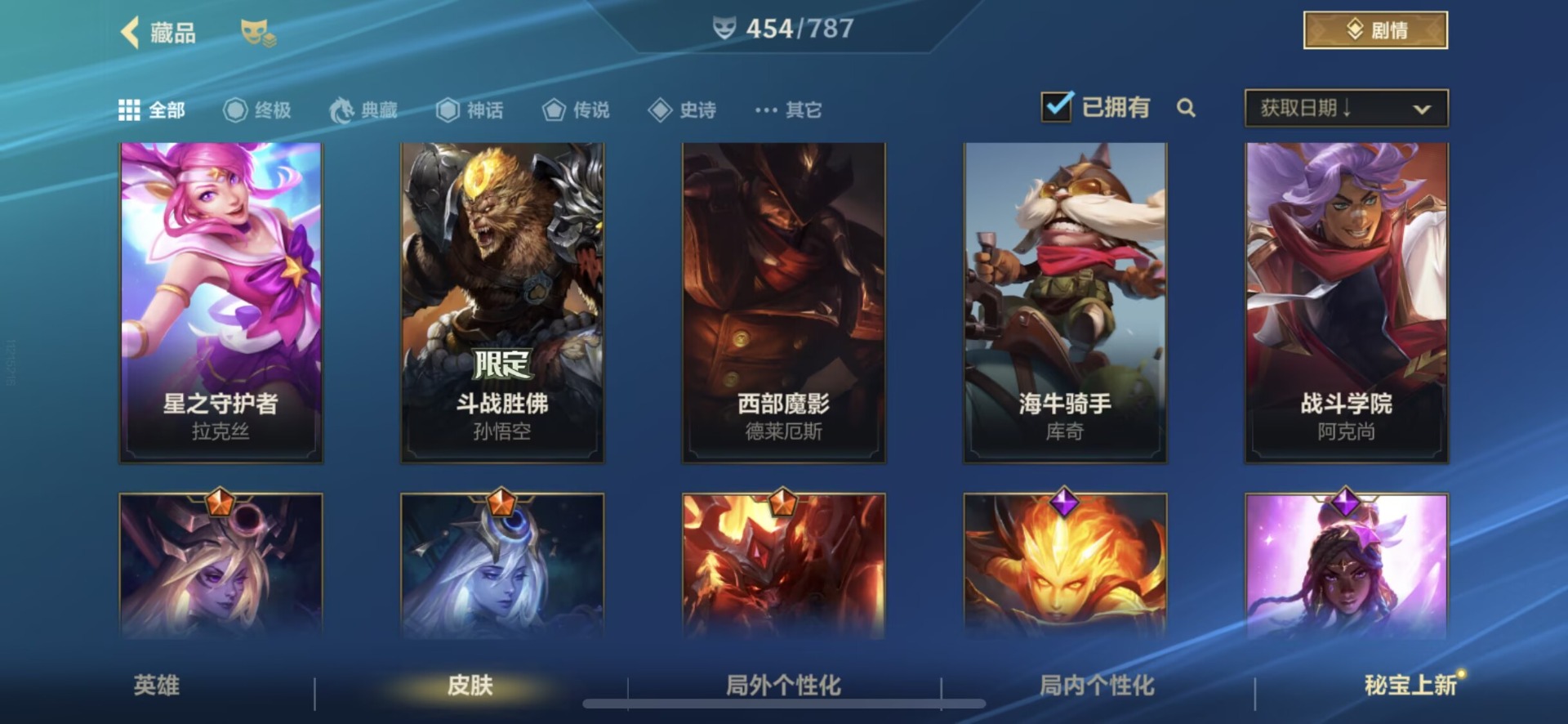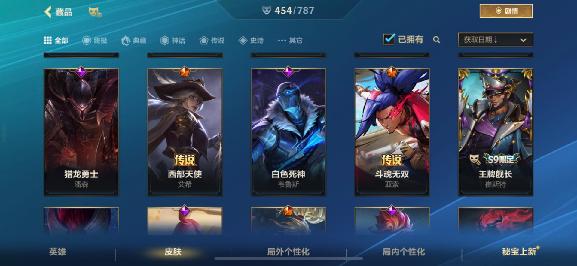 2典藏 9神话 27限定 50传说 244史诗 454皮肤 可二次 可修改实名 【段位】:宗师 【典藏皮】:超武乾坤:孤拳超武乾坤:虹影 【神话皮】:海克斯科技 雷克顿乘龙破渊 李青暮星追影 卡莎此志凌云 嘉文四世至臻喵喵魅影金克丝灰烬骑士派克火焰澎湃火力全开臻藏光影巨翼臻藏西部