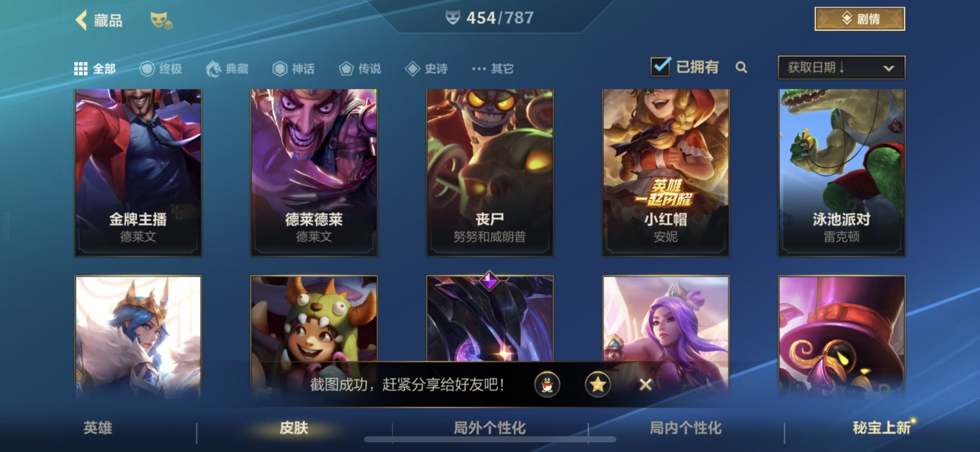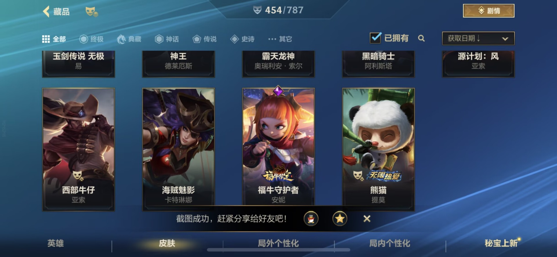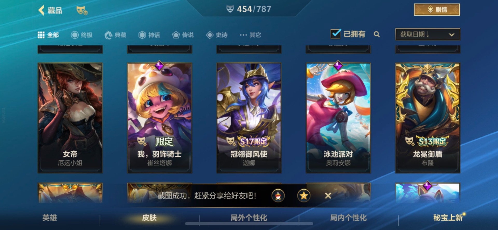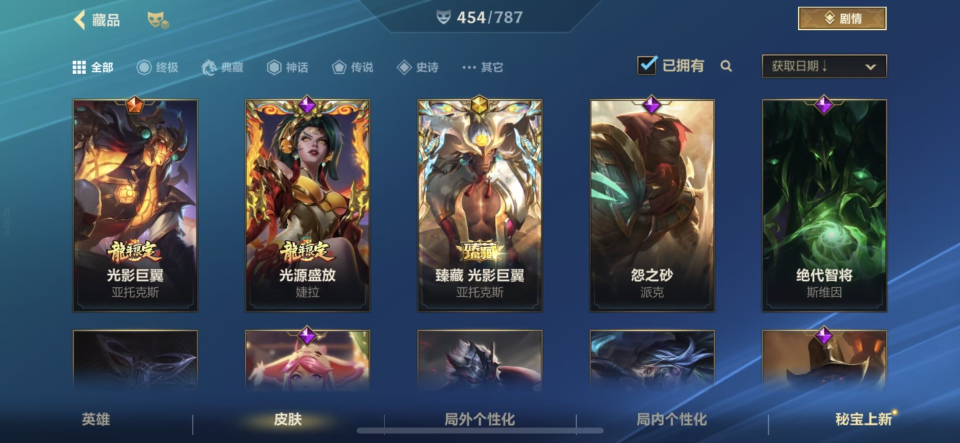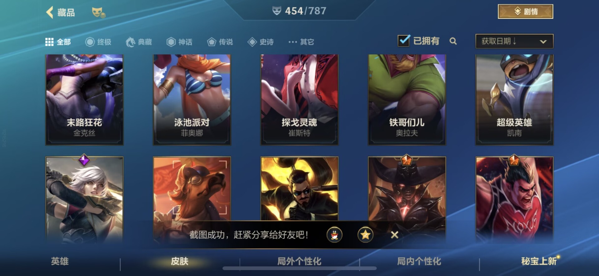 2典藏 9神话 27限定 50传说 244史诗 454皮肤 可二次 可修改实名 【段位】:宗师 【典藏皮】:超武乾坤:孤拳超武乾坤:虹影 【神话皮】:海克斯科技 雷克顿乘龙破渊 李青暮星追影 卡莎此志凌云 嘉文四世至臻喵喵魅影金克丝灰烬骑士派克火焰澎湃火力全开臻藏光影巨翼臻藏西部