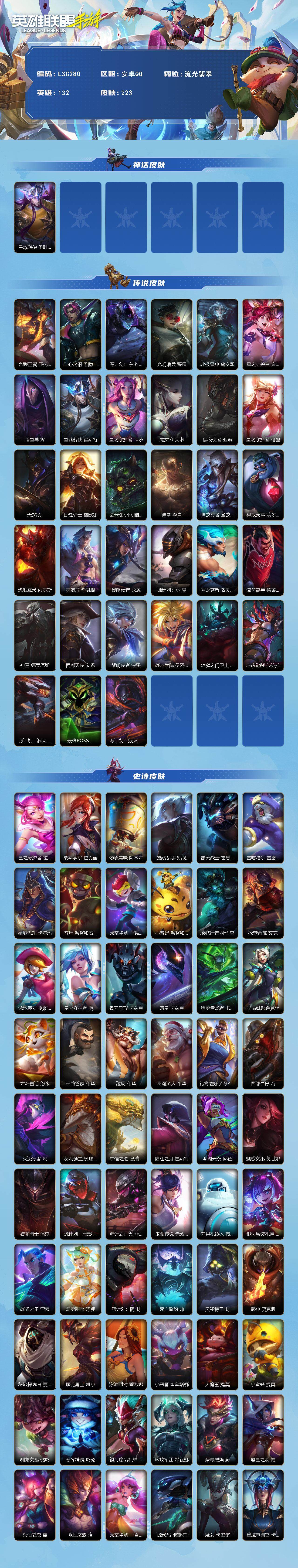 【lsc280】132英雄/223皮肤/流光翡翠/星域游侠崔斯特圣时豪杰/光影巨翼亚托克斯/心之钢凯隐/源计划:净化薇恩/光明哨兵薇恩/北极星神黛安娜/星之守护者金克丝/暗星尊烬/星域游侠崔斯特/星之守护者卡莎/魔女伊芙琳/黑夜使者亚索/星之守护者阿狸/天煞劫/日蚀骑士蕾欧娜/欧米伽小队 幽灵特工/神拳李青/神龙尊者 圣龙 李青/律政大亨蒙多医生/炼狱魔犬内瑟斯/灵魂莲华瑟提/黎明使者永恩/源