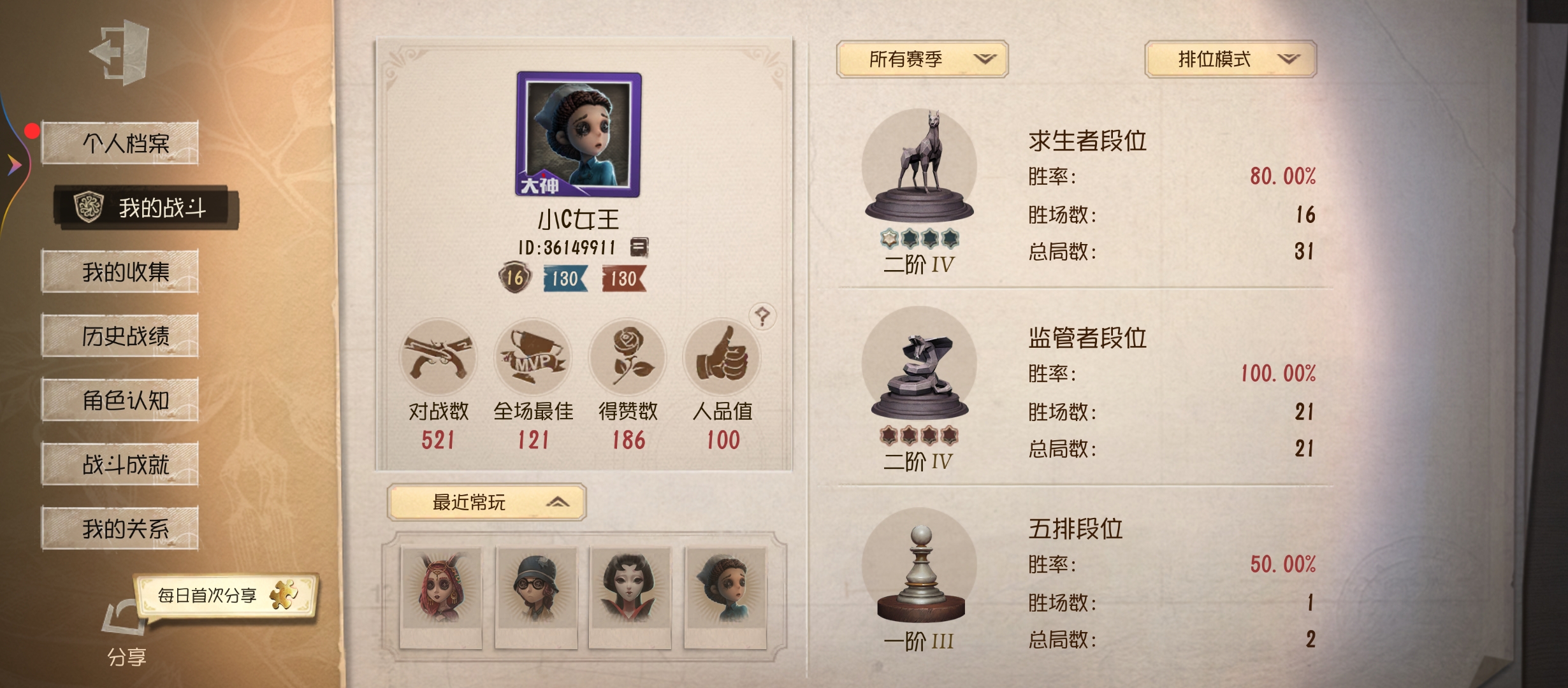 [14055208]第五人格 vivo渠道服 祭司精华双限金 4金皮 3金挂 明日之辉 名誉首席 司药 菲尼克斯 梦之使者 厄运 朝圣者 陶梦嫣 向深处求告