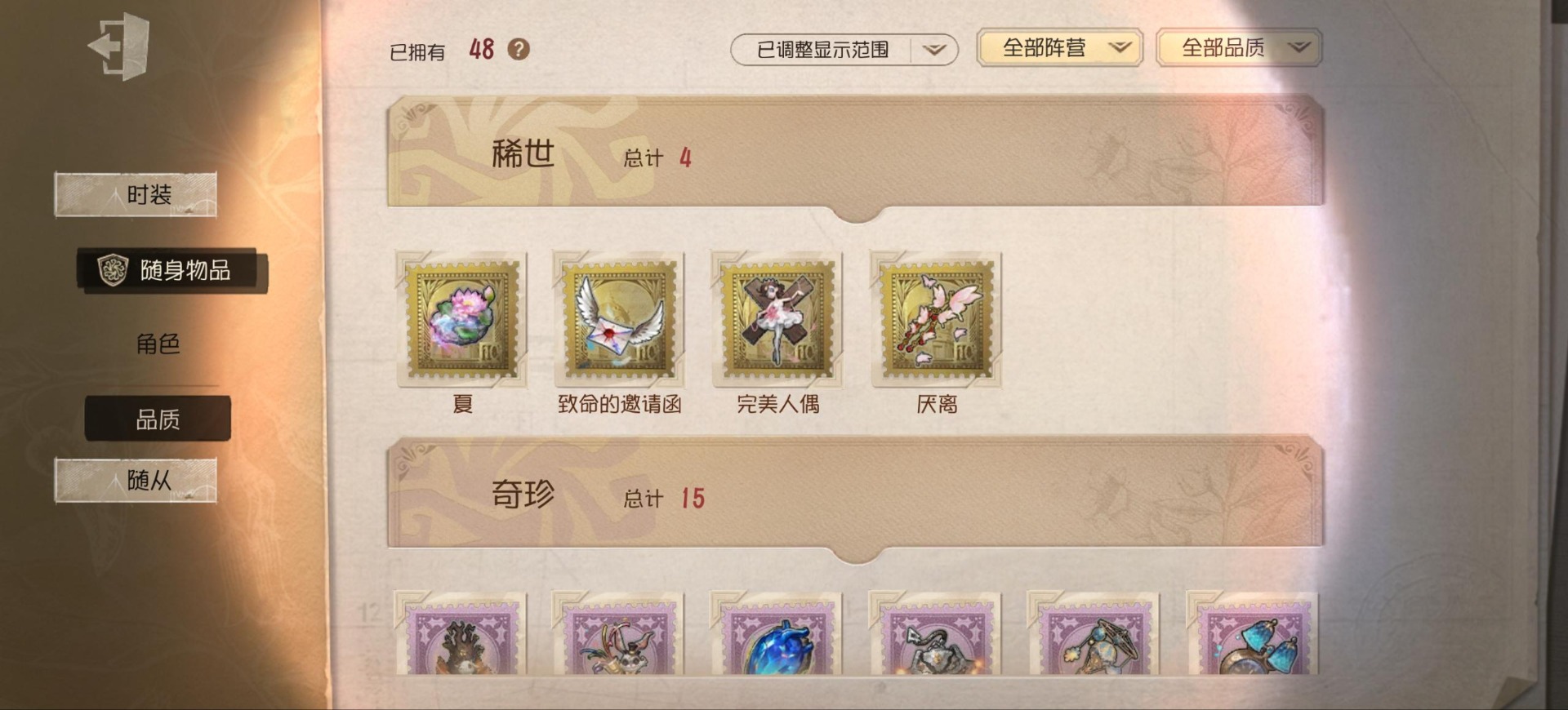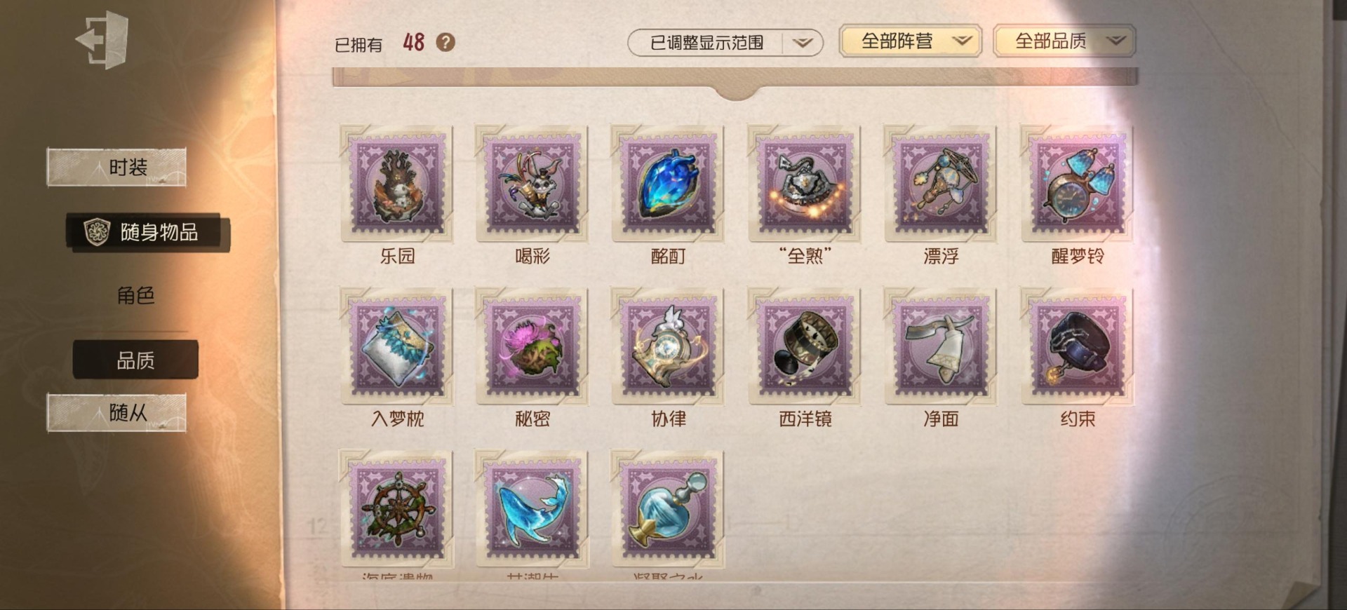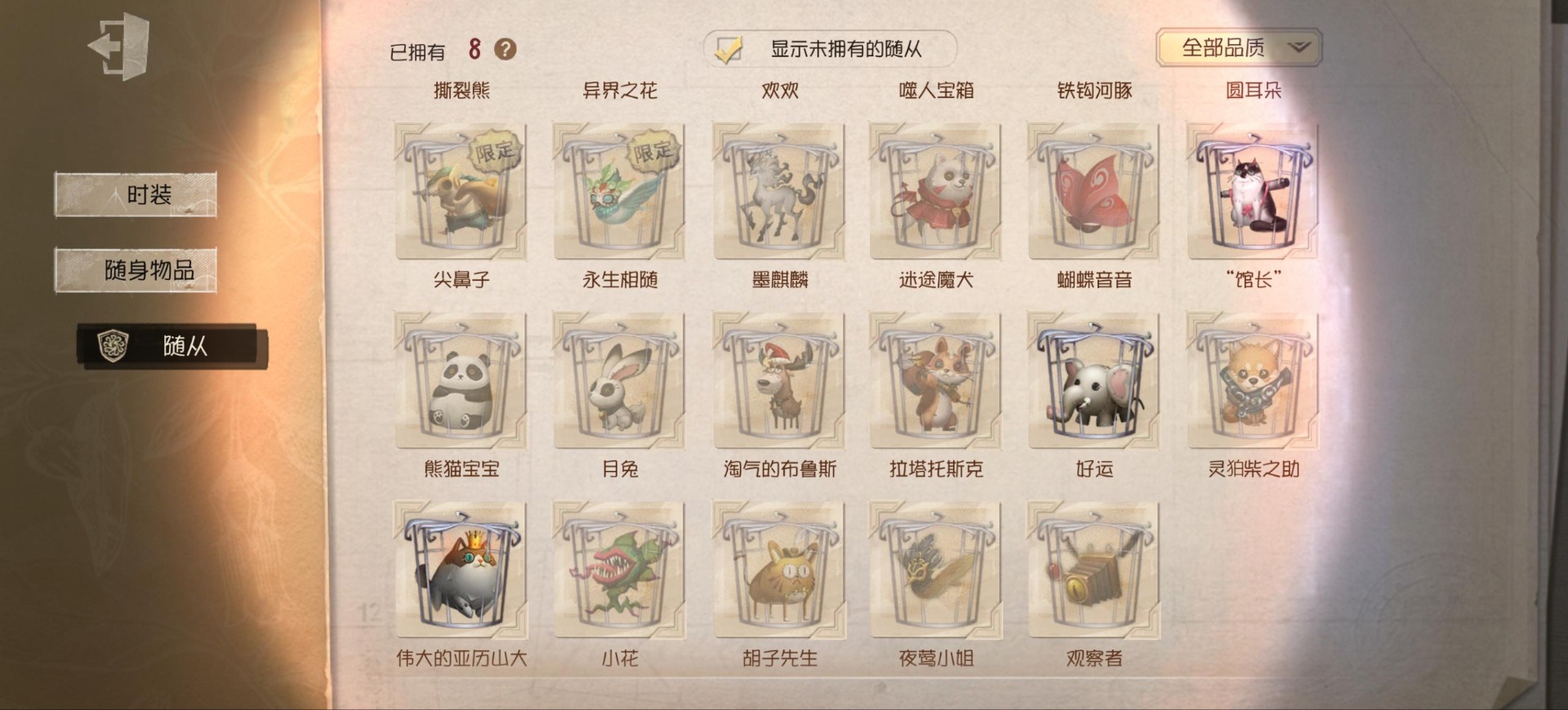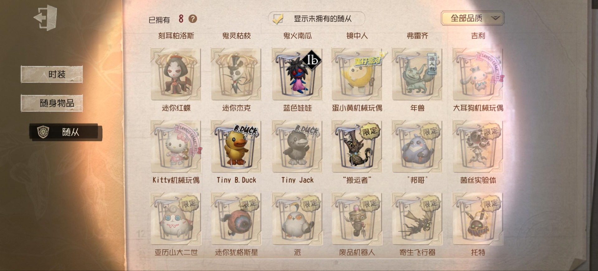 [14552875]安卓官服 手机账号 149时装 9金皮 39紫皮 8随从 48随身物品 【时装】:渔女-垂泪的神女红夫人-应许之日心理学家-长夜调香师-提炼师“小女孩”-欧律狄刻杂技演员-可可豆“心理学家”-朱丽叶作曲家-澄明的理性记者-伊布邮差-华生医生古董商-陶梦嫣玩具商-清洁翼“跛脚羊”-灰云渔女-百万人鱼渔女-破魔之刃入殓师-记忆之骑邮差-潘塔龙火灾调查员-“膨化”玩具商-咫尺微光画家-多色印刷冒险家-报社主编蜘蛛-不息载械“小女孩”-异动指针小说家-“伊始新篇”舞女-流离的月光宿伞之魂-桃面书生“心理学家”-银骑士摄影师-“琥珀”“法罗女士”-芳泽霞蜘蛛-聚光灯下祭司-名誉首席蜡像师-收藏品“记录员”-删除符前锋-水球救生厂长-不死护卫爱哭鬼-被时间遗忘的男孩红夫人-夜潮红蝶-竹华调香师-笼中之蝶调香师-红菱艳“小女孩”-滚滚伙伴摄影师-宿醉宿伞之魂-阴阳司公摄影师-月下绅士入殓师-守钟人 【随身物品】:夏(稀世)“全熟”奇珍入梦枕奇珍约束奇珍致命的邀请函稀世醒梦铃奇珍漂浮奇珍酩酊奇珍喝彩奇珍乐园奇珍秘密(奇珍)厌离稀世海底遗物奇珍净面奇珍完美人偶稀世协律奇珍西洋镜奇珍凝聚之水奇珍