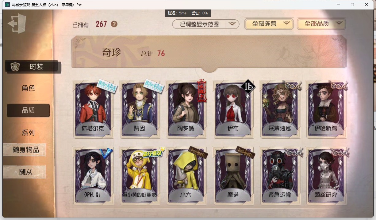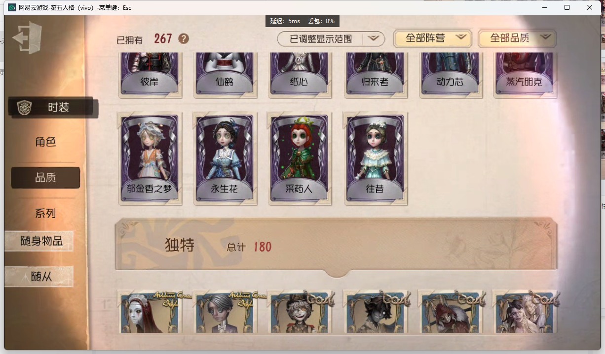 [14553363]vivo 手机账号 267时装 11金皮 76紫皮 14随从 91随身物品 【时装】:园丁-源自星辰古董商-招风旗黄衣之主-克朗普斯咒术师-祝祷渔女-垂泪的神女勘探员-盖提亚之遗小说家-最原终一幸运儿-星航之旅调酒师-夜光杯园丁初晴“小女孩”-小六爱哭鬼-摩诺“慈善家”-斗牛士之吻医生-永生花先知-四月一日君寻小提琴家-不羁的浪漫古董商-黑鸦红夫人-应许之日咒术师-椰香假日医生-竹荫守护者空军-爱神之吻“囚徒”-天海兰太郎“小女孩”-欧律狄刻调香师-提炼师咒术师-缄默者杂技演员-雨宫莲杂技演员-狡渔女-百万人鱼记者-伊布气象学家-茶歇小姐梦之女巫-裁缝夫人爱哭鬼-善恶的本性渔女-审判之翎园丁-郁金香之梦古董商-陶梦嫣病患-休塔尔克冒险家-赞因渔女-鬼脸天蛾魔术师-动力芯幸运儿-蛋小黄的好朋友古董商-墨韵时空之影-“有机磷”佣兵-百目鬼静教授-紧急运输机械师-纸心古董商-菌丝研究击球手-钨先知-纯白之盐宿伞之魂-桃面书生古董商-oph.qi画家-多色印刷拉拉队员-采集速巡小说家-“伊始新篇”记者-梦境中的爱丽丝“法罗女士”-芳泽霞祭司-冰中蝶击球手-反骨之缚机械师-归来者祭司-神圣之辉祭司-梦之使者祭司-“厄运”鹿头-蒸汽朋克昆虫学者-曼陀罗红夫人-夜潮红夫人-女大公红夫人-斯嘉丽红夫人-贝拉夫人红蝶-仙鹤红蝶-彼岸红蝶-罗生门红夫人-最后一舞调香师-致命温柔调香师-红菱艳调香师-冰上舞蹈调香师-花序医生-采药人“小女孩”-滚滚伙伴“小女孩”-桃乐丝医生-往昔医生-浴火绯花“小女孩”-年岁孽蜥-骨笛“使徒”-校监夫人宿伞之魂-日月相随宿伞之魂-阴阳司公 【随身物品】:调制架(稀世)海岸花环(奇珍)晴天娃娃(奇珍)诅咒黑云稀世遥控器奇珍回旋镖奇珍咖啡壶稀世枯萎的花冠奇珍拾贝奇珍喝彩奇珍指挥(奇珍)欢呼(奇珍)未奏的乐章(奇珍)秘密(奇珍)沙漠精灵(奇珍)火火火(奇珍)重构(稀世)纠缠(奇珍)电掣(奇珍)见证稀世白泽玉奇珍共潮生奇珍玫瑰手杖蓝奇珍厌离稀世协律奇珍“星辰”稀世