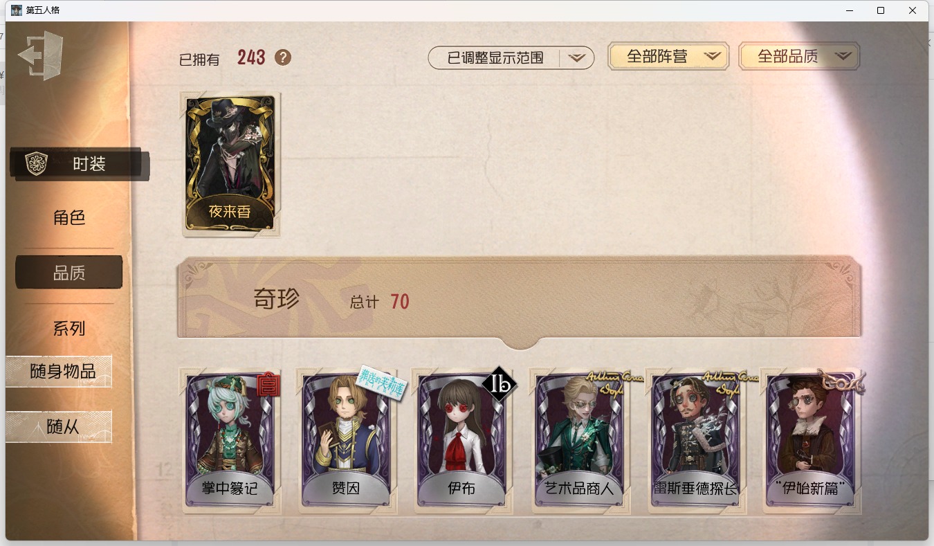 [14563147]苹果官服 邮箱账号 1虚妄杰作 243时装 13金皮 70紫皮 18随从 101随身物品 【时装】:古董商-招风旗渔女-垂泪的神女使徒-多加雷萨小说家-最原终一画家-温暖的平安夜古董商-木兰园丁-异想hello kitty爱哭鬼-摩诺渔女-百万人鱼律师-亚伯拉罕·葛雷祭司-“绯”渔女-chef k古董商-填海平邮差-秋日随想“囚徒”-天海兰太郎调香师-提炼师古董商-黑鸦咒术师-椰香假日杂技演员-雨宫莲杂技演员-joker空军-爱神之吻记者-伊布红蝶-融化的泪琥珀大副-雷斯垂德探长雕刻家-善忘的海马体骑士-艺术品商人爱哭鬼-善恶的本性教授-吟游诗人画家-掌中篆记26号守卫-秘密大厨小说家-无归的昨日冒险家-赞因“法罗女士”-向深处求告魔术师-动力芯幸运儿-蛋小黄的好朋友古董商-墨韵宿伞之魂-桃面书生摄影师-“琥珀”勘探员-盛夏飞盘“法罗女士”-violet古董商-菌丝研究先知-纯白之盐调酒师-逐浪的玫瑰“法罗女士”-芳泽霞“小女孩”-异动指针小说家-“伊始新篇”园丁-郁金香之梦破轮-沙滩漂移蜡像师-收藏品空军-新岛真空军-queen祭司-“朝圣者”机械师-佐仓双叶空军-“苏珊娜”蜡像师-淋浴魔术师-梅林昆虫学者-可妮兔“杰克”-夜来香大副-明智吾郎“噩梦”-随机数红蝶-仙鹤红蝶-彼岸红蝶-更纱红夫人-贝拉夫人红蝶-竹华舞女-高卷杏舞女-女武神舞女-panther调香师-致命温柔调香师-lady k调香师-红菱艳调香师-摩涅莫绪涅之梦调香师-花序园丁-奥村春先知-月相“小女孩”-年岁前锋-坂本龙司盲女-海西遗风梦之女巫-川上富江摄影师-月下绅士入殓师-喜多川祐介 【随身物品】:荣光的残像(稀世)茅龙书(稀世)夏(稀世)遗忘之花(稀世)火火火(奇珍)指挥(奇珍)海岸花环(奇珍)海之低语(奇珍)集邮册(奇珍)回旋镖奇珍炸药桶奇珍“全熟”奇珍凝固的声音奇珍漂浮奇珍充气海豚奇珍沙漠精灵(奇珍)咖啡壶稀世德米特里1号奇珍聚集哨笛奇珍手摇铃奇珍酩酊奇珍心海之梦奇珍欢呼(奇珍)糖果鬼(奇珍)秘密(奇珍)折柳稀世海底遗物奇