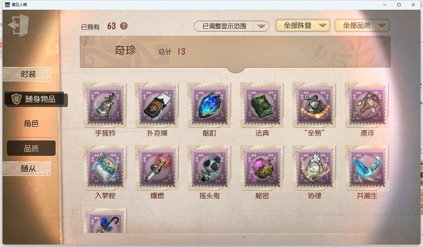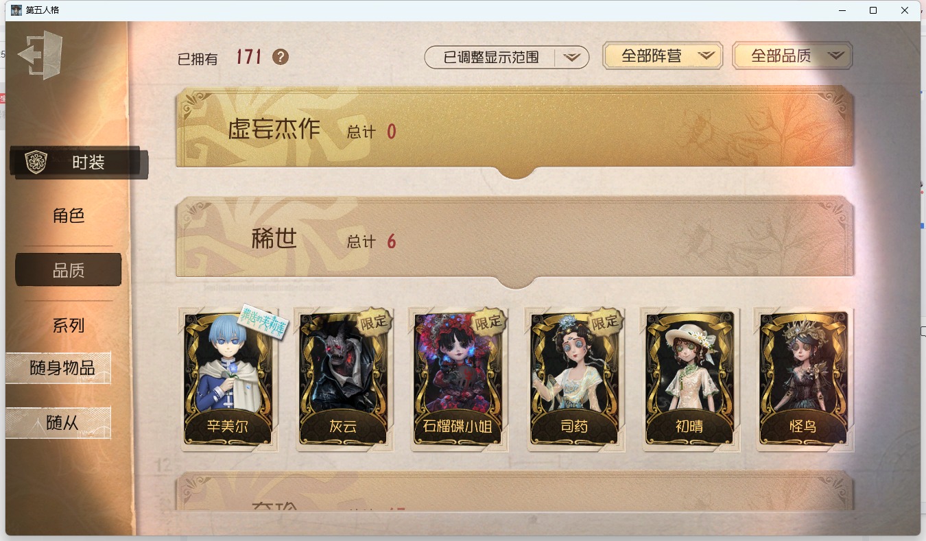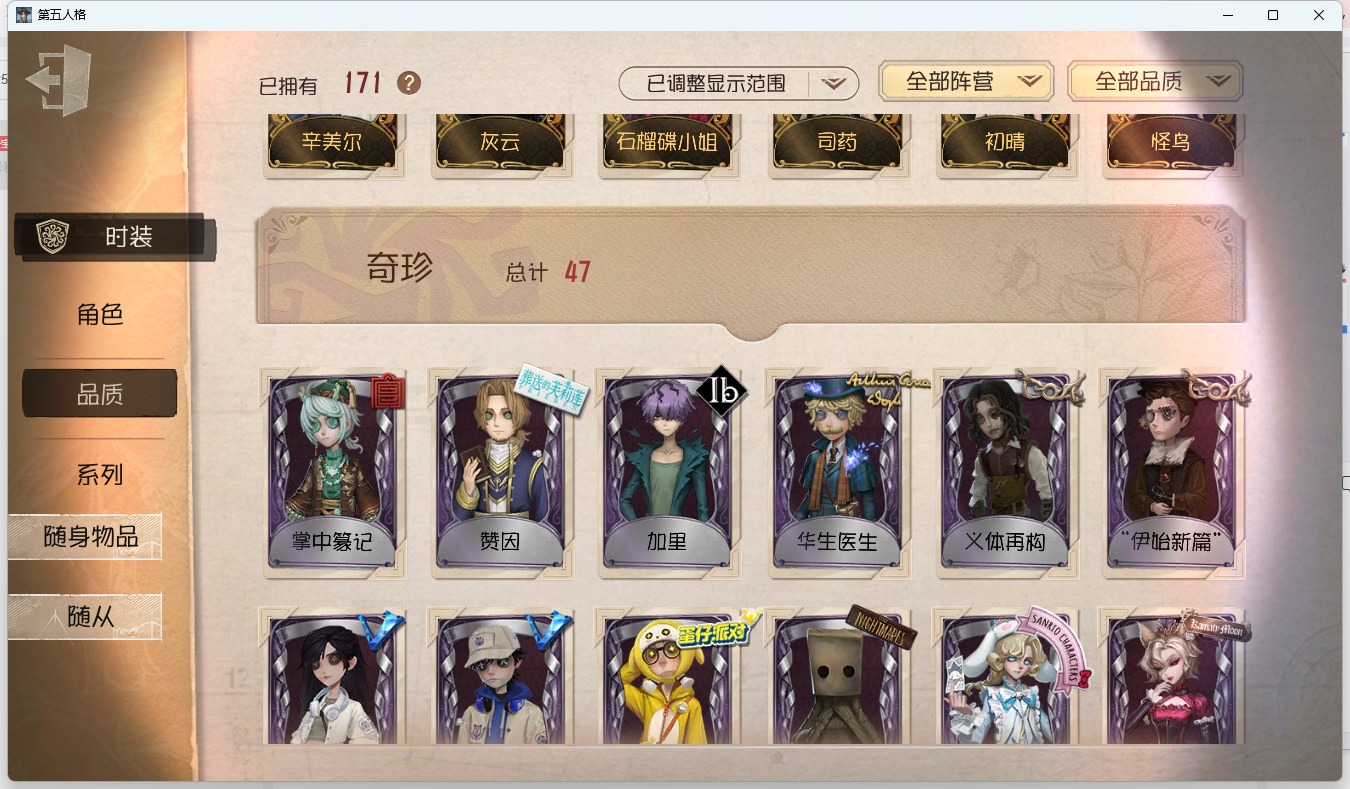 [14564880]安卓官服 手机账号 171时装 6金皮 47紫皮 7随从 63随身物品 【时装】:园丁初晴爱哭鬼-摩诺摄影师-梦境大耳狗园丁-怪鸟杂技演员-ace摄影师-安宁渔女-百万人鱼“杰克”-加里小女孩-石榴蝶小姐园丁-郁金香之梦医生-司药作曲家-澄明的理性邮差-华生医生雕刻家-善忘的海马体画家-掌中篆记作曲家-暮影冒险家-赞因“骑士”-辛美尔“跛脚羊”-灰云幸运儿-蛋小黄的好朋友囚徒-rice佣兵-oph.naib邮差-潘塔龙火灾调查员-“膨化”调香师-buffy入殓师-记忆之骑宿伞之魂-桃面书生“心理学家”-银骑士古董商-oph.qi画家-多色印刷调酒师-校对人木偶师-义体再构小说家-“伊始新篇”哭泣小丑-熄灭的太阳摄影师-“琥珀”“法罗女士”-芳泽霞蜘蛛-聚光灯下蜡像师-收藏品前锋-水球救生机械师-re-swim祭司-梦之使者昆虫学者-曼陀罗大副-罗勒爱哭鬼-伊万红夫人-女大公舞女-高卷杏舞女-panther“小女孩”-滚滚伙伴园丁-兰闺惊梦园丁-罗刹绯春“囚徒”-冬蝉