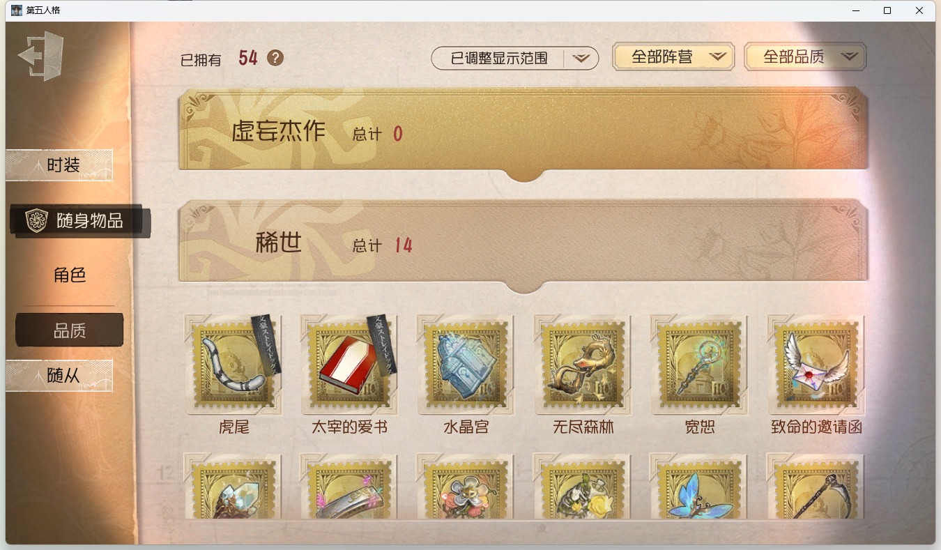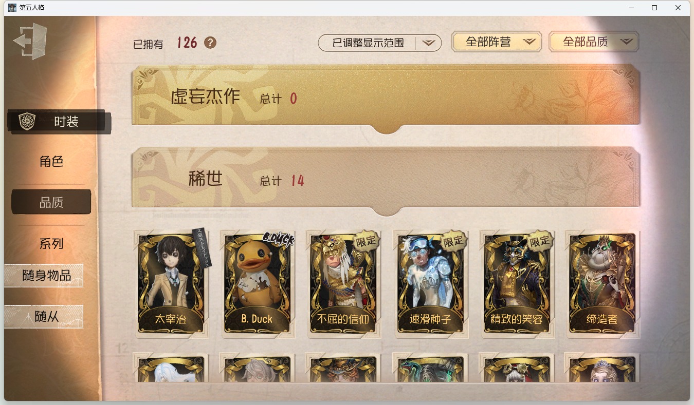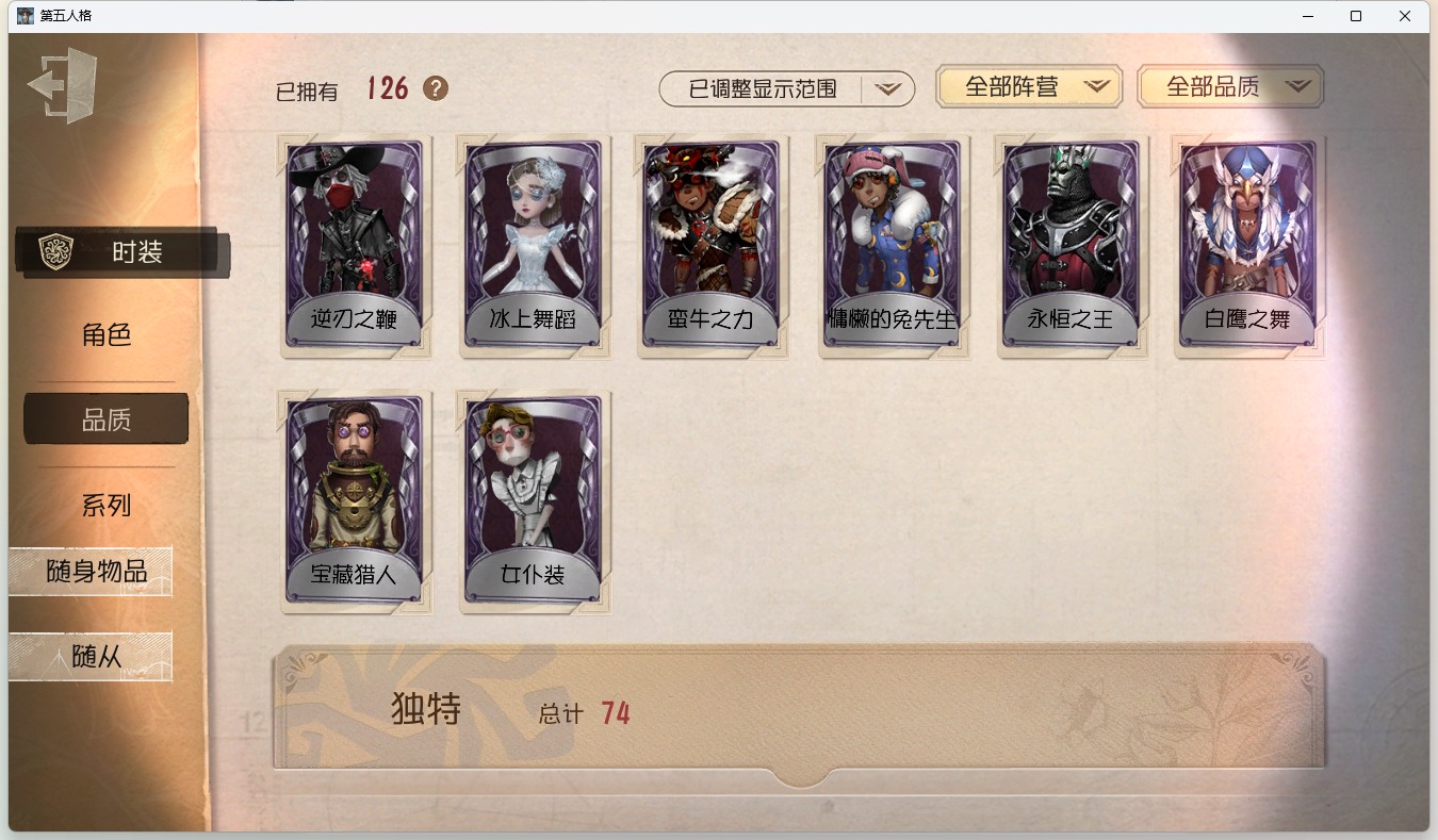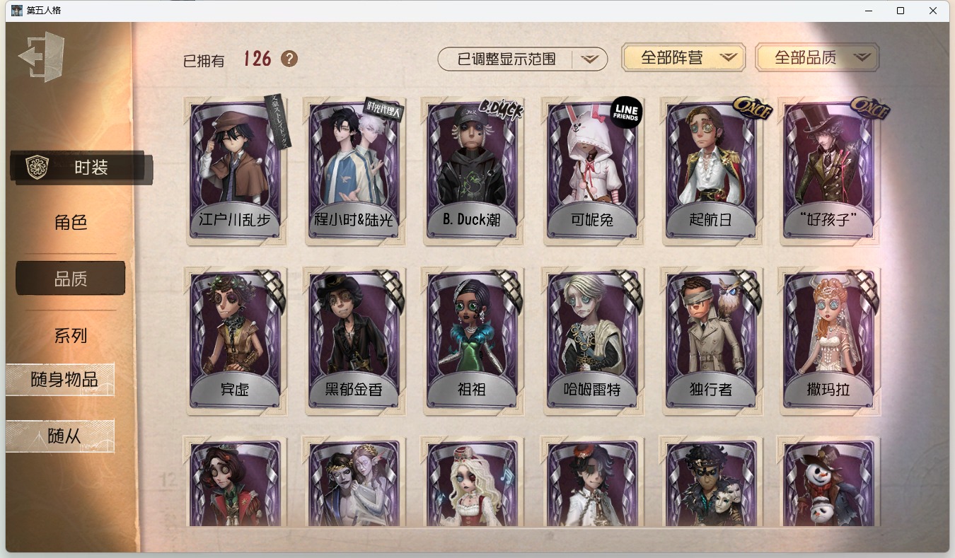 [14578592]安卓官服 手机账号 126时装 14金皮 38紫皮 2随从 54随身物品 【时装】:心理学家-莱拉医生-流萤邮差-“亡灵”“奥尔菲斯”-别样魅力佣兵-b.duck潮佣兵-白鹰之舞咒术师-祖祖杂技演员-可可豆杂技演员-茶话会击球手-反骨之缚“记录员”-缔造者祭司-撒玛拉机械师-小红帽蜡像师-淋浴勘探员-雀舌勘探员-黑郁金香哭泣小丑-烟花盖伊昆虫学者-可妮兔昆虫学者-曼陀罗“杰克”-“好孩子"大副-起航日厂长-永恒之王26号守卫-b.duck爱哭鬼-伊万病患-玛吉努红夫人-宝钻女爵画家-江户川乱步“杰克”-忘川渡人黄衣之主-死灵师守墓人-列车长守墓人-奶酪调香师-冰上舞蹈小丑-小丑皇小提琴家-孤月骑士小丑-精致的笑容幸运儿-女仆装先知-独行者先知-不屈的信仰“使徒”-校监夫人牛仔-逆刃之鞭破轮-球球前锋-慵懒的兔先生前锋-蛮牛之力冒险家-宝藏猎人宿伞之魂-程小时陆光前锋-速滑种子“囚徒”-宾虚“囚徒”-灵犀妙探“囚徒”-太宰治入殓师-守钟人入殓师-哈姆雷特 【随身物品】:太宰的爱书(稀世)致命的邀请函稀世最后的馈赠稀世转相仪奇珍炸药桶奇珍月光奇珍幽灵娃娃奇珍强化手臂(奇珍)萤之羽稀世虎尾稀世黄玫瑰之骸稀世荒诞之令奇珍猎人的箭囊稀世零钱碗奇珍宽恕稀世科学的艺术奇珍茶话时间奇珍催眠仪奇珍斗牛布奇珍班苏里笛奇珍白羽奇珍不焚之羽奇珍电阻表奇珍鬼脸披肩奇珍地层石蛋奇珍梦魇结晶稀世星星糖奇珍星象仪奇珍巫毒匕首奇珍无尽森林稀世未送出的花稀世舞会彩球奇珍邪火令奇珍许愿瓶奇珍鹰羽奇珍园丁布偶稀世幸福之地奇珍星图奇珍卡诺匹斯罐奇珍凝露奇珍时光相机奇珍水晶宫稀世四叶符奇珍噬魂稀世