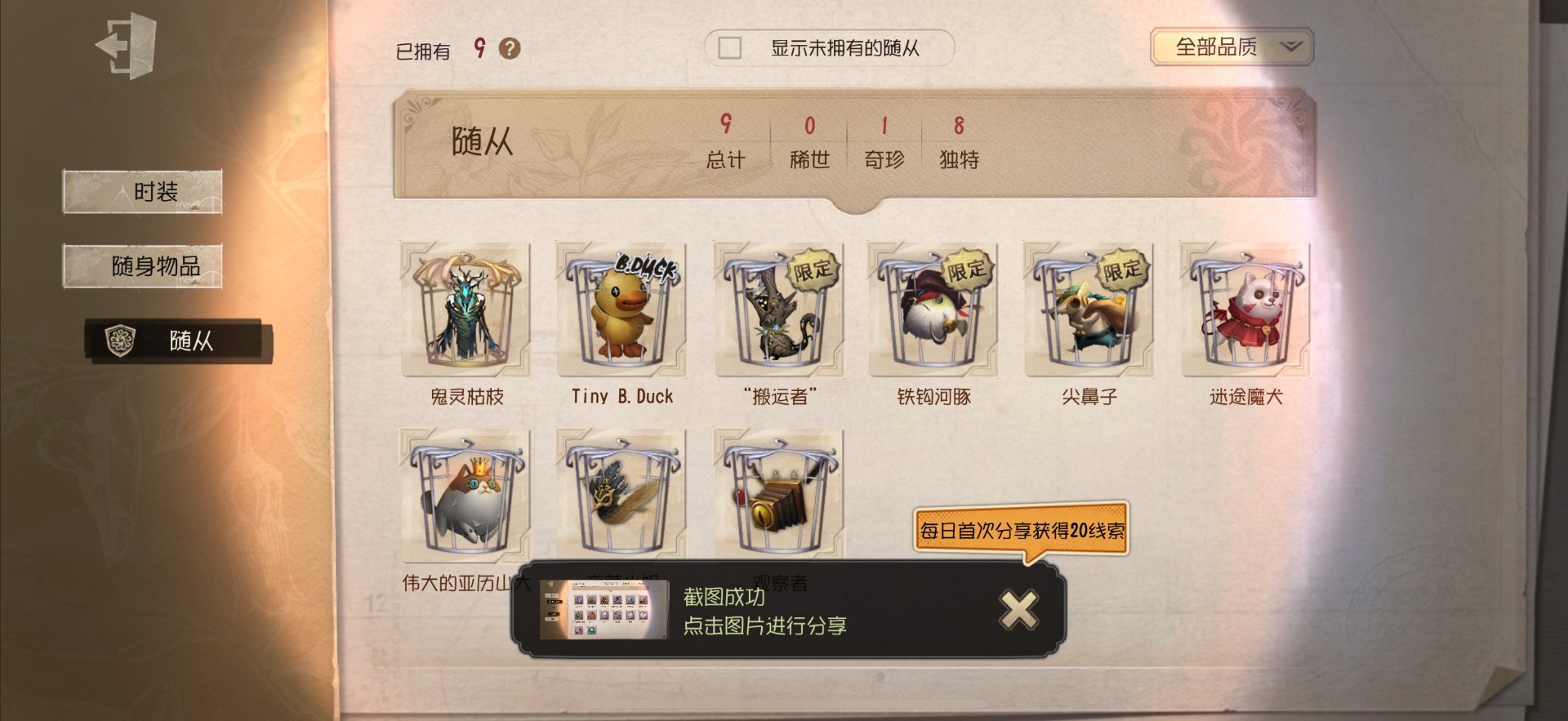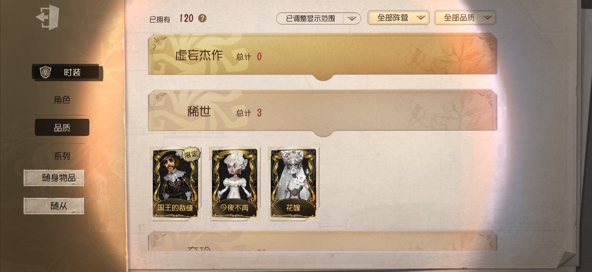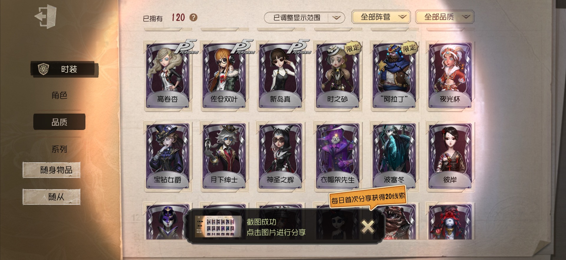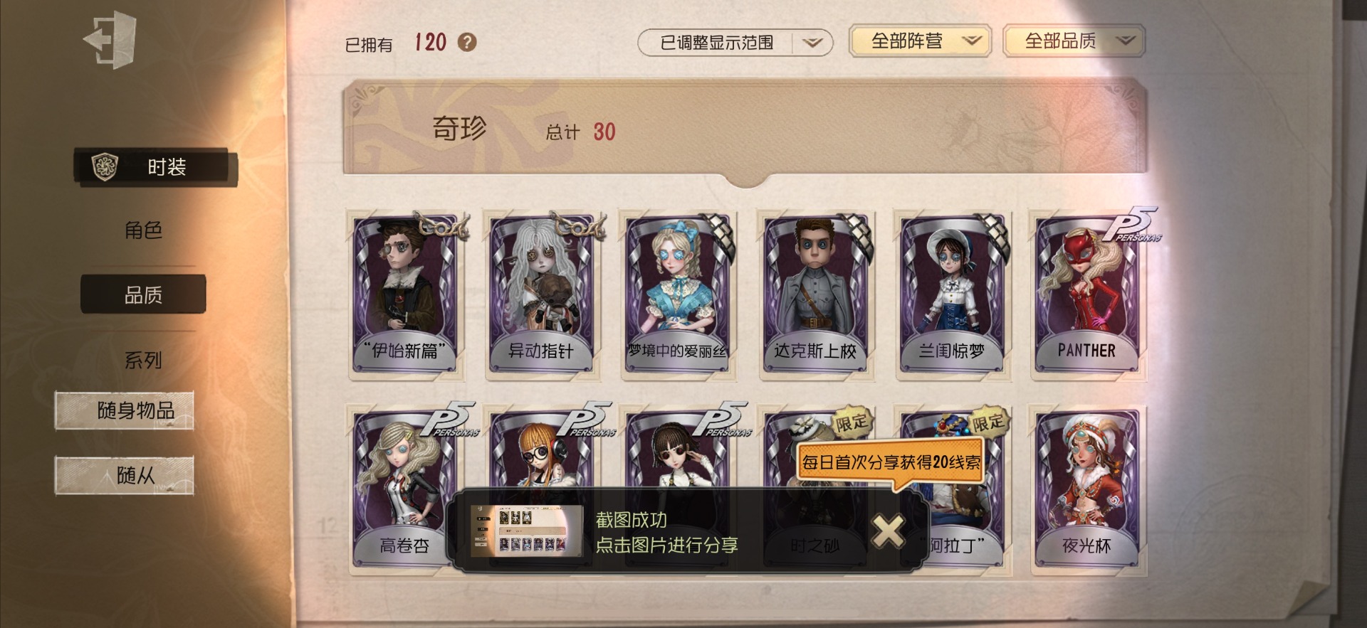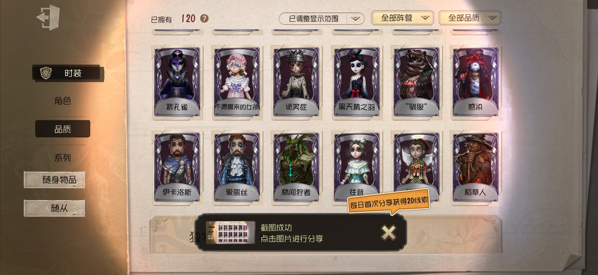 [14591084]苹果官服 手机账号 120时装 3金皮 30紫皮 9随从 50随身物品 【时装】:调酒师-夜光杯佣兵-感染佣兵-达克斯上校黄衣之主-衣帽架先生“小女孩”-异动指针小说家-“伊始新篇”记者-梦境中的爱丽丝空军-黑天鹅之羽机械师-诡笑症祭司-神圣之辉鹿头-林间狩者厂长-“阿拉丁”厂长-“驯服”红夫人-宝钻女爵红蝶-花嫁红蝶-紫孔雀红蝶-彼岸黄衣之主-波塞冬舞女-高卷杏舞女-panther调香师-时之砂调香师-今夜不再医生-往昔园丁-兰闺惊梦冒险家-爱丽丝牛仔-国王的裁缝冒险家-伊卡洛斯盲女-不愿醒来的女孩摄影师-月下绅士