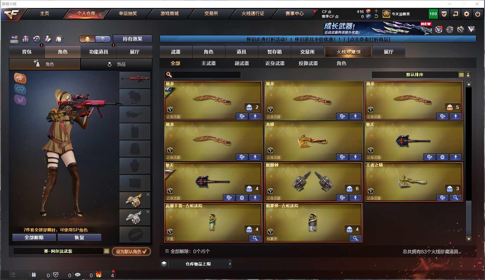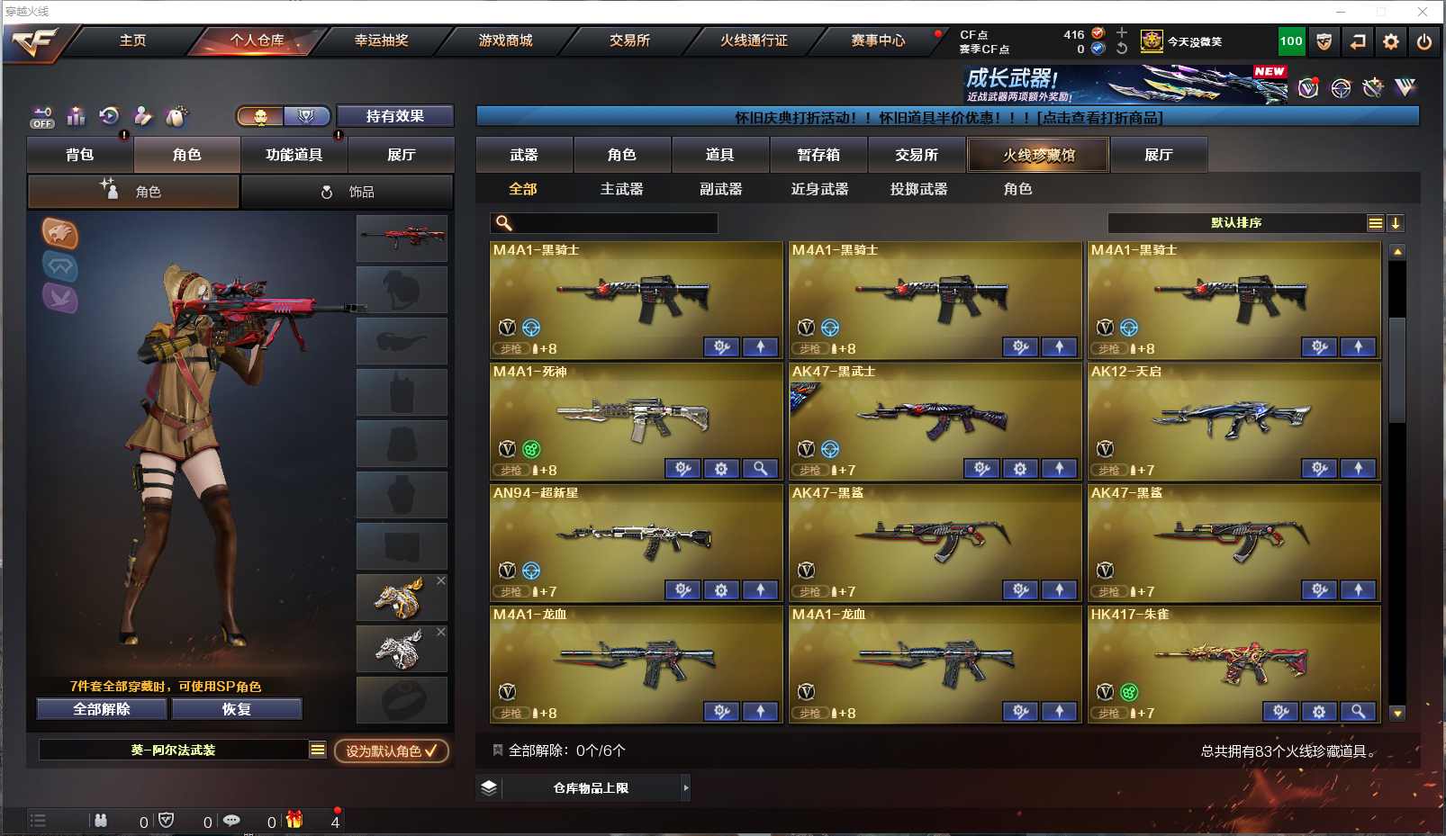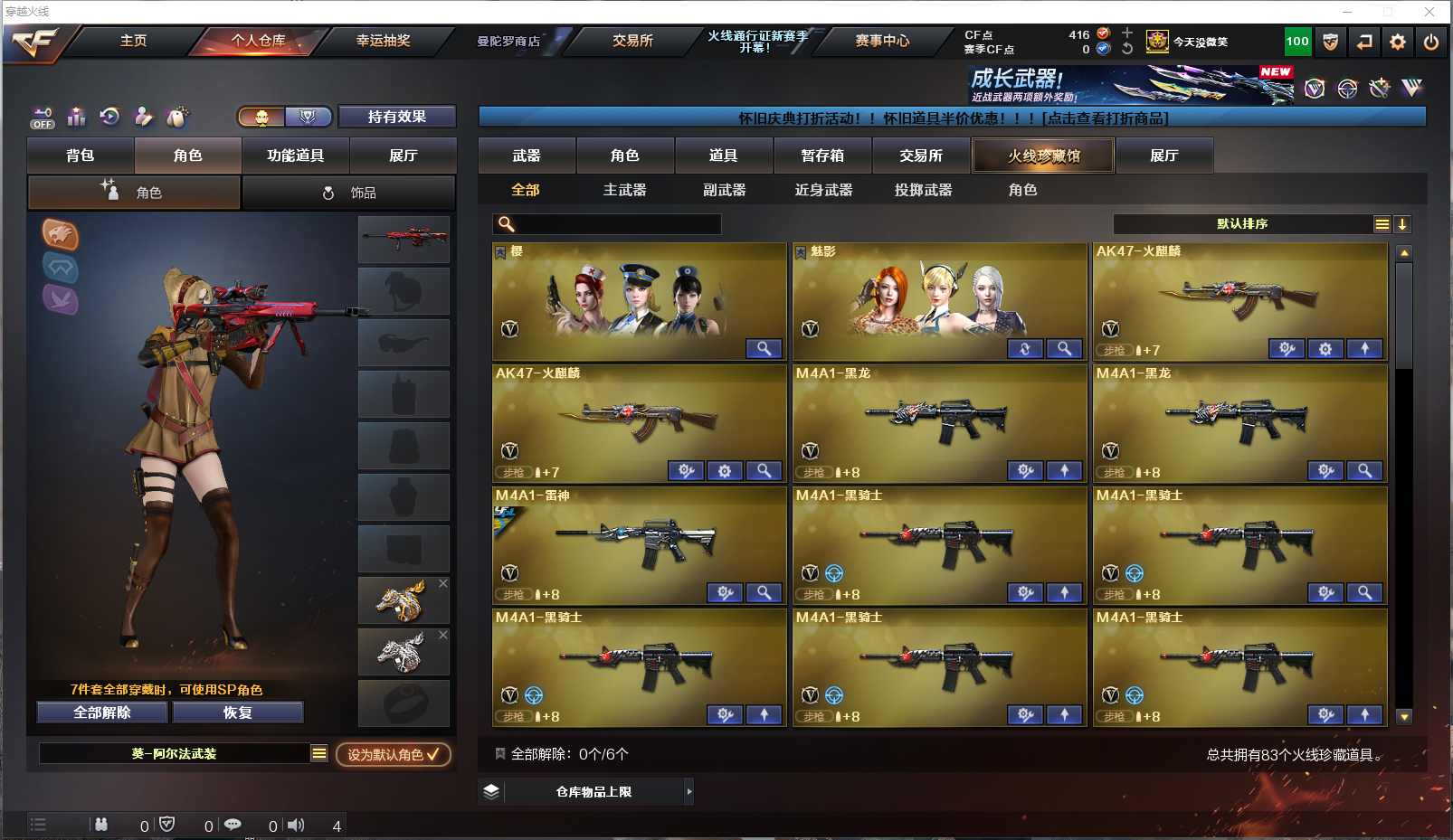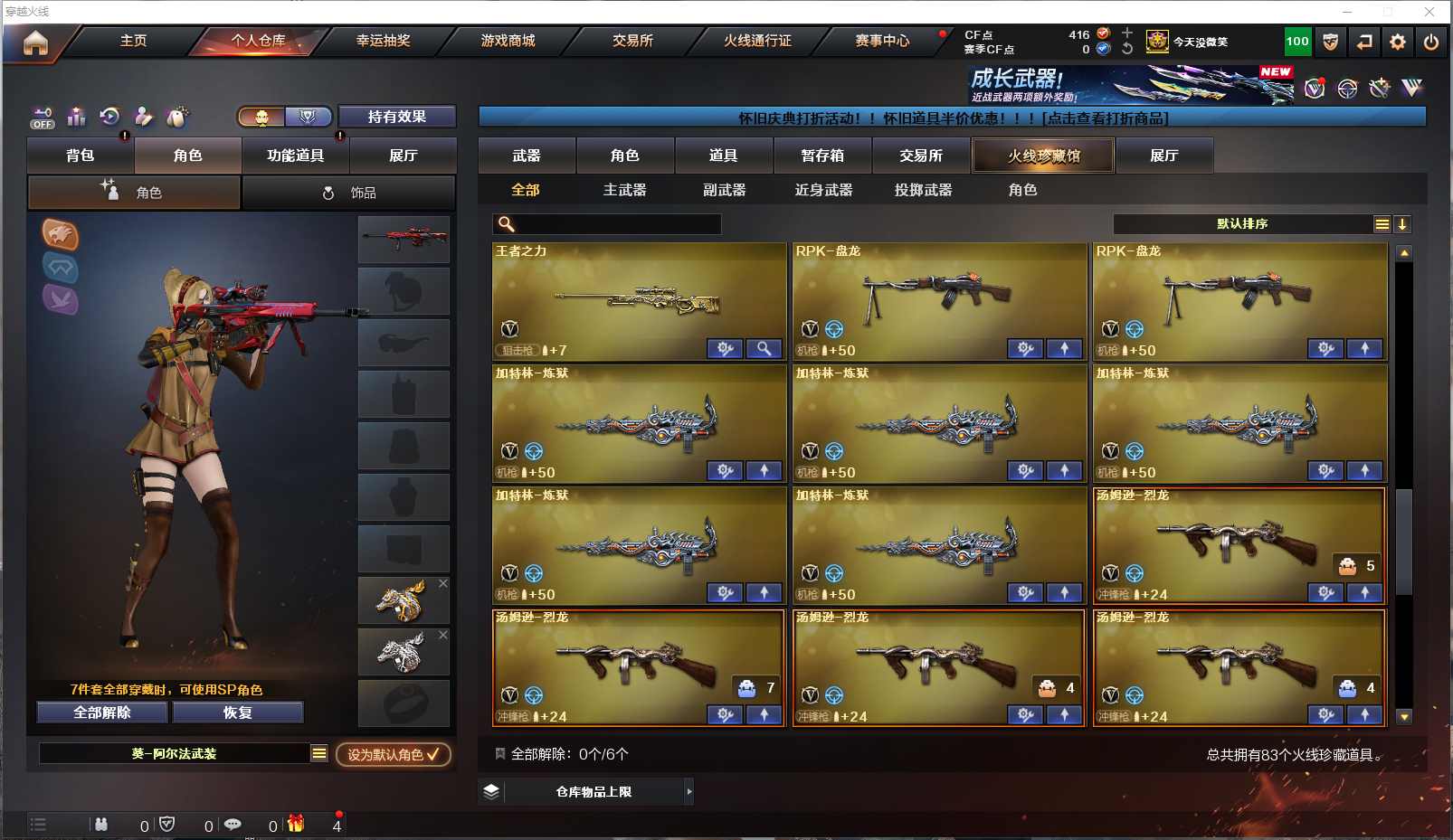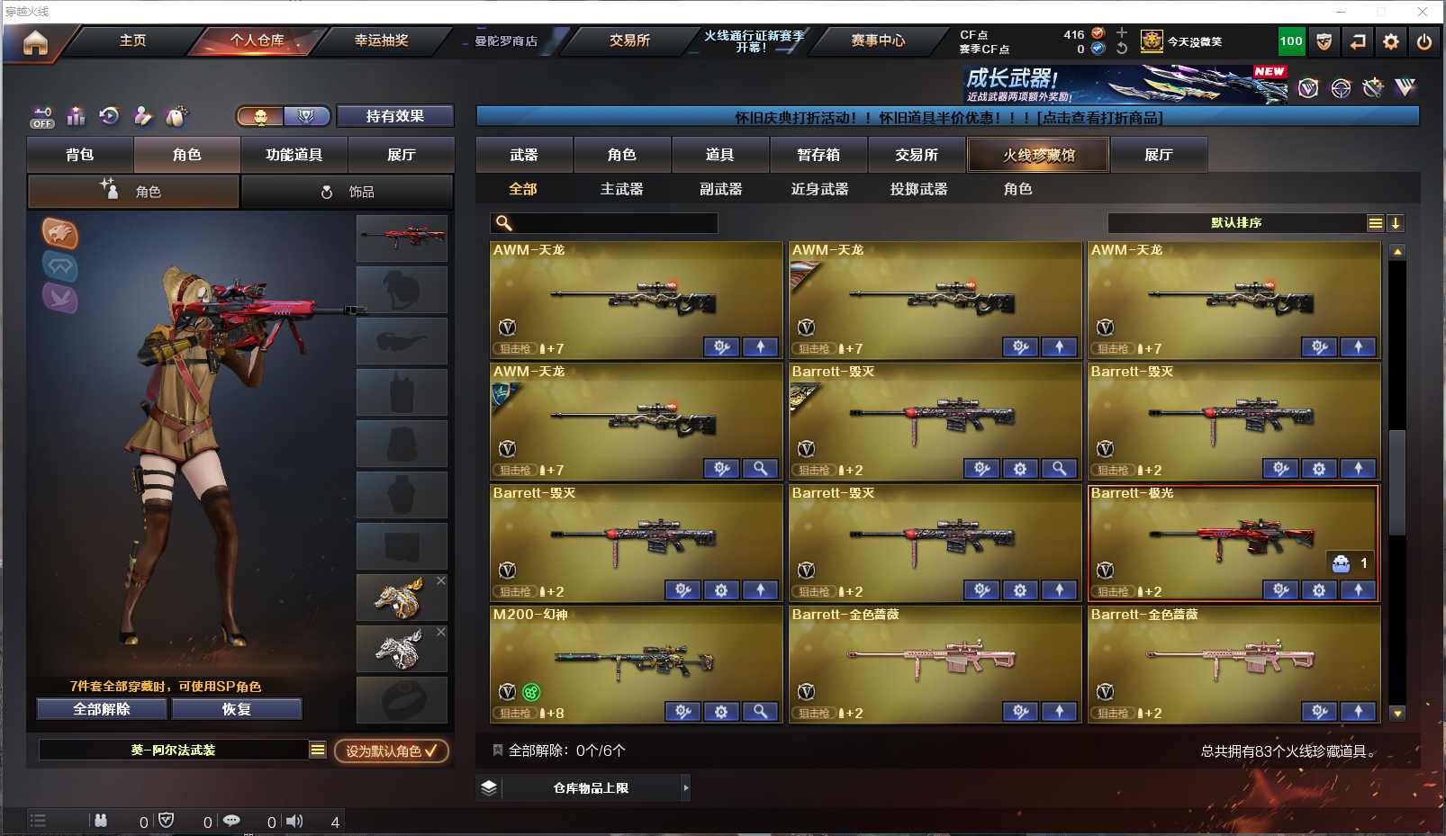 077-CF3699【北部 吉林一区】【可二次】【可排位】83V 8王者 3炫金【M200-幻神】【Scar Light-白虎】【QBZ03-金色蔷薇】【火麒麟火麒麟-平天大圣火麒麟-CF STAR火麒麟-雷神雷神-AG战队AK47-火麒麟音效卡】【黑龙黑龙-能量核心M4A1-黑龙音效卡】【雷神雷神-荣耀之魄雷神-能量核心】【6黑骑士M4A1-黑骑士音效卡】【毁灭毁灭-耀金Barrett-毁灭音效卡】【极光极光-能量核心Barrett-极光音效卡】【天龙天龙-秘银天龙-传奇70KG天龙-传奇白鲨】【2盘龙】【6烈龙】【5加特林-炼狱】【5沙鹰-修罗】【屠龙屠龙-荣耀之锋】王者冰魄 王者之幻 王者之戮 王者之魄 王者之力 王者之灵 王者之啸 M4A1-死神 AK12-天启 AK47-黑武士 AN94-超新星 HK417-朱雀 沙鹰-天神 龙啸 擎天 麒麟刺等 【小人枪】HK417-朱雀-蛇隐宗 【角色】樱 魅影 葵-阿尔法武装 蛇隐宗 王者-瞳-闭月羞花等 截图展示段位不代表实际段位,如赛季更新等不可抗拒因素发生变化、时限道具不保证所剩时间,其余道具看截图或咨询客服) 【小述账号 安全无忧】