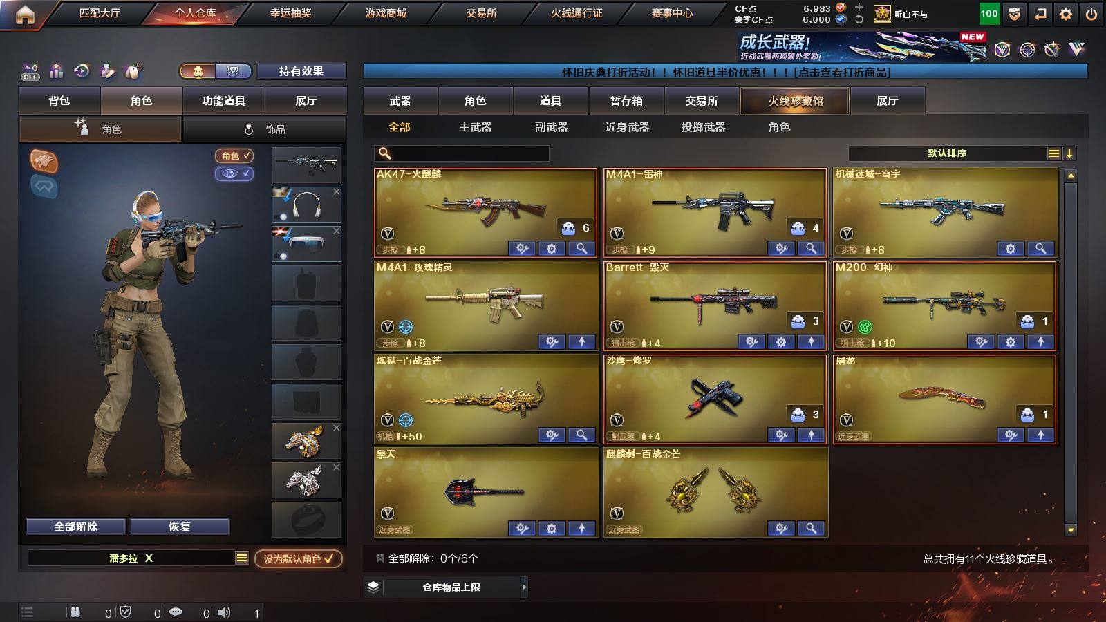 陕西一区 vip3 11V 【M200幻神】【火麒麟 雷神 穹宇 玫瑰精灵 巴雷特毁灭 炼狱百战金芒】——【沙鹰修罗】——【屠龙 擎天 麒麟刺百战金芒】——【热门武器/小人枪】【赤狱骑士 AK47竟魂无影 M4A1再燃火线】——【角色】【战地猎狐 葵阿尔法武装 乔伊教练】