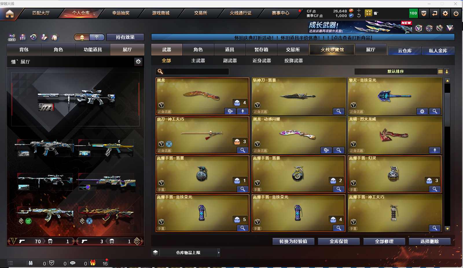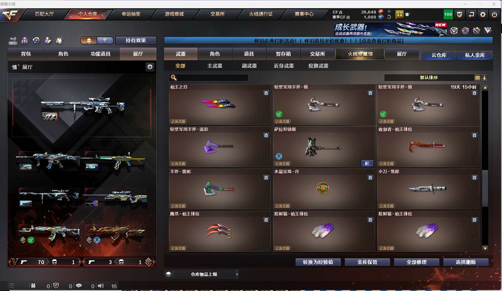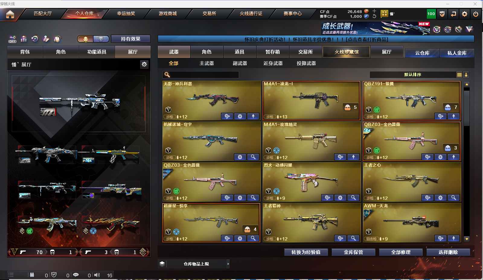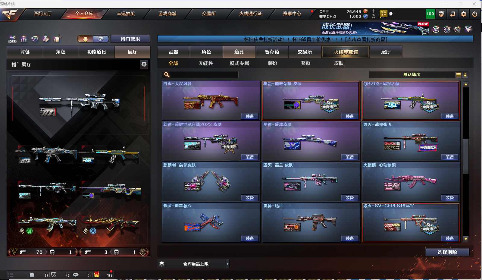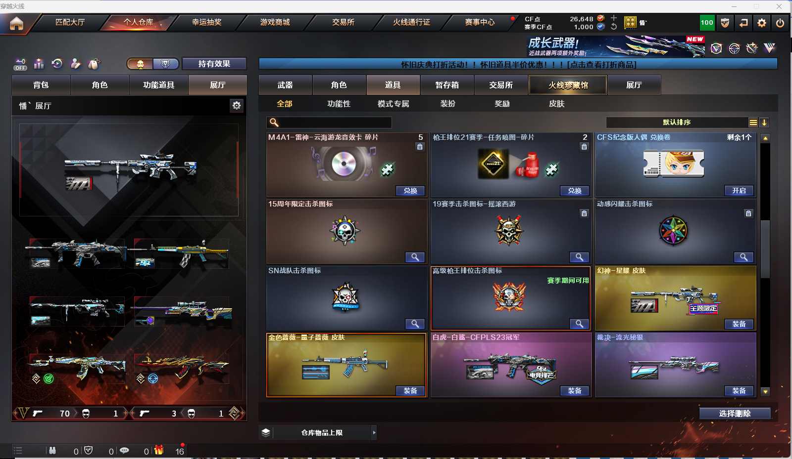 m55【找回包赔】【山东一区/70V/vip1/4传说】【传说夜影/传说幽冥】【M200-幻神/M200-幻神音效卡/M200-幻神-动感闪耀音效/M200-幻神-黄忠皮肤/幻神-动感闪耀 皮肤2/幻神-星耀 皮肤/幻神-荣耀世冠白鲨2023 皮肤】【星神-璀璨皮肤】【柯尔特-冠军之特/柯尔特-荣耀世冠白鲨2023】【白虎-大汉风骨】【QBZ03-金色蔷薇2/QBZ03-金色蔷薇音效卡/QBZ03-冠军之薇】【QBZ03-天罚】【M4A1-雷神/雷神-荣耀之魄/雷神-冠军之魄/雷神-暗月】【COP 357-幻灵】【Barrett-毁灭/毁灭-战神张飞】【AK47-火麒麟2/火麒麟-CFSTAR/火麒麟-心动糖果】【M4A1-黑骑士/黑骑士-冠军之势/黑骑士耀金皮肤】【M4A1-黑龙】【HK417-朱雀】【烈火-动感闪耀 音效卡】【无影-神兵利器】【AWM-天龙/AWM-天龙-传奇白鲨】【Barrett-极光】【AWM-裁决/AWM-裁决音效卡】【炼狱-星空】【死亡之眼】【沙鹰-修罗/修罗耀金皮肤/修罗-能量核心2】【沙鹰-天神/天神-动感闪耀】【麒麟刺-萌杀皮肤】【擎天-竞技荣光】【屠龙3/屠龙-动感闪耀 音效卡/屠龙-动感闪耀】【龙啸-烈火龙威】【女主播/关小雨/王者炽天使/王者影豹/王者零-华冠丽服/王者-瞳-闭月羞花/木兰/云海玲珑/乔伊教练/超能特工/萌儿/灵狐者-黄金海岸/妲己/斯沃特-X/救世主-X/影武者-X/幻影/复仇者】【M4A1-玫瑰精灵/M4A1-龙血】【Scar Light-像素】【AN94-超新星/超新星-悦享】【Colt 1911-大黄蜂2/新USP-枪王排位奖励3】【唐刀-神工天巧】【神圣爆裂者-末日III/激光毁灭者III-白马银枪】【炼狱-迷你小钢/黑龙吞噬者/轻型军用手斧-镜】【COP-白鲨】【王者之心/王者之光】【高爆手雷-竞技荣光2/闪光弹-竞技荣光2/烟雾弹-竞技荣光3】【高爆手雷-雷暴/闪光弹-雷暴/烟雾弹-雷暴】【高爆手雷-雷霆/闪光弹-雷霆/烟雾弹-雷霆】【高爆手雷-神工天巧4/闪光弹-神工天巧2/烟雾弹-神工天巧3】【高爆手雷-幻灵/闪光弹-幻灵4/烟雾弹-幻灵】【烟雾弹-荣耀世冠白鲨2023】【炫金武士/炫金黑龙/炫金千变/炫金毁灭/炫金修罗】【语音特效-云海游龙】【透明头盔/烟雾保护头盔/闪光护目镜/炫彩背包/防弹头盔5/防弹衣5/C4工具钳5/手雷包5/防化服3】