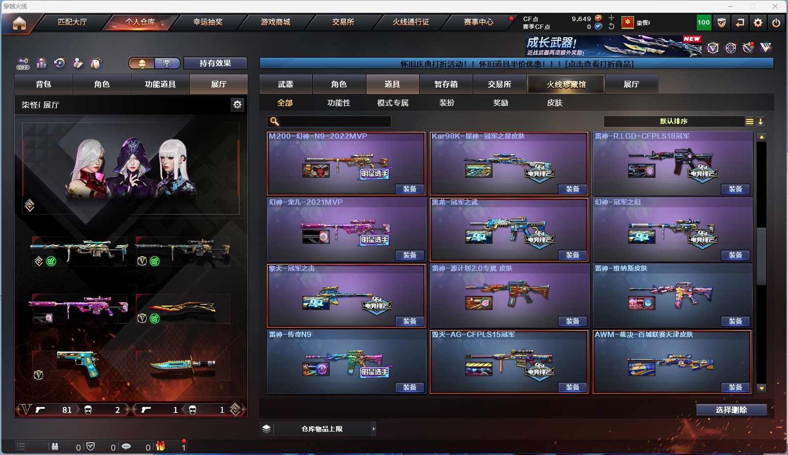 m11【找回包赔】【上海一区/72V/vip1/2传说】【传说影煞/传说灵眸】【隼】【6烈龙】【M200-幻神/幻神-宠儿-2021MVP/M200-幻神-N9-2022MVP/幻神-冠军之幻】【Kar98K-星神/Kar98K-星神音效卡/Kar98K-星神-冠军之星皮肤】【白虎之魄/王者白虎】【炽芒蝶刃2】【Knife-冠军之刃2】【G36C-幻影】【柯尔特-冠军之特/USP-神工天巧】【Scar Light-白虎】【QBZ03-金色蔷薇/QBZ03-荣耀世冠白鲨/QBZ03-巅峰荣耀皮肤/金色蔷薇-纸灯龙皮肤】【QBZ03-天罚】【雷神-荣耀世冠AG/M4A1-雷神/雷神-荣耀之魄/雷神-传奇N9/M4A1-雷神-巅峰荣耀皮肤/雷神-R.LGD-CFPLS18冠军/雷神-维纳斯皮肤】【COP 357-幻灵4/COP 357-云龙】【Barrett-毁灭/巴雷特-毁灭-CFPL冠军】【AK47-火麒麟/火麒麟-CFSTAR】【M4A1-黑骑士/黑骑士-海王/黑骑士-AG-S4冠军典藏】【M4A1-黑龙/黑龙-冠军之武】【无影-神兵利器】【黑武士-锦绣游龙】【Barrett-极光】【AWM-裁决】【汤姆逊-烈龙6/烈龙-云海游龙】【死亡之眼】【沙鹰-修罗3/修罗-CFSTAR】【天神-动感闪耀】【擎天/擎天-冠军之击2/擎天-云海游龙】【屠龙/屠龙-动感闪耀】【龙啸/龙啸-冠军之啸/龙啸-烈火龙威】【女主播/关小雨/王者潘多拉/王者影豹/王者凌霄/暗夜-X/木兰/奇洋探员/云海玲珑/乔伊教练/超能特工/荆棘玫瑰/麻雀/青霞仙子/潘多拉-X/斯沃特-X/堕天使】【AN94-超新星/超新星-热带奇洋】【Colt1911-小故障/Colt 1911-大黄蜂】【龙啸-热带奇洋/迷你深渊冰龙】【神圣爆裂者-末日III/机甲撕裂者III/激光毁灭者III-白马银枪2】【斯泰尔-巧克力】【龙宝投影】【王者芳薇/王者星霆】【高爆手雷-云龙3/闪光弹-云龙4/烟雾弹-云龙/手雷-云海游龙】【高爆手雷-神工天巧2/闪光弹-神工天巧2/烟雾弹-神工天巧3】【高爆手雷-幻灵5/闪光弹-幻灵/烟雾弹-幻灵】【手雷-热带奇洋】【语音特效-云海游龙】【烟雾保护头盔/闪光护目镜/超级背包/炫彩背包/防弹头盔2/防弹衣2/C4工具钳2/手雷包2/防化服2】