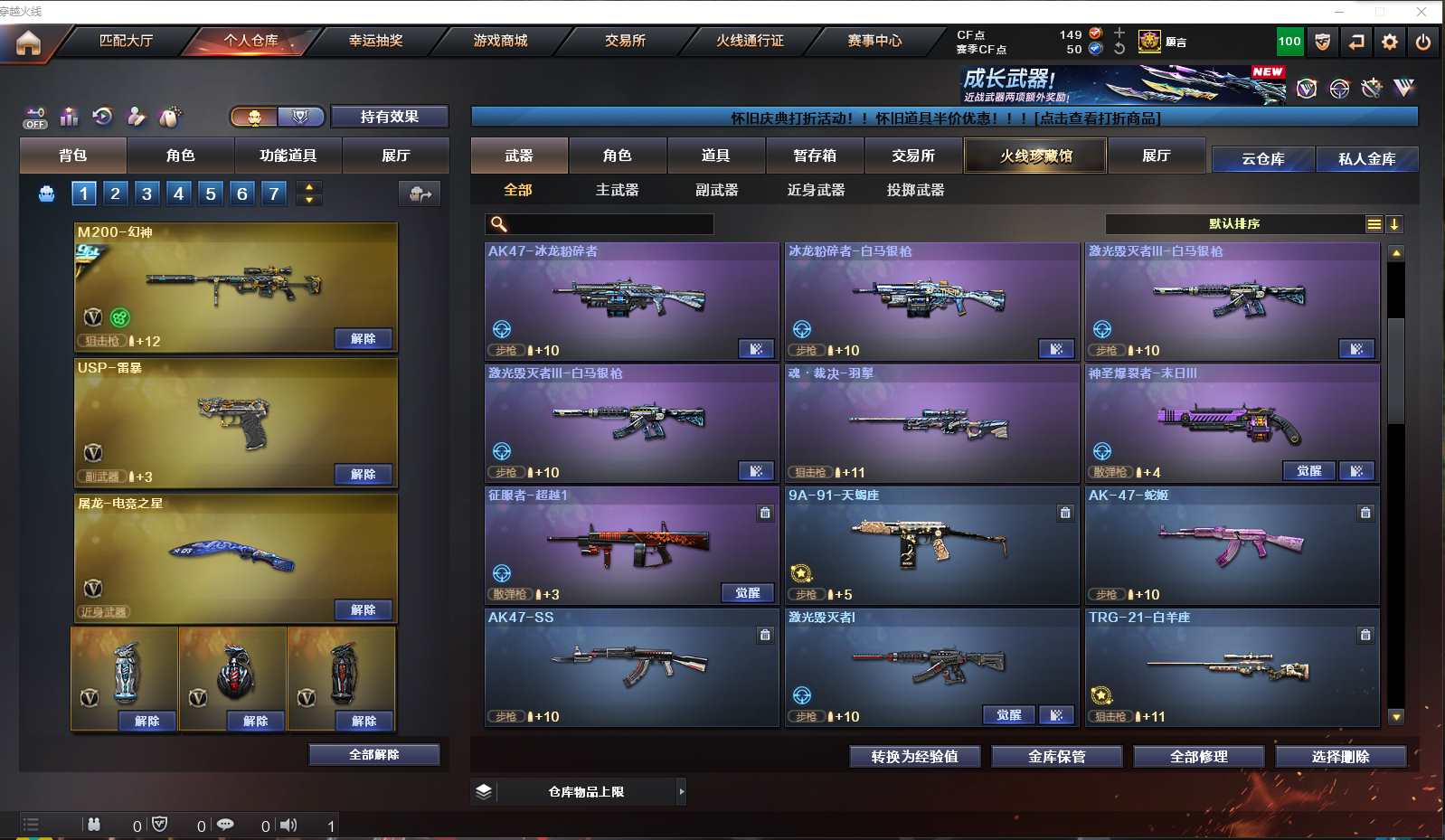 a13【找回包赔】【黑龙江区/49V/vip1】【竞技荣光套】【M200-幻神/幻神-冠军之幻】【M200-竞技荣光】【王者幻神】【荣耀世冠-柯尔特/柯尔特-竞技荣光/USP-雷暴】【Scar Light-白虎】【QBZ03-金色蔷薇】【M4A1-雷神】【Barrett-毁灭/Barrett-毁灭音效卡/毁灭-冠军之怒】【AK47-火麒麟2/火麒麟-CFSTAR/火麒麟-心动糖果】【M4A1-黑骑士/M4A1-黑骑士音效卡】【HK417-朱雀】【无影-神兵利器】【天龙-CFSTAR】【汤姆逊-烈龙】【沙鹰-修罗3】【擎天-竞技荣光】【电竞教官-云悠悠/王者-瞳-闭月羞花/魅影/暗夜-X/麻雀/潘多拉-X/斯沃特-X/铁骑荣耀/幻影/堕天使】【Colt 1911-大黄蜂3/新USP-枪王排位奖励5】【马来剑-夜魔】【神圣爆裂者-末日III/激光毁灭者III-白马银枪2/AK47-冰龙粉碎者/冰龙粉碎者-白马银枪】【斯泰尔-巧克力】【王者炎心】【高爆手雷-竞技荣光3/闪光弹-竞技荣光3/烟雾弹-竞技荣光3】【高爆手雷-雷暴/闪光弹-雷暴】【高爆手雷-堕天神/闪光弹-堕天神/烟雾弹-堕天神2】【高爆手雷-夜魔/闪光弹-夜魔/烟雾弹-夜魔】【炫金武士/炫金骑士/炫金毁灭】【超级背包/防弹头盔3/防弹衣3/C4工具钳3/手雷包3/防化服3】