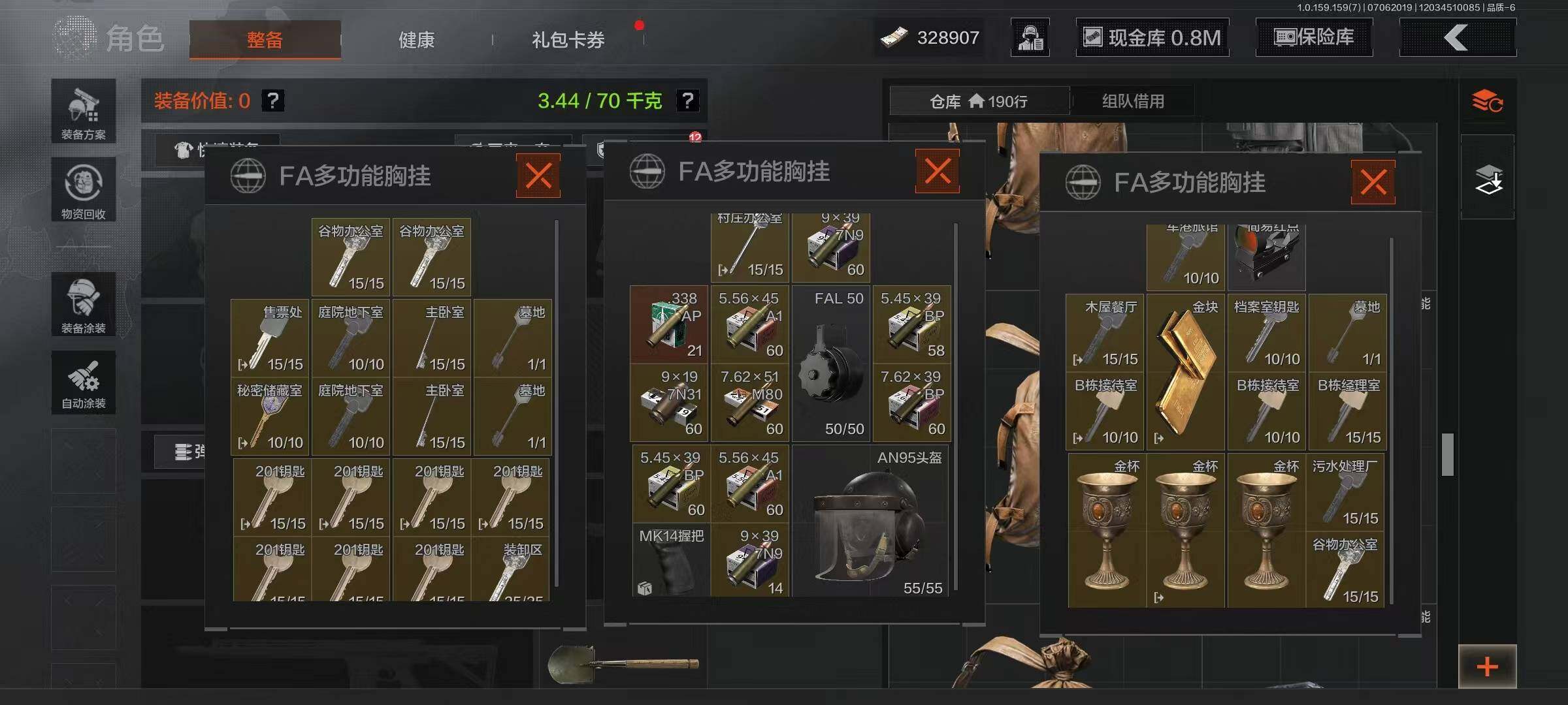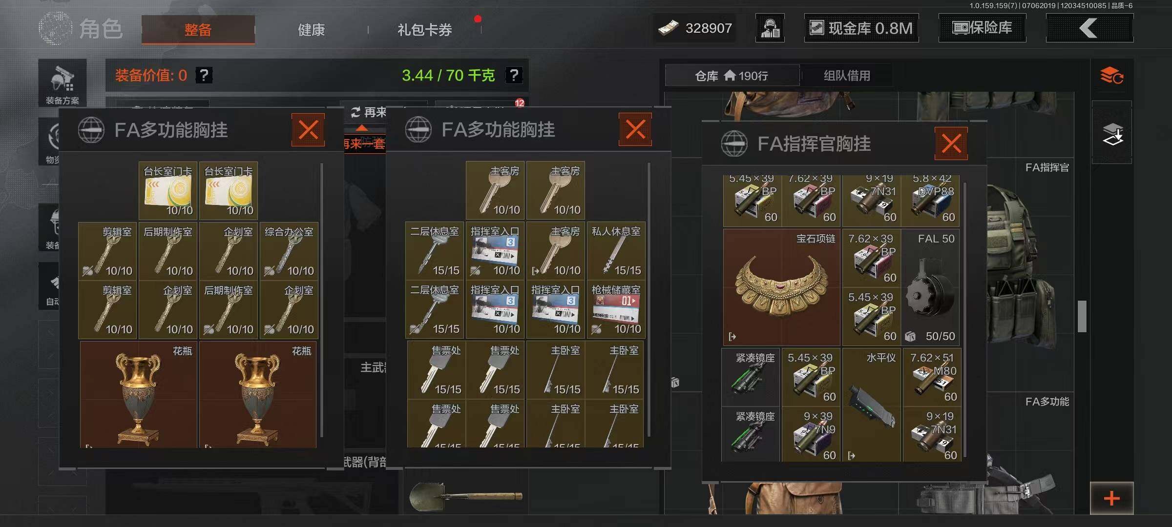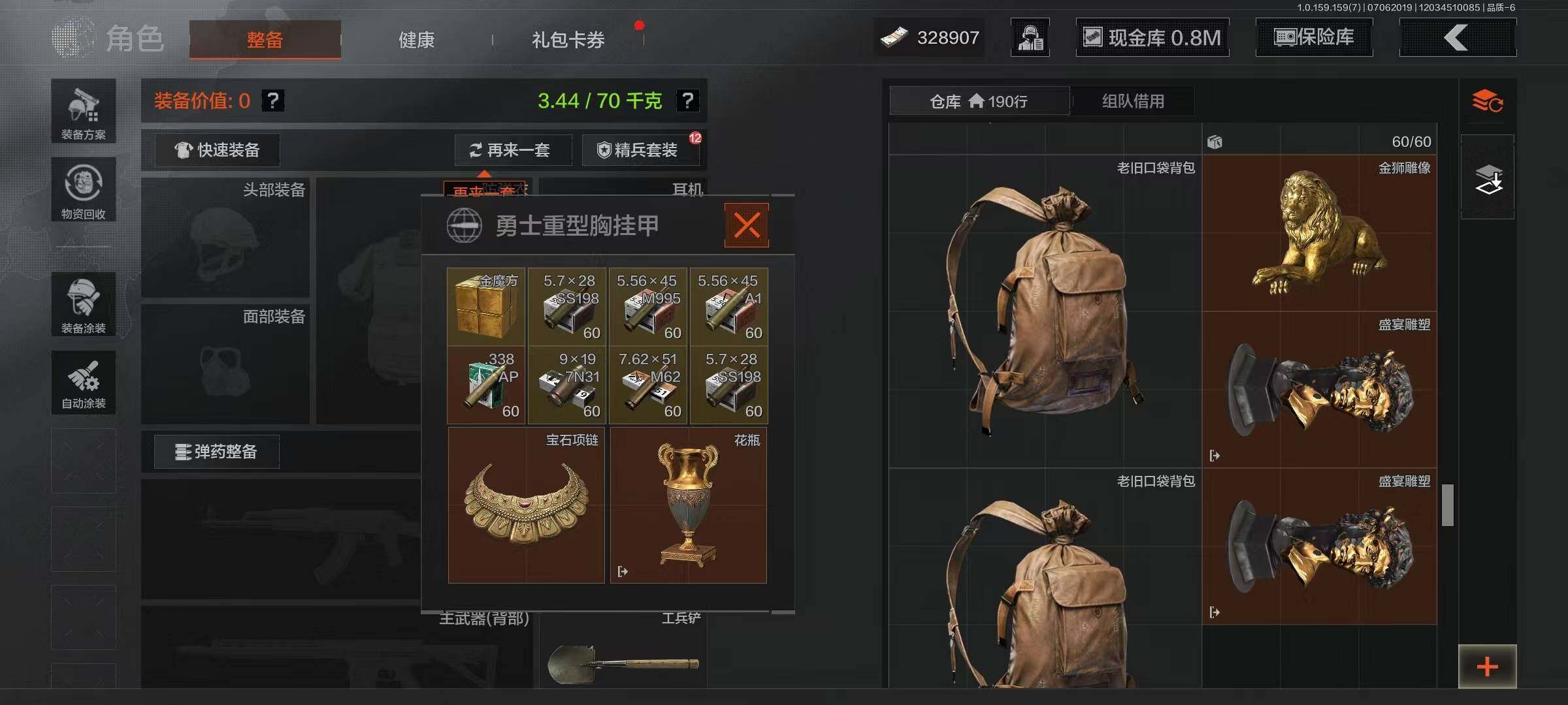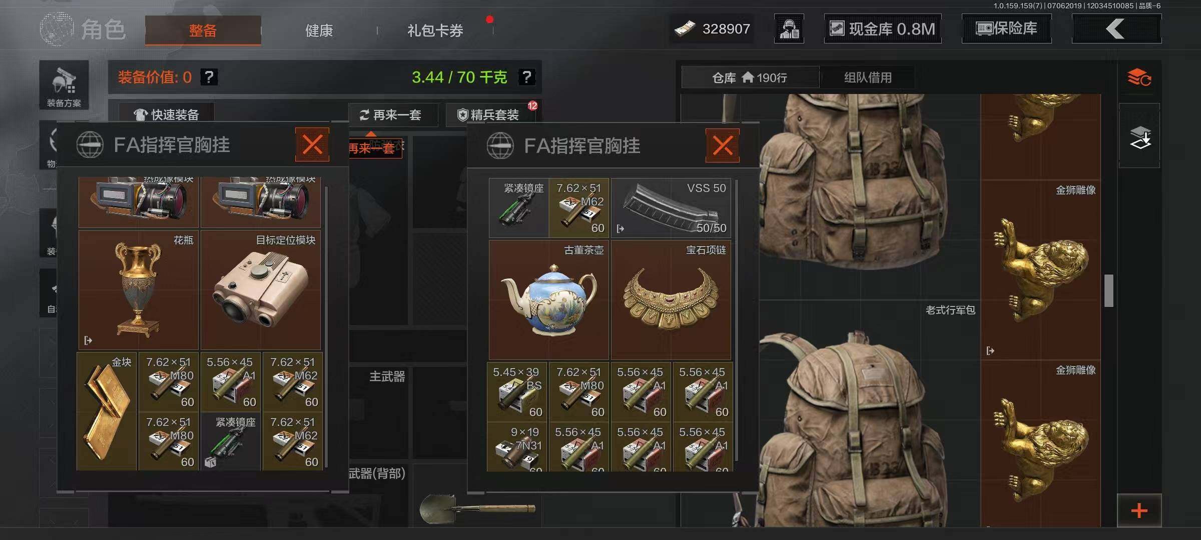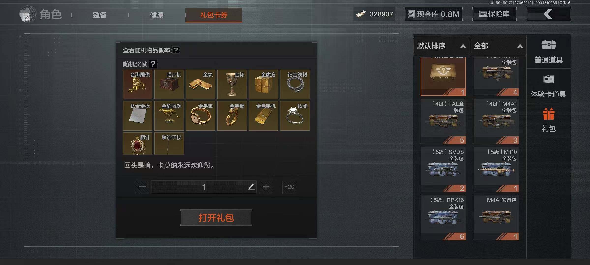 [9690160]暗区 可二次 仓库价值74.6m 多礼包 卡莫纳金边礼盒 rpk16全装包 aek全装包 祥瑞金龙陈列 暗区金兔陈列 骑士之剑·ace31 骑士之剑·sj16 热成相模块 宝石项链 金狮雕像 花瓶