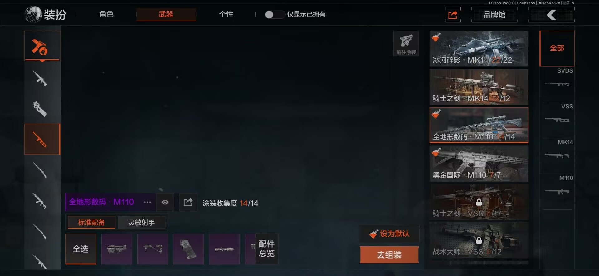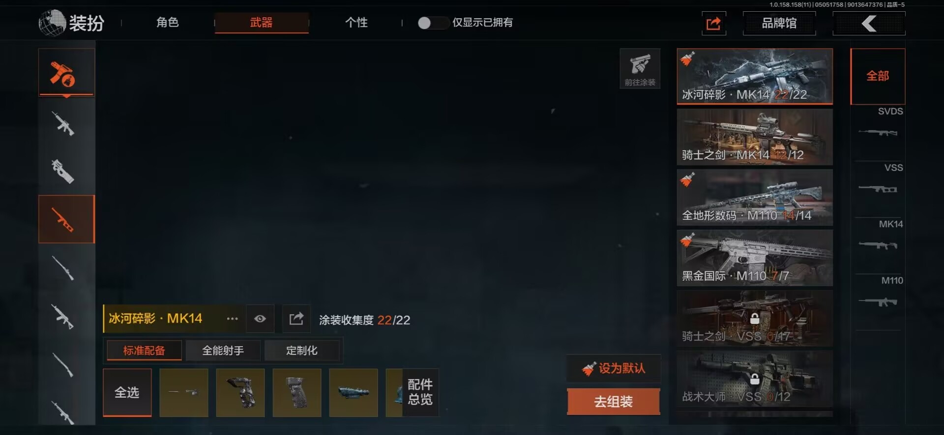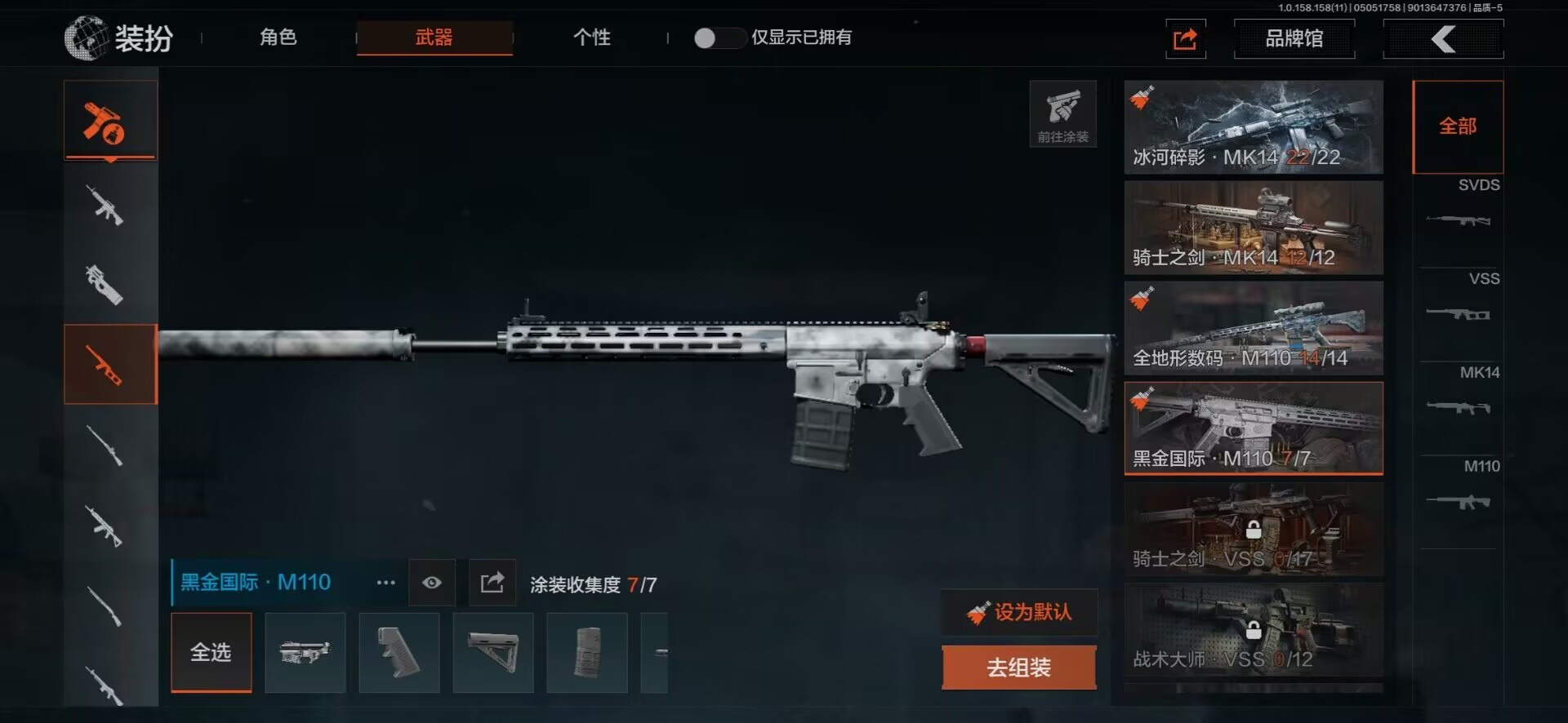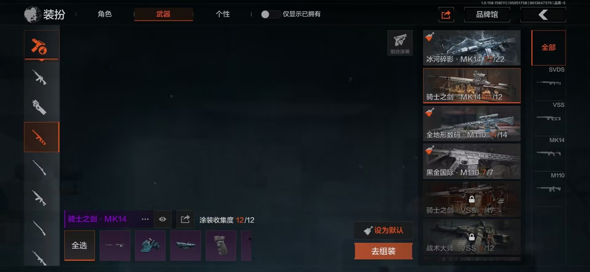 [9742580]可二次 柯恩币数量:468878 仓库价值:4.8 近战武器:突击匕首精英指虎野战折刀 金色呛皮:冰河碎影·mk14蓝色咆哮·h416林中人·fal 紫色呛皮:涂绘猎人·ar57敬伙伴·m16湖冰倒影·mp5湖冰倒影·ace31无畏·usas12骑士之剑·mk14骑士之剑·aks74u骑士之剑·sj16火绒草·aug和平之手·fal白貂·f57白色丧钟·莫辛北国内卫·mdr北国内卫·an94德尔塔小队·m4a1兔年春季限定全地形数码·m110自喷网格·h416 角色装扮(紫):台风ii竞技运动服