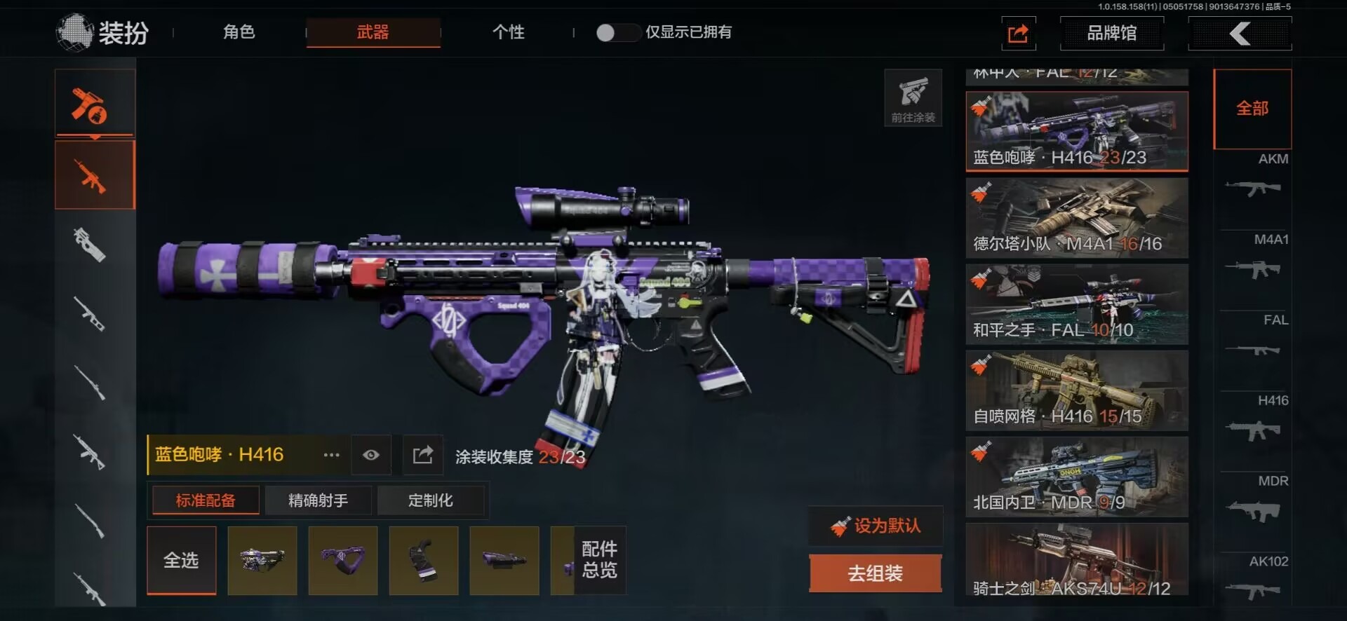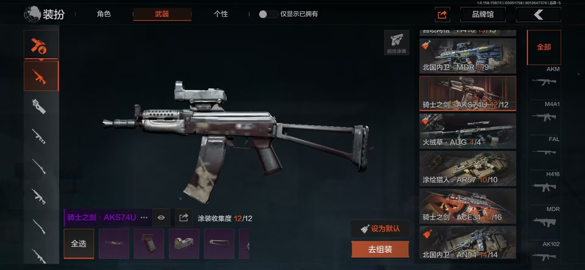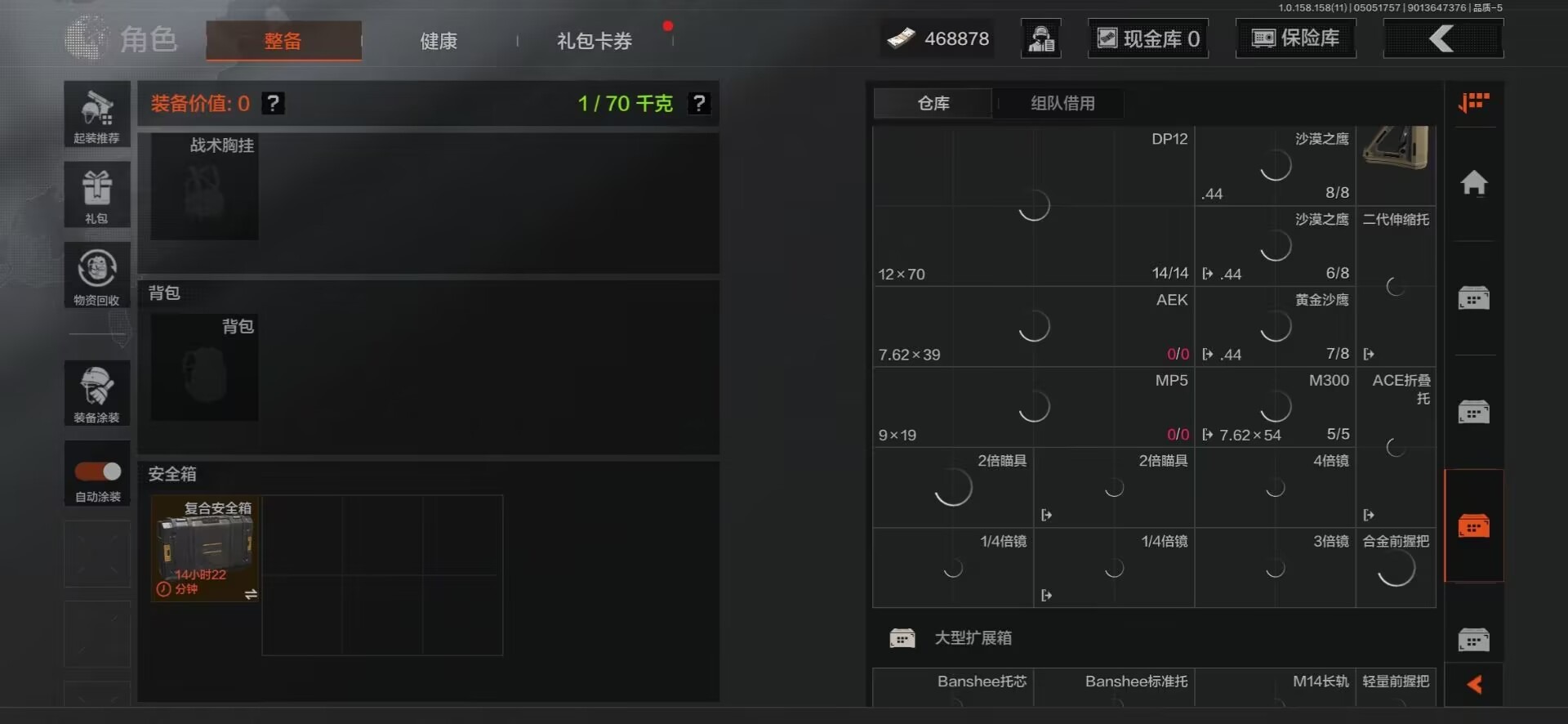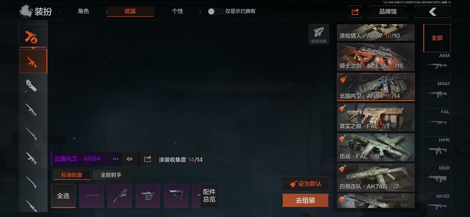 [9742580]可二次 柯恩币数量:468878 仓库价值:4.8 近战武器:突击匕首精英指虎野战折刀 金色呛皮:冰河碎影·mk14蓝色咆哮·h416林中人·fal 紫色呛皮:涂绘猎人·ar57敬伙伴·m16湖冰倒影·mp5湖冰倒影·ace31无畏·usas12骑士之剑·mk14骑士之剑·aks74u骑士之剑·sj16火绒草·aug和平之手·fal白貂·f57白色丧钟·莫辛北国内卫·mdr北国内卫·an94德尔塔小队·m4a1兔年春季限定全地形数码·m110自喷网格·h416 角色装扮(紫):台风ii竞技运动服