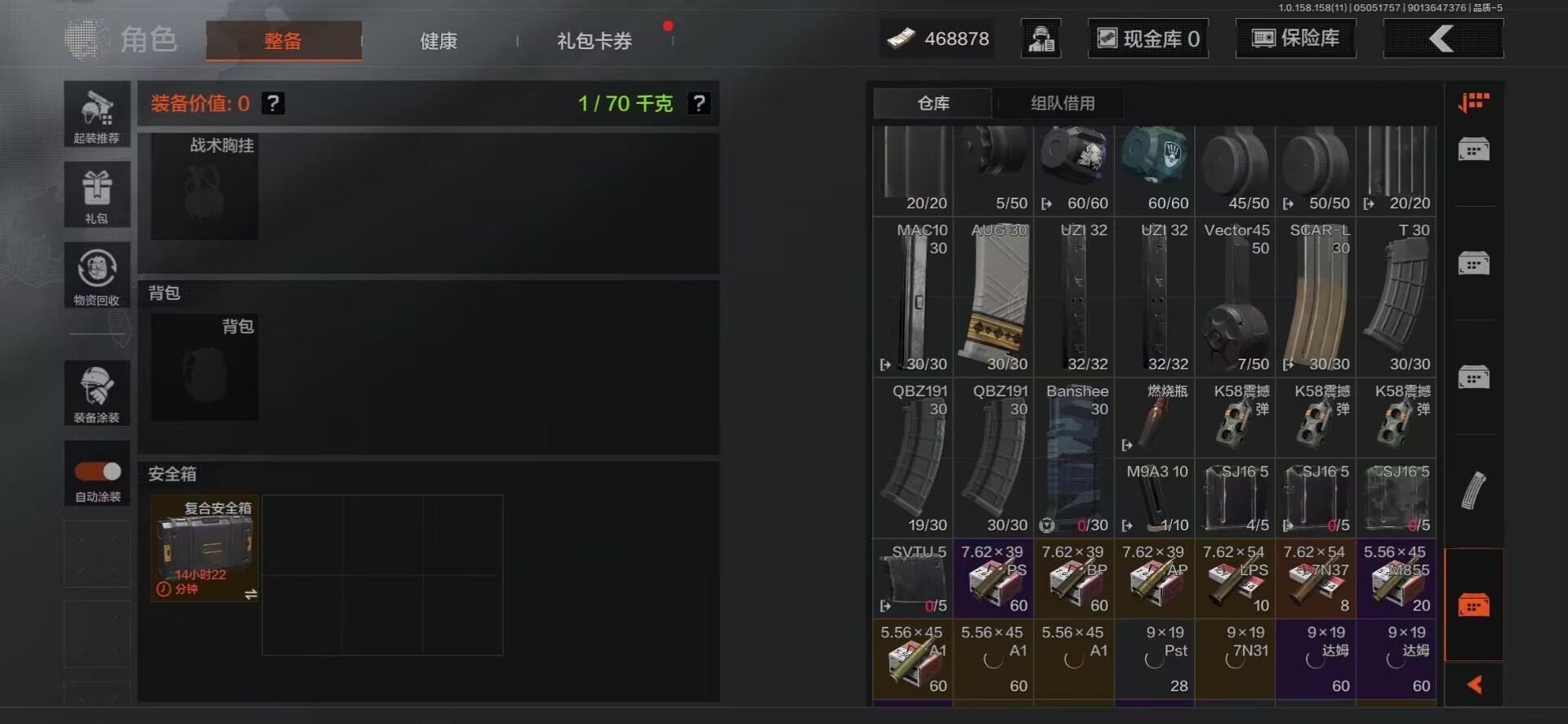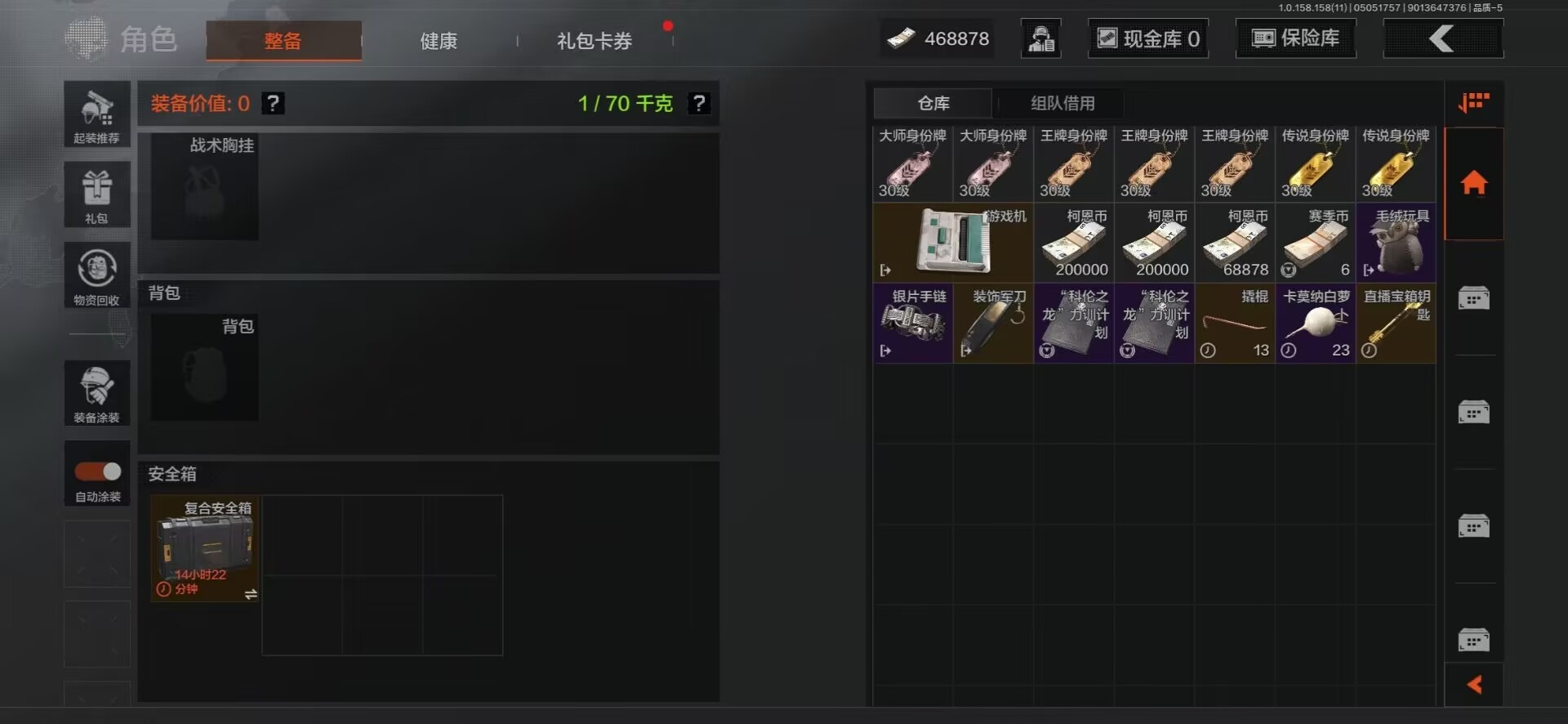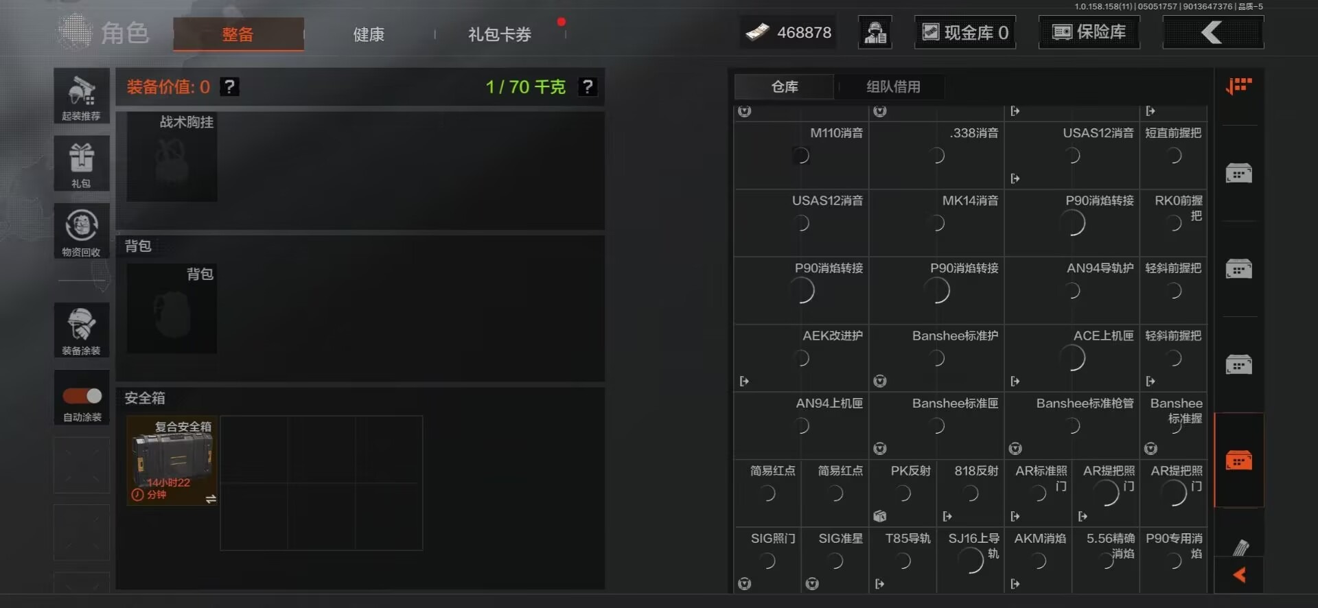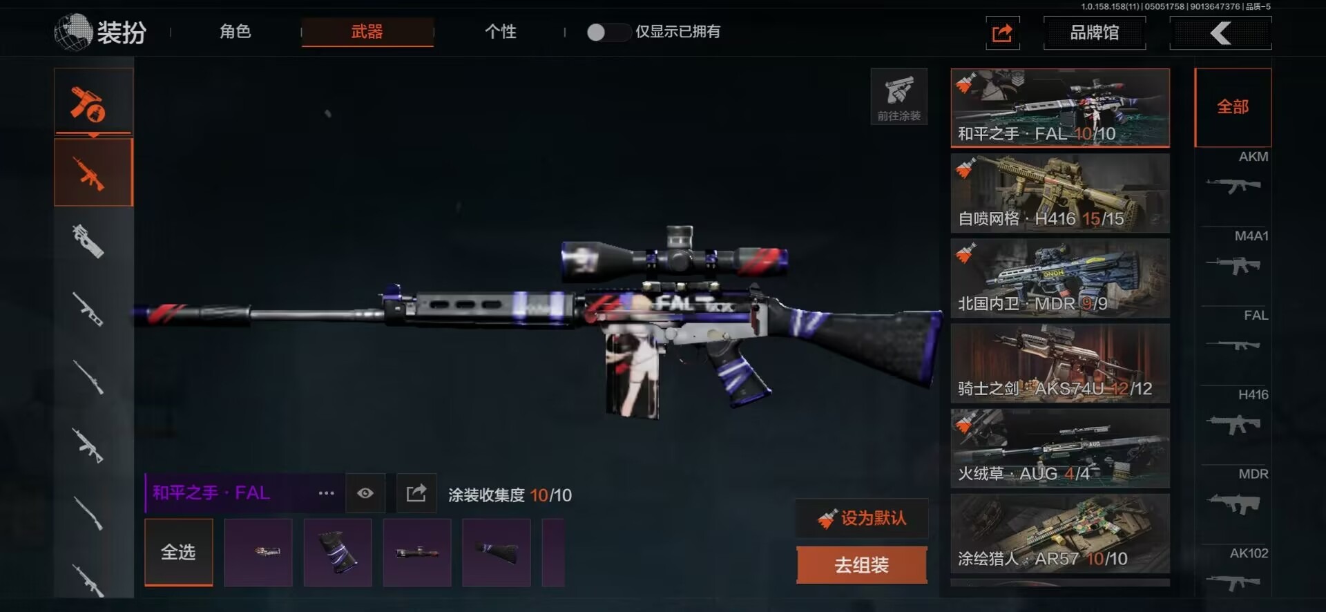 [9742580]可二次 柯恩币数量:468878 仓库价值:4.8 近战武器:突击匕首精英指虎野战折刀 金色呛皮:冰河碎影·mk14蓝色咆哮·h416林中人·fal 紫色呛皮:涂绘猎人·ar57敬伙伴·m16湖冰倒影·mp5湖冰倒影·ace31无畏·usas12骑士之剑·mk14骑士之剑·aks74u骑士之剑·sj16火绒草·aug和平之手·fal白貂·f57白色丧钟·莫辛北国内卫·mdr北国内卫·an94德尔塔小队·m4a1兔年春季限定全地形数码·m110自喷网格·h416 角色装扮(紫):台风ii竞技运动服