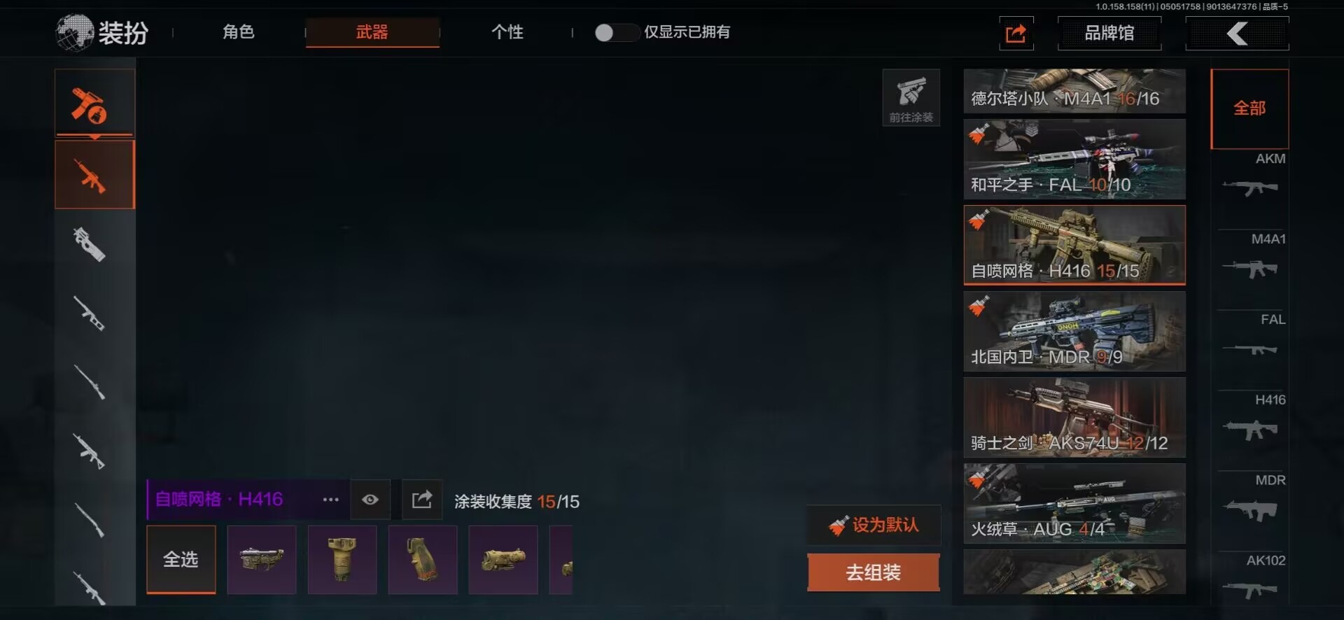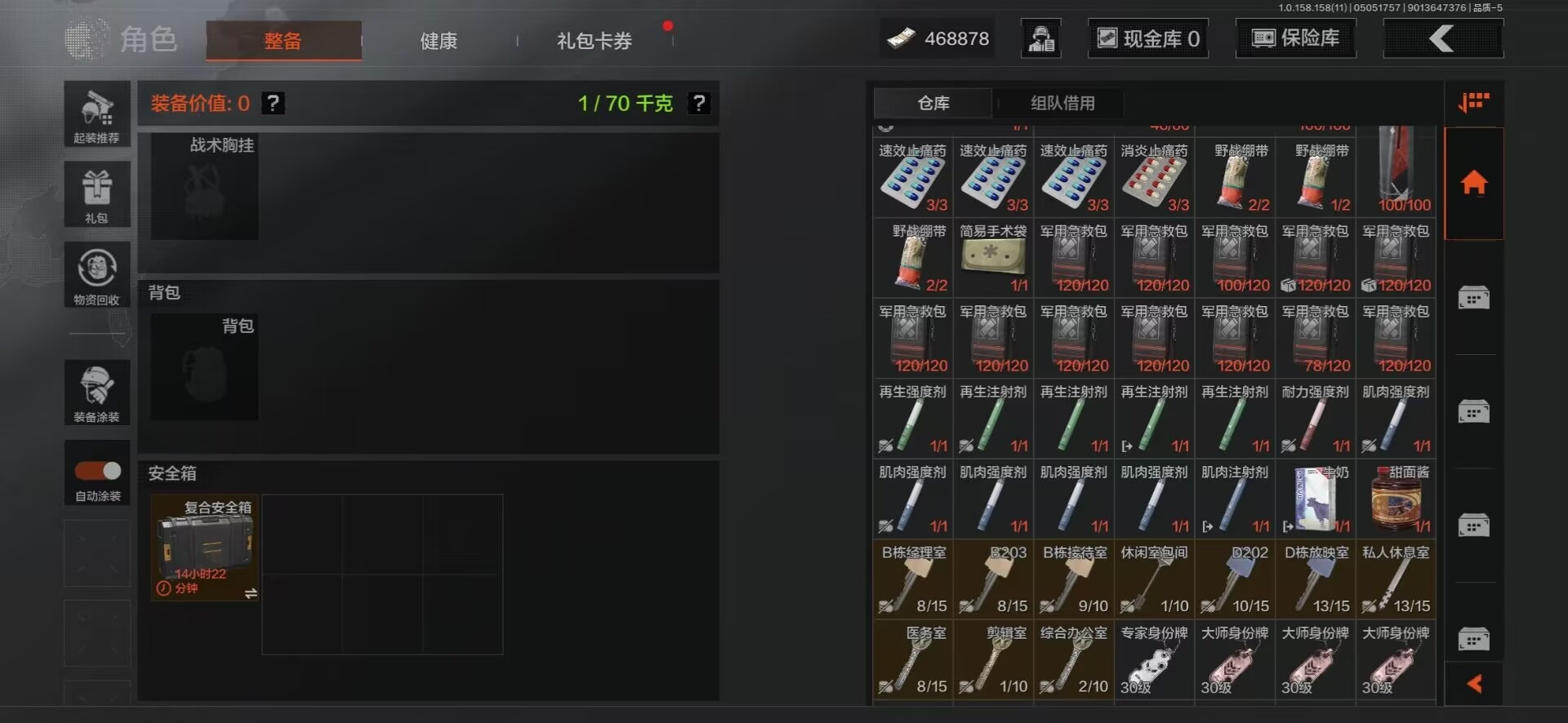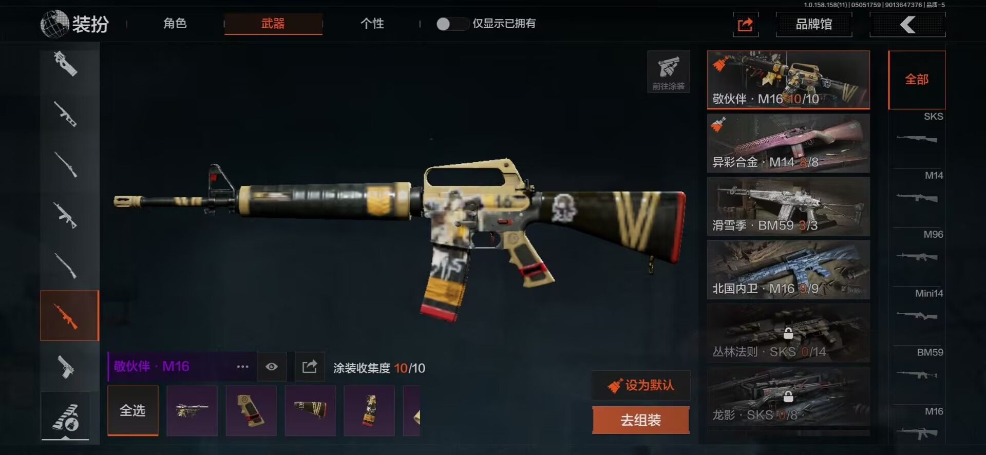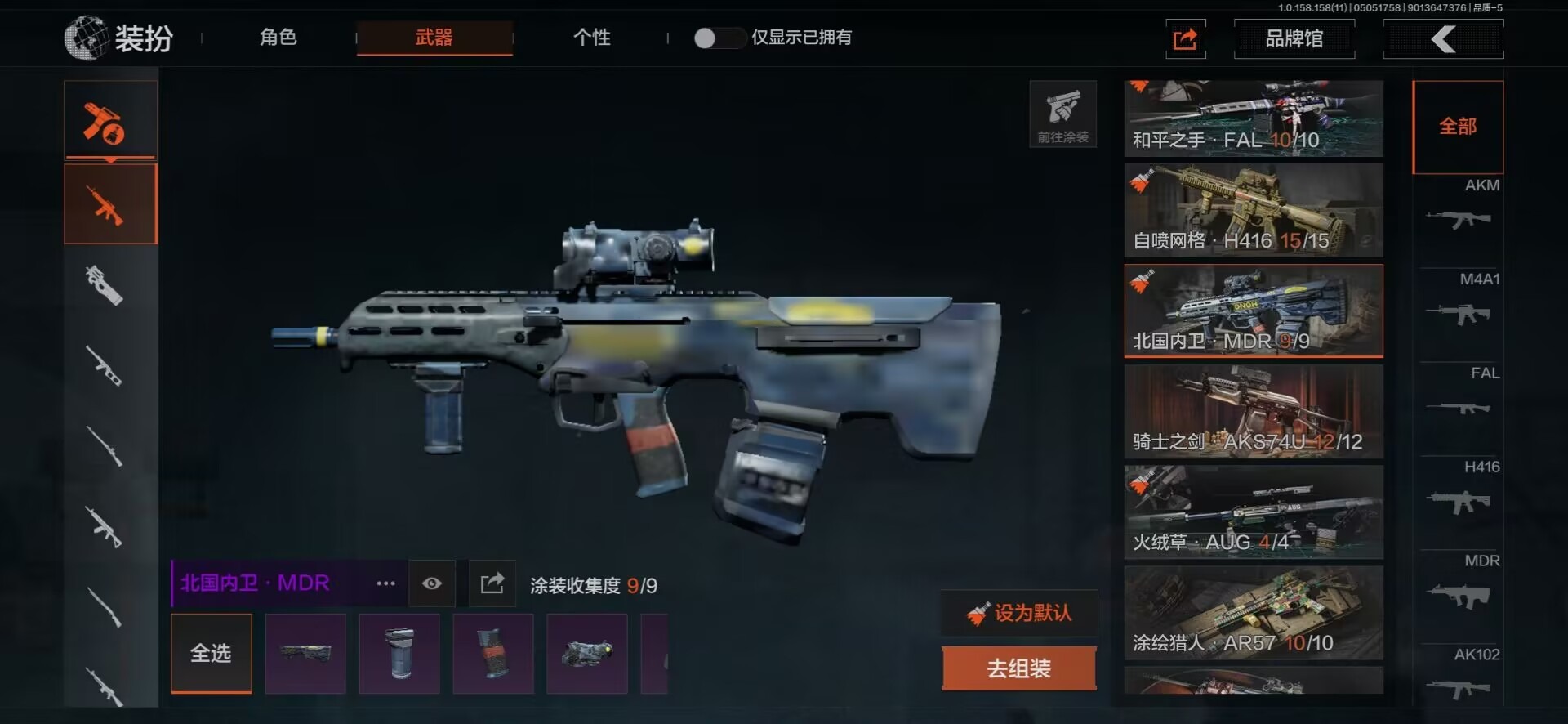 [9742580]可二次 柯恩币数量:468878 仓库价值:4.8 近战武器:突击匕首精英指虎野战折刀 金色呛皮:冰河碎影·mk14蓝色咆哮·h416林中人·fal 紫色呛皮:涂绘猎人·ar57敬伙伴·m16湖冰倒影·mp5湖冰倒影·ace31无畏·usas12骑士之剑·mk14骑士之剑·aks74u骑士之剑·sj16火绒草·aug和平之手·fal白貂·f57白色丧钟·莫辛北国内卫·mdr北国内卫·an94德尔塔小队·m4a1兔年春季限定全地形数码·m110自喷网格·h416 角色装扮(紫):台风ii竞技运动服