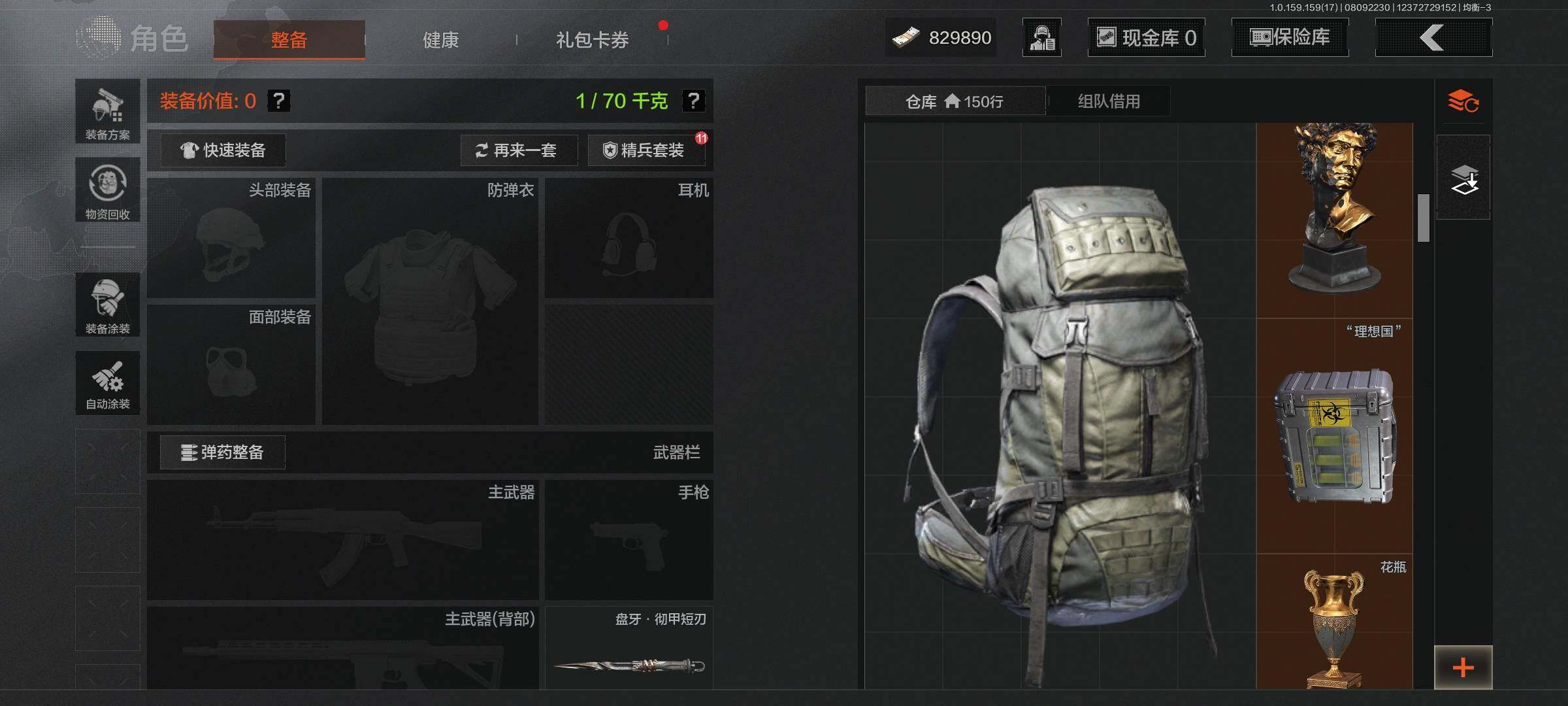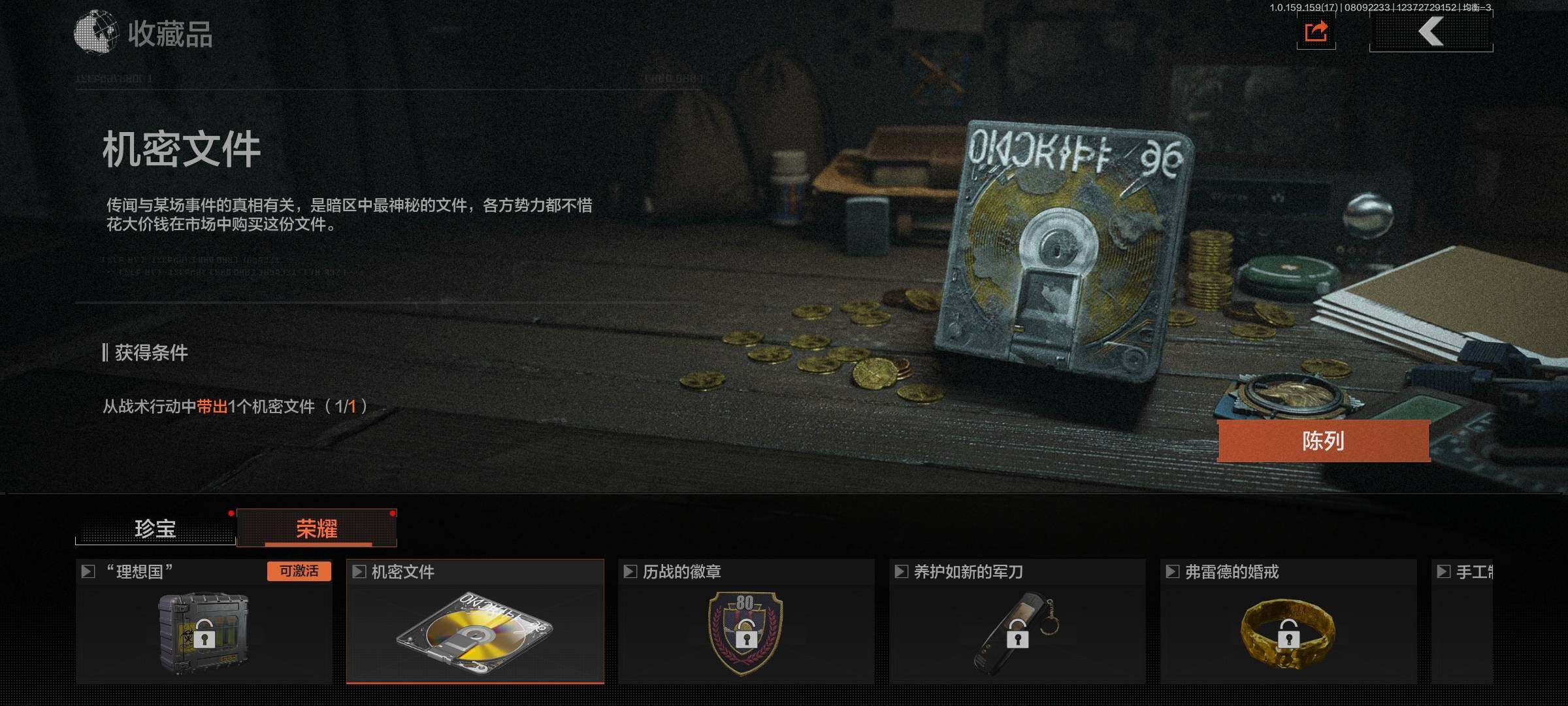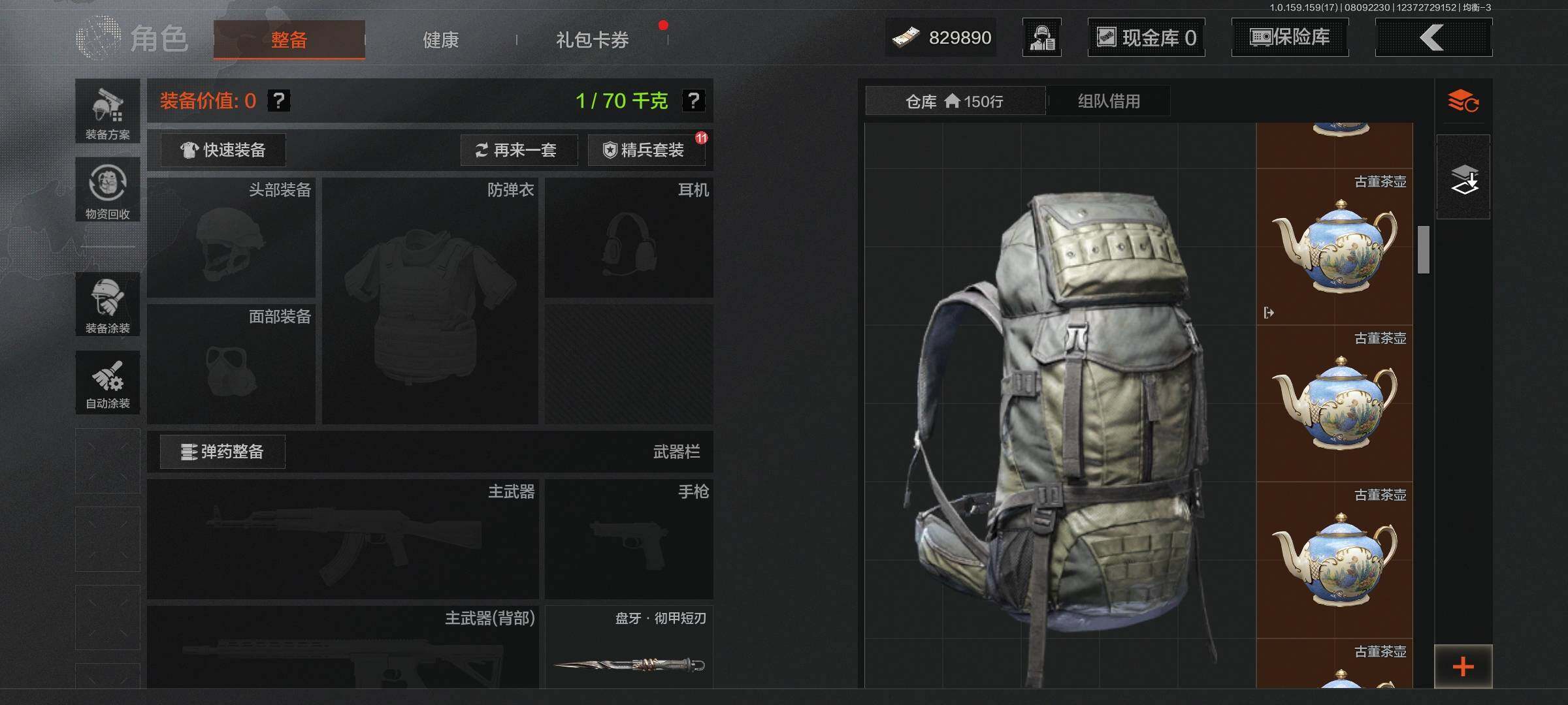 [10557292]暗区 可二次 1刀 仓库价值54.9m 彻甲短刃 来战akm 黑金国际m4a1 德尔塔小队h416 灰鼠幻歌p90 都市夜影套装 理想国 花瓶 古董茶壶 机密文件陈列