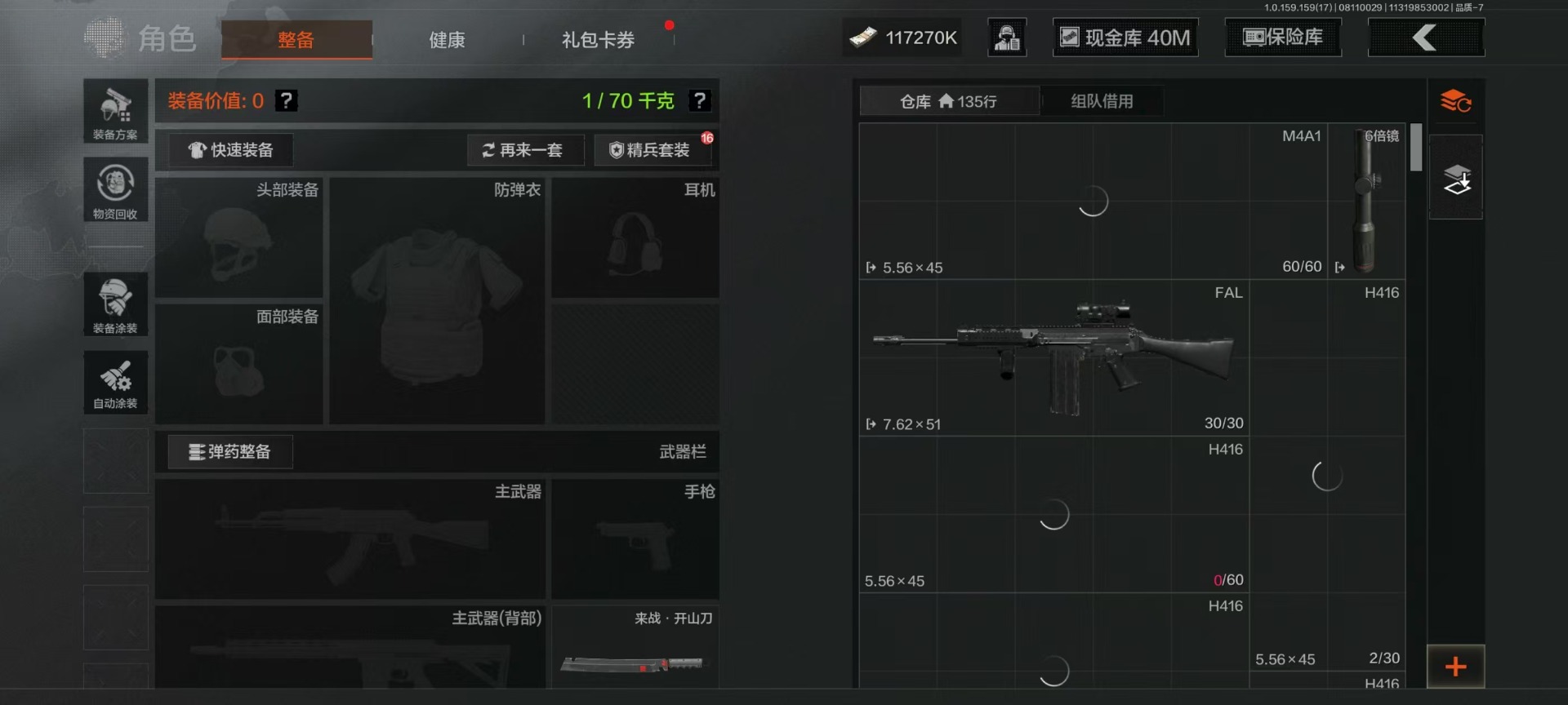 库存价值171.1 3金呛皮 可修改实名 优质装备:蓝色咆哮·h416竞技·fal旗帜·aek 柯恩币数量:117270 紫色呛皮:掌中盾·mp5北国内卫·an94骑士之剑·sj16骑士之剑·14骑士之剑·aks74u无畏·usas12和平之手·fal玄戈梨花·m07