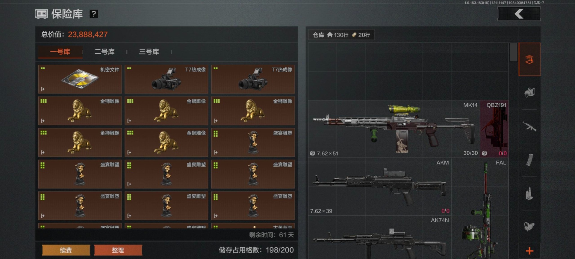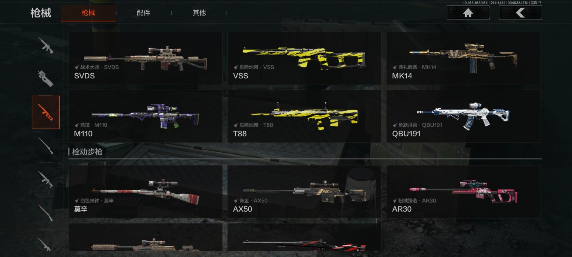 库存价值200.7 1近战武器 5金呛皮 可修改实名 【柯恩币数量】:3409 【近战武器】:工兵铲 【金色呛皮】:告丧夜曲·aug浮鳞影青·q192旧王圣谕·q191包络战术·akm竞技·fal 【紫色呛皮】:狂怒荣耀·vect9竞技·m110竞技·mdr骤羽尖啸·a