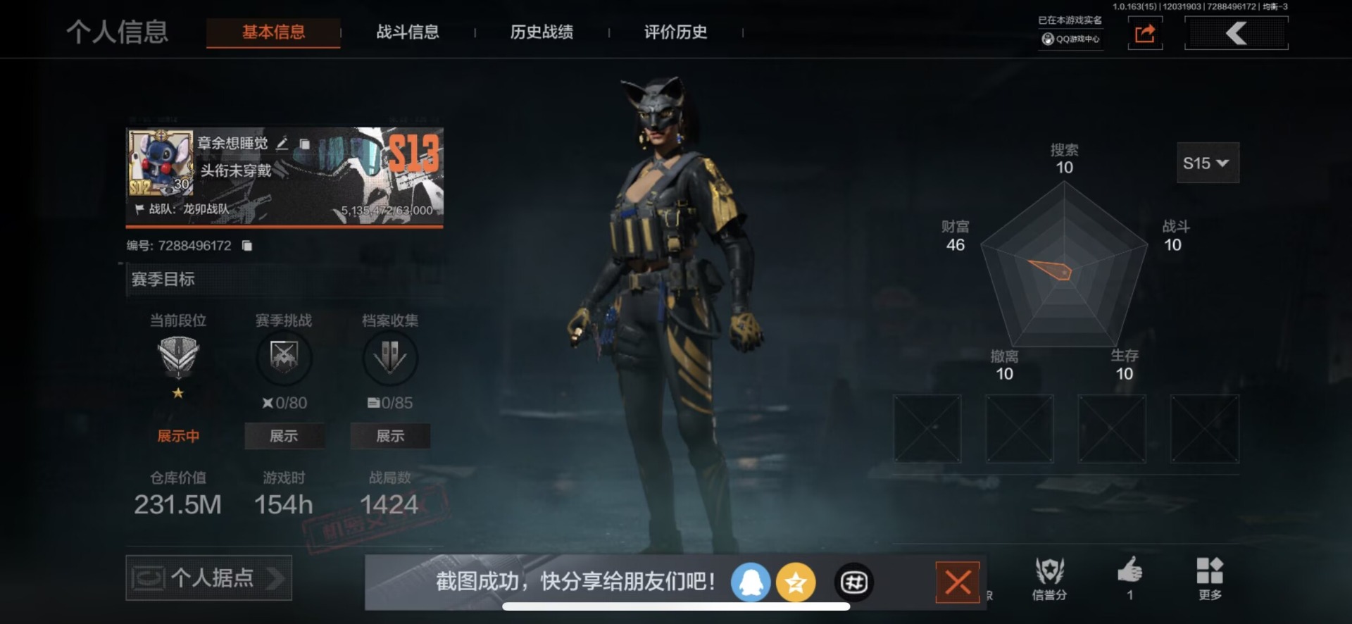 库存价值231.5 6近战武器 1金套装 6金呛皮 可修改实名 【柯恩币数量】:1551 【角色装扮(金)】:使徒·欧瑞恩 【近战武器】:苍穹利爪收割者s-07折刀热能武器·补牢赢家匕首工兵铲 【金色呛皮】:旧王圣谕·q191旗帜·aek棱光裂变·qbu191告丧夜曲·aug
