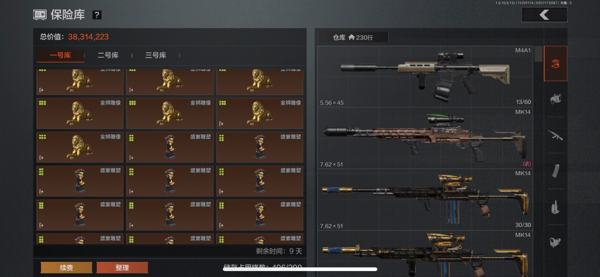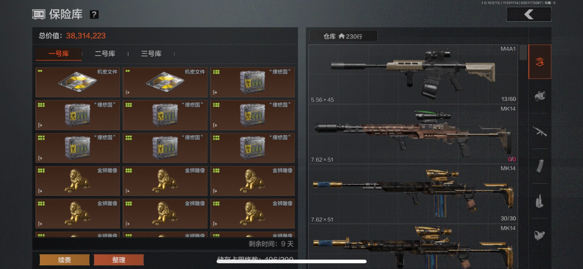 库存价值154.5 2近战武器 1金套装 5金呛皮 可修改实名 【柯恩币数量】:2274 【角色装扮(金)】:使徒·欧瑞恩 【近战武器】:赢家匕首工兵铲 【金色呛皮】:旗帜·aek告丧夜曲·aug利齿风暴·m旧王圣谕·q191骑士之剑·vss 【紫色呛皮】:棱光裂变·ak74n