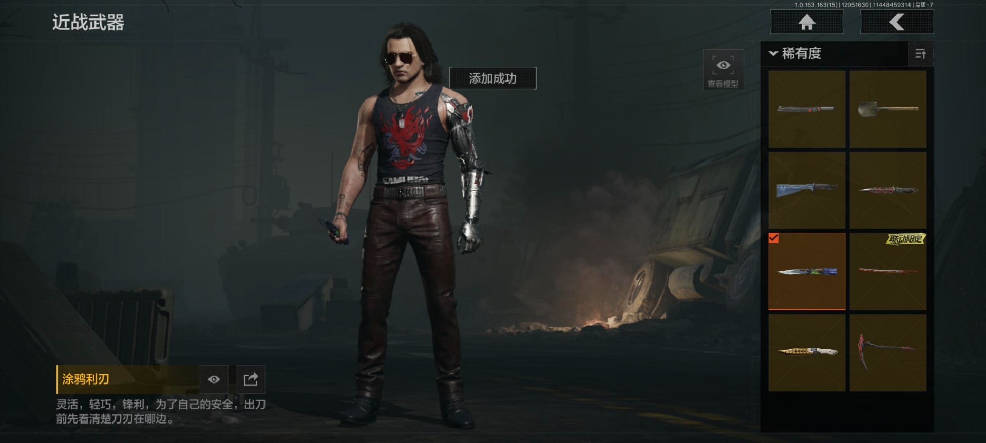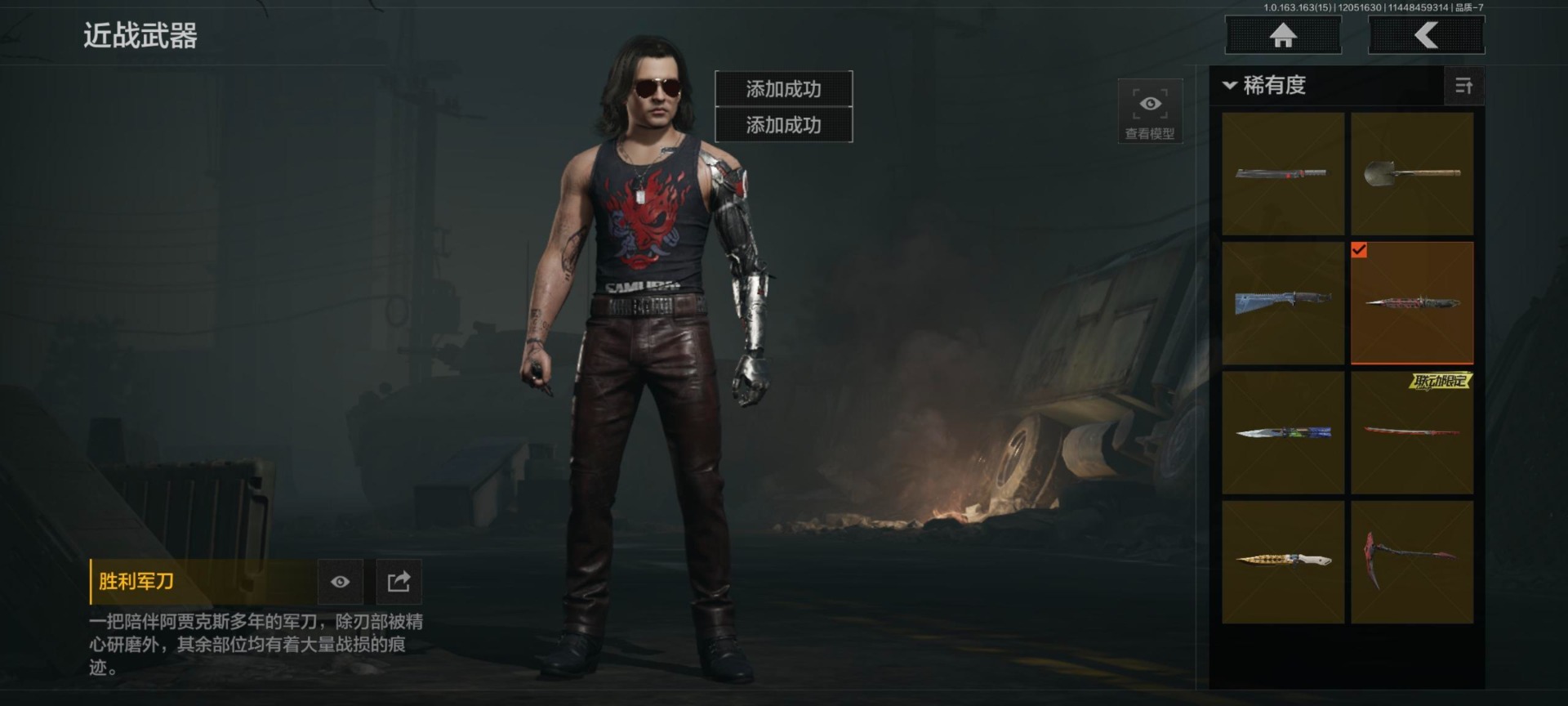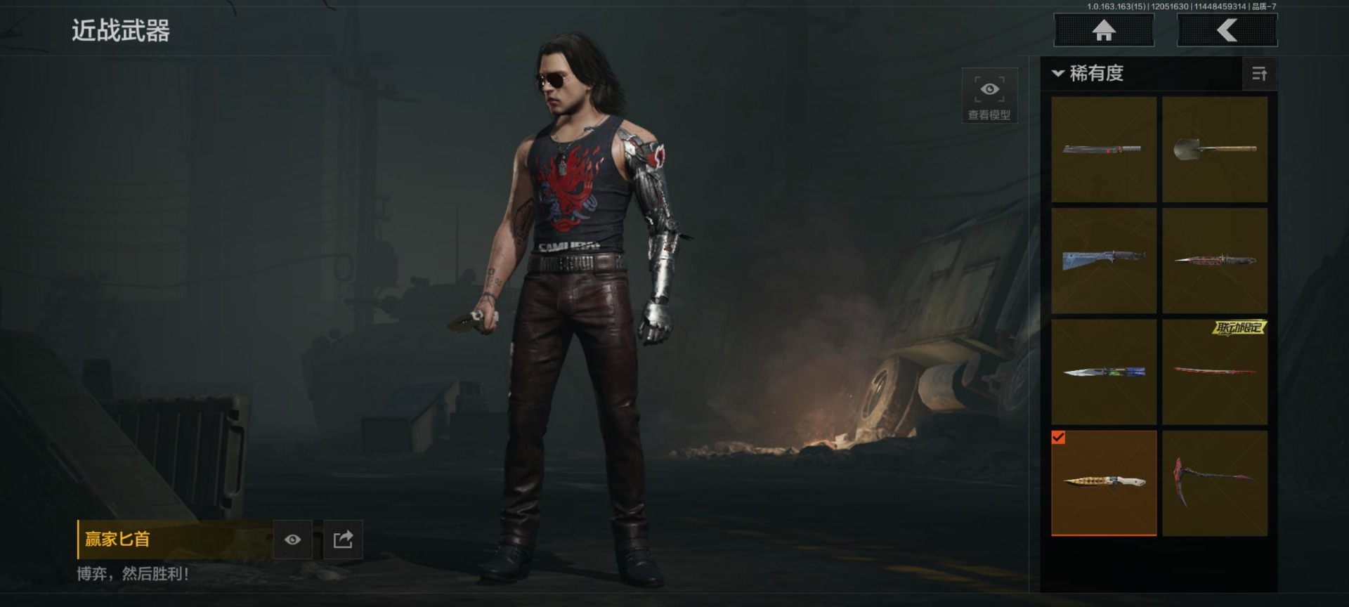 库存价值0.6 8近战武器 2金套装 6金呛皮 可修改实名 【柯恩币数量】:561577 【角色装扮(金)】:黑暗行者特摄戏服强尼·银手套装 【近战武器】:收割者热能武器·补牢赢家匕首工兵铲来战·开山刀涂鸦利刃胜利军刀霜狼生存刀 【金色呛皮】:棱光裂变·qbu191利齿风暴·m