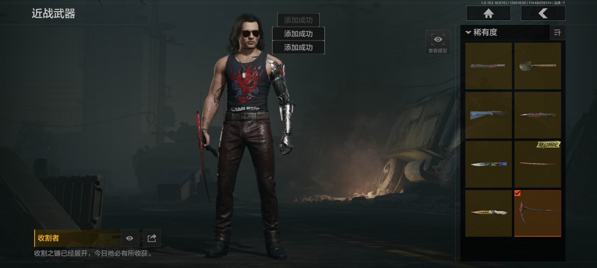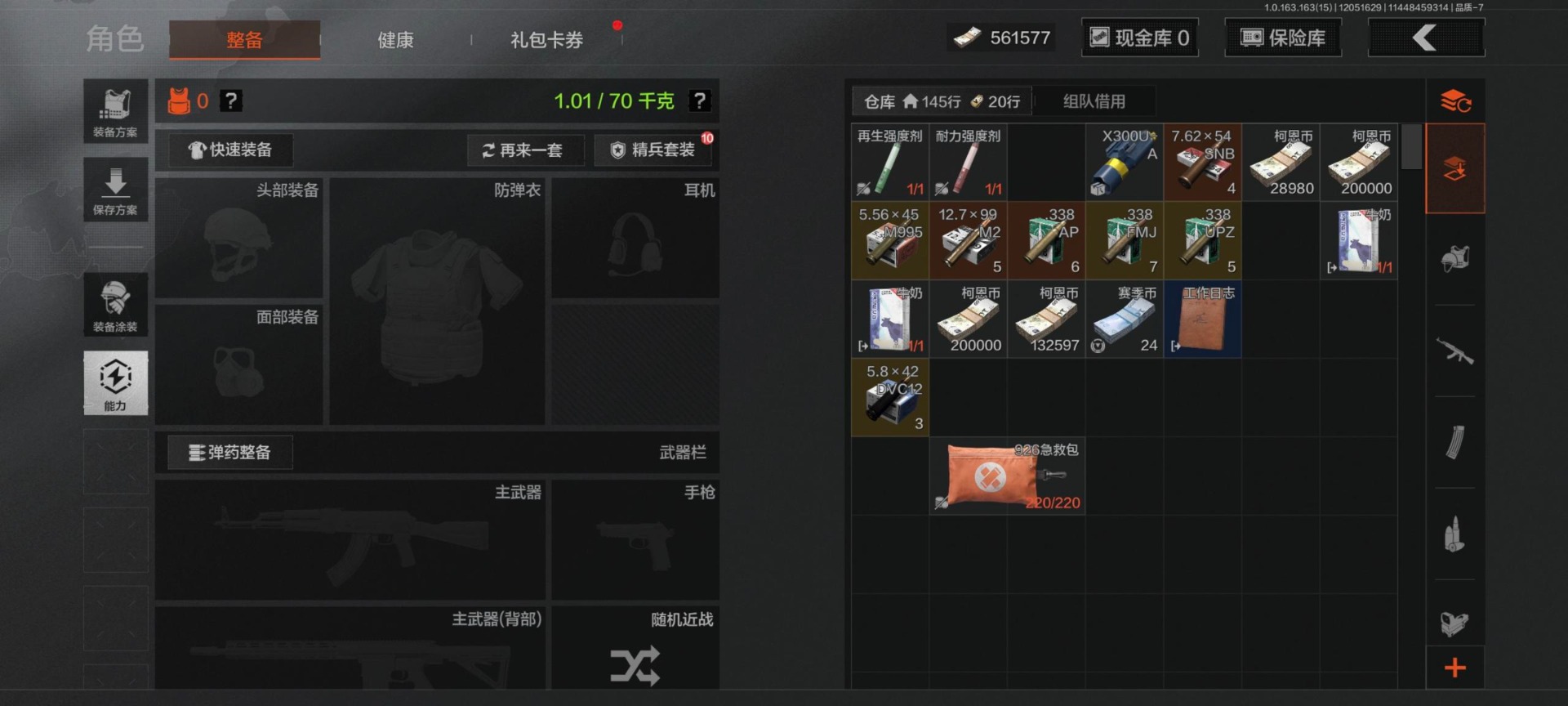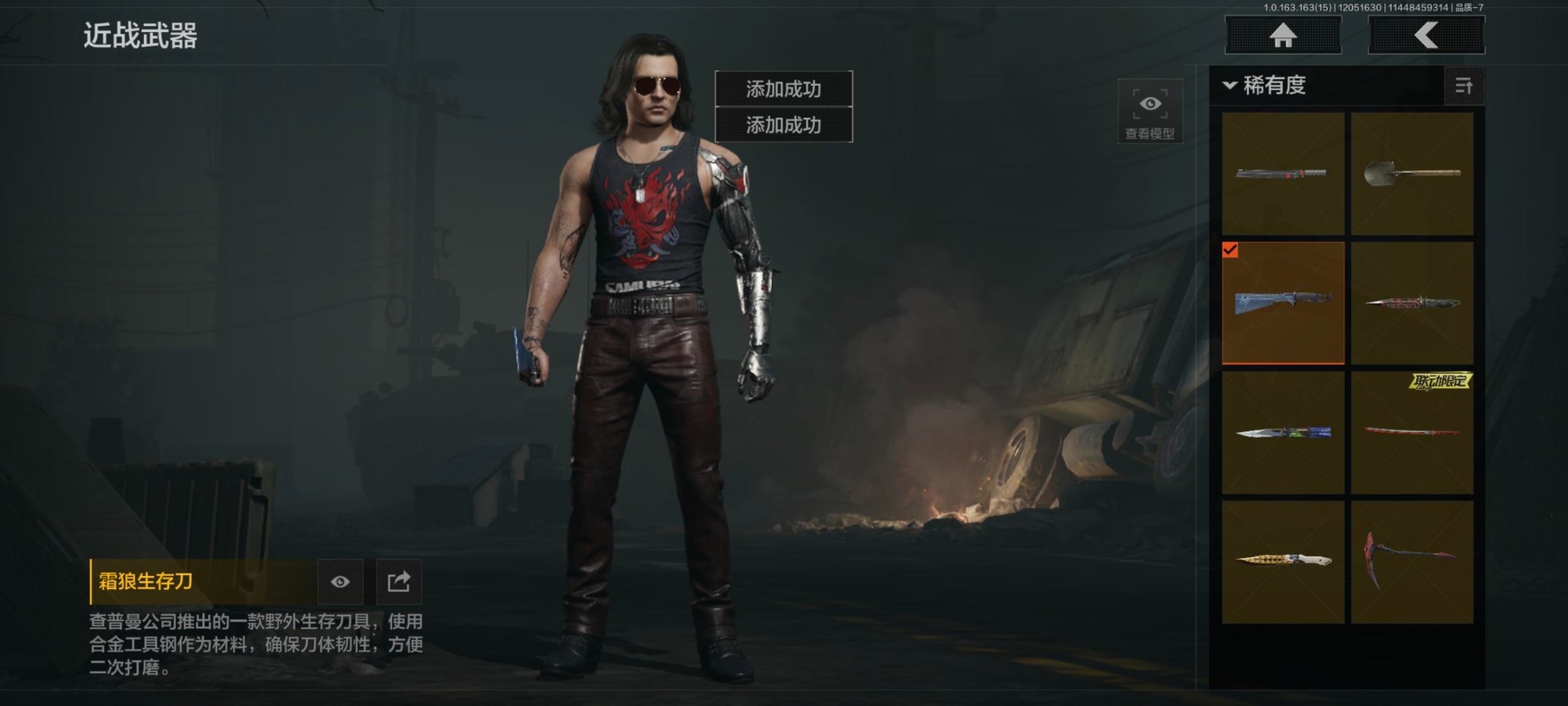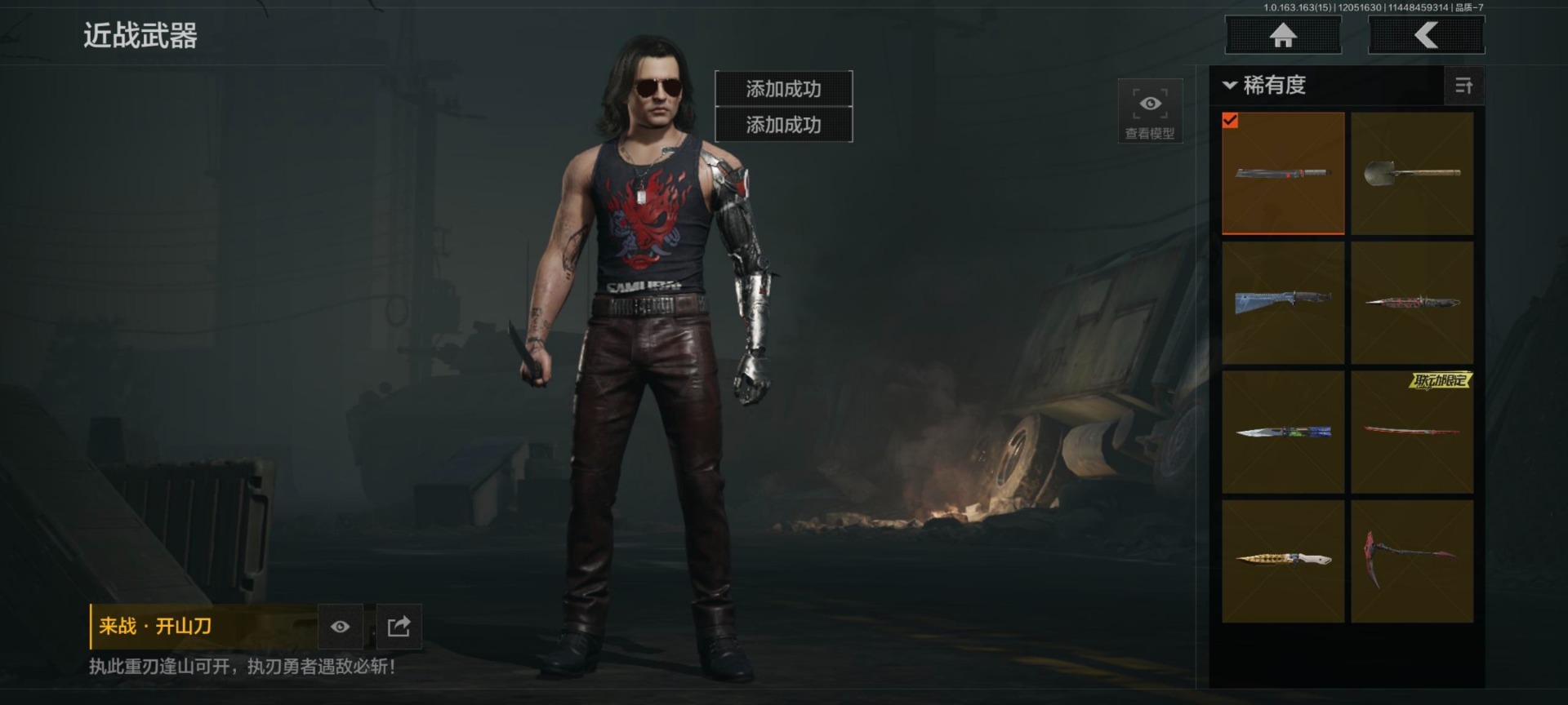 库存价值0.6 8近战武器 2金套装 6金呛皮 可修改实名 【柯恩币数量】:561577 【角色装扮(金)】:黑暗行者特摄戏服强尼·银手套装 【近战武器】:收割者热能武器·补牢赢家匕首工兵铲来战·开山刀涂鸦利刃胜利军刀霜狼生存刀 【金色呛皮】:棱光裂变·qbu191利齿风暴·m