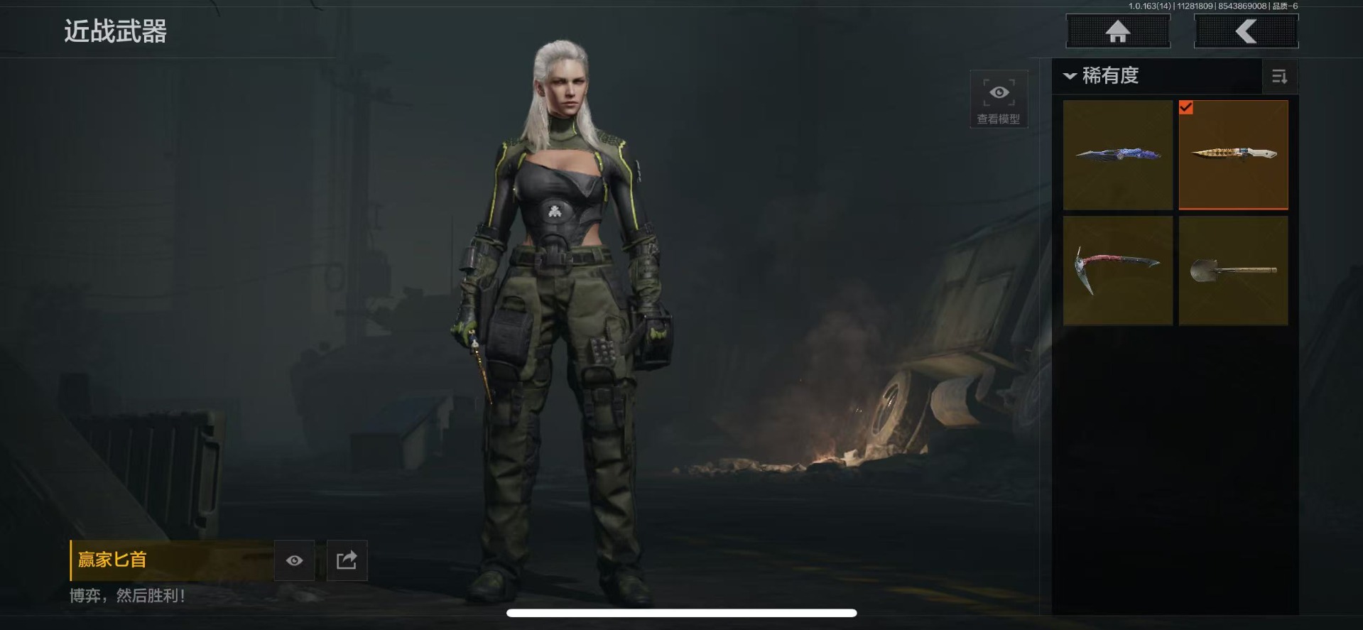 库存价值29 4近战武器 1金套装 2金呛皮 可修改实名 【柯恩币数量】:14321 【角色装扮(金)】:火绒·塔莉娅 【近战武器】:s-07折刀赢家匕首工兵铲冬日冰镐 【金色呛皮】:旗帜·aek棱光裂变·qbu191 【紫色呛皮】:武侍·sj16棱光裂变·ace31棱光裂变·ak7