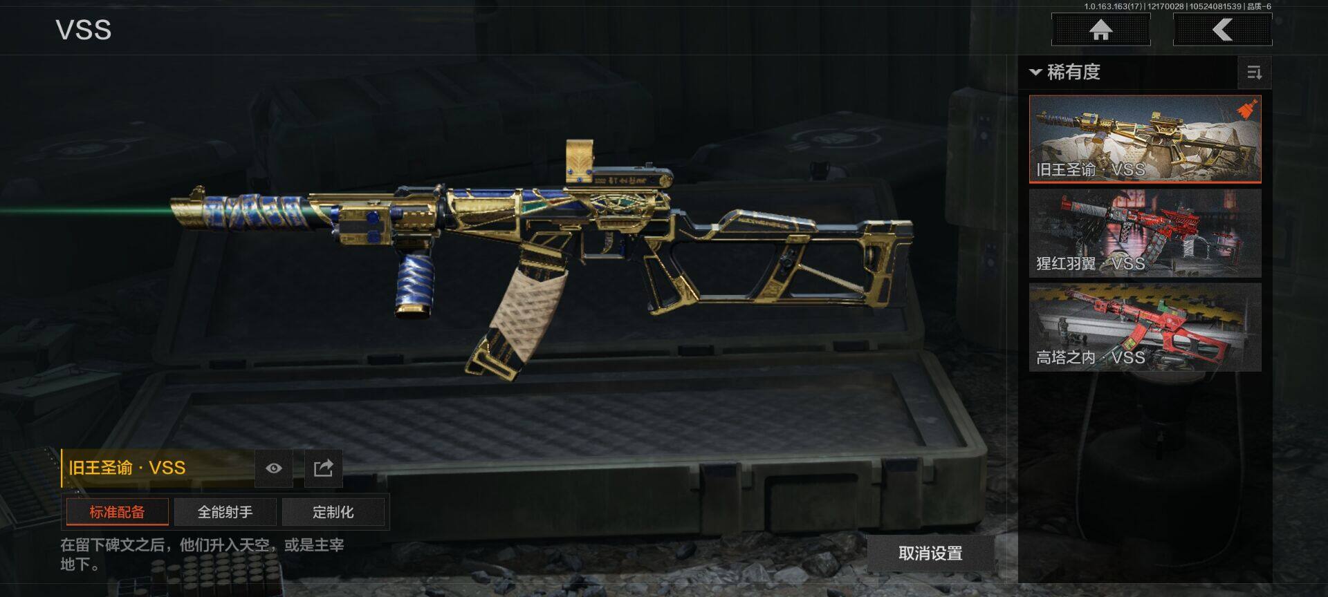 【aqqh85】段位:王牌/仓库价值百万:1/热能武器补牢/脉冲马克西姆/旧王圣谕vss/旧王圣谕q191