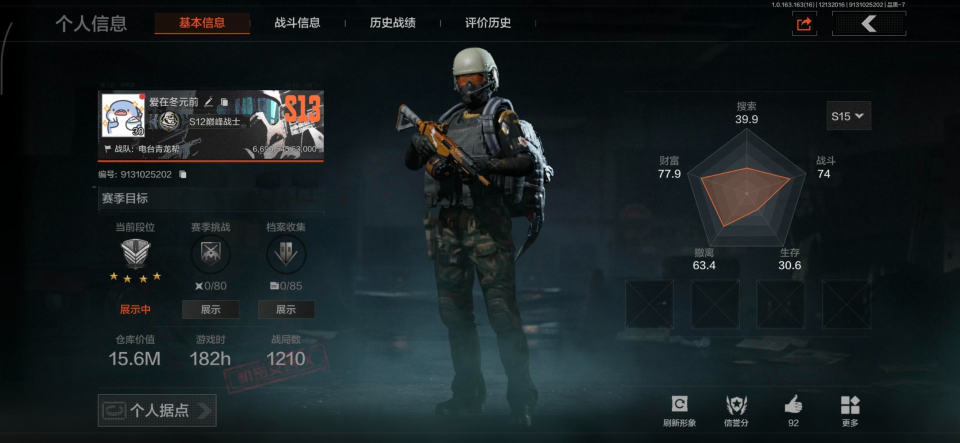 库存价值15.6 1手套 2近战武器 可修改实名 【柯恩币数量】:2985 【近战武器】:涂鸦利刃冬日冰镐 【手套】:噤声者作战手套 【紫色呛皮】:竞技·mdr脊峰速降·m敬伙伴·m16 【角色装扮(紫)】:赤红雄狮作战套装