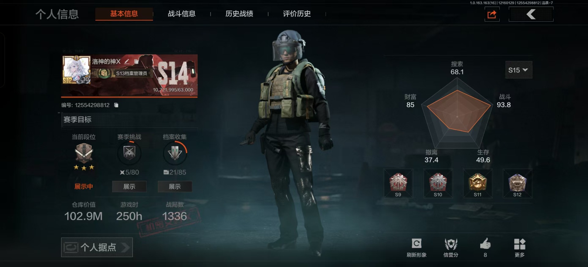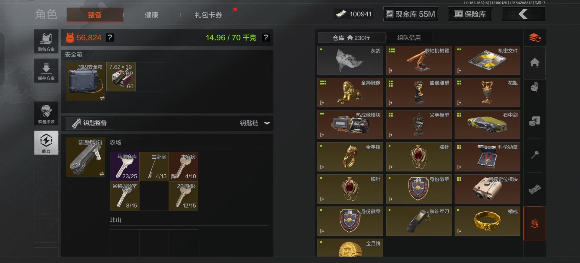 库存价值102.9 2近战武器 3金呛皮 可修改实名 【柯恩币数量】:100941 【近战武器】:工兵铲来战·开山刀 【金色呛皮】:浮鳞影青·q192旧王圣谕·q191战术大师·aek 【紫色呛皮】:猩红羽翼·vss鱼跃丹青·mcx鱼跃丹青·ak102鱼跃丹青·m110最后