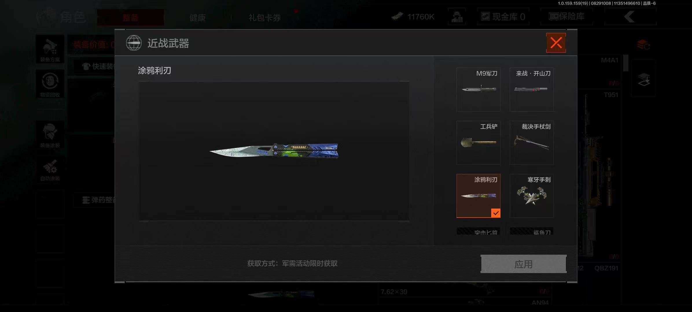 零零零1199890 极品刀皮号,安卓区不可二次,仓库价值:22.6m,纯币:11760k,涂鸦利刃,裁决手杖剑,寒牙手刺,工兵铲,来战开山刀,m9军刀,一堆呛,一堆配件,蓝色咆哮·h416,旗帜·aek,苍白隐者·伪装服,披甲虎卫 挂饰,黑玫瑰挂饰,火力倾泻·akm,缟兵玄墨·akm,禁止访问·ump45,雪山之王·f2000,涂鸦·ak102,和平之手·fal,竞技·mdr,极悉·aug,