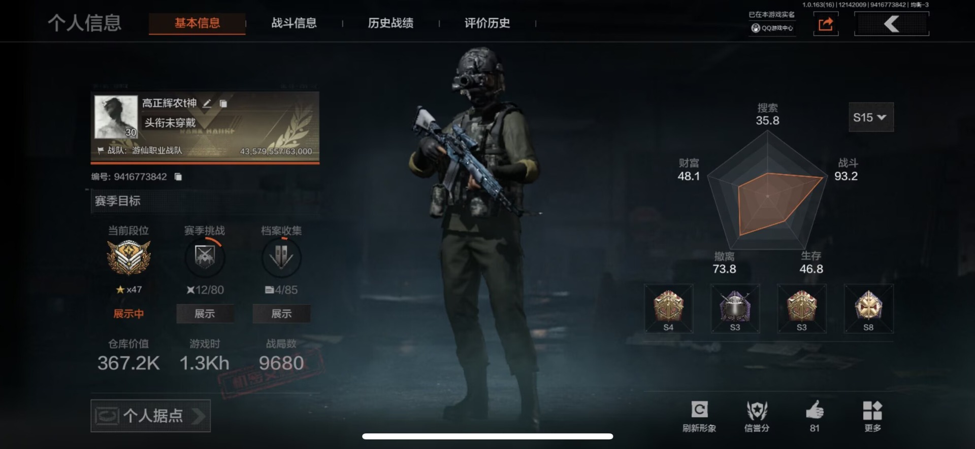 [14631363]库存价值0.36 4近战武器 5金呛皮 可修改实名 【柯恩币数量】:191845 【近战武器】:苍穹利爪工兵铲来战·开山刀涂鸦利刃 【金色呛皮】:告丧夜曲·aug告丧夜曲·ar57利齿风暴·m冰河碎影·mk14骑士之剑·vss 【紫色呛皮】:利齿风暴·t03猩红羽翼·vss鱼跃丹青·qbu191旗帜脉冲·m110战术大师·sj16骑士之剑·akm典礼武备·mk14幻域莎绫·m4a1粉绒臻选·ar30炎夏浪花·h416无畏·usas12骑士之剑·ace31骑士之剑·mk14骑士之剑·aks74u湖冰倒影·mp5 【角色装扮(紫)】:高地武士套装王国卫队礼装金狮护身·转运套装