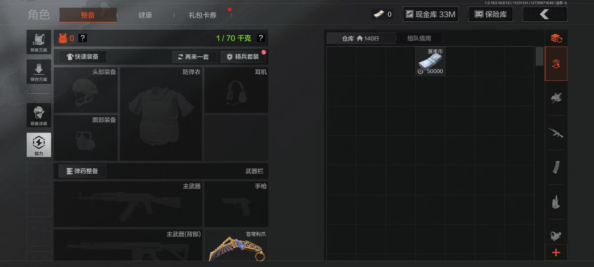 库存价值33.8 3近战武器 3金呛皮 可修改实名 【柯恩币数量】:33m 【近战武器】:苍穹利爪赢家匕首工兵铲 【金色呛皮】:告丧夜曲·aug利齿风暴·m旧王圣谕·q191 【紫色呛皮】:火力倾泻·aug竞技·mdr骤羽尖啸·m利齿风暴·t03赢家·f2000赢家