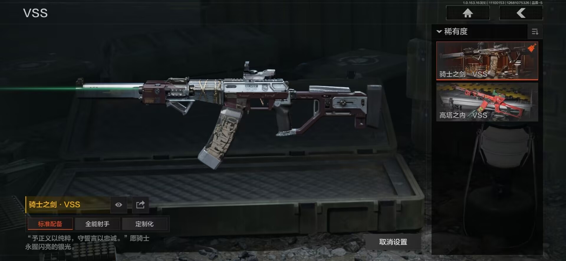 库存价值27.4 4近战武器 1金呛皮 可修改实名 【柯恩币数量】:1455 【近战武器】:s-07折刀热能武器·补牢赢家匕首工兵铲 【金色呛皮】:骑士之剑·vss 【紫色呛皮】:高塔之内·vss超越自我·vect9超越自我·ar30竞技·m110最后防线·aek赢家·f20