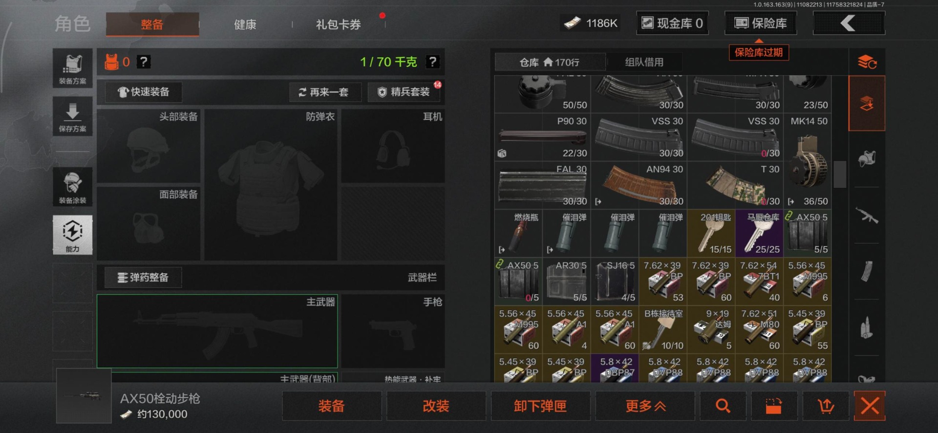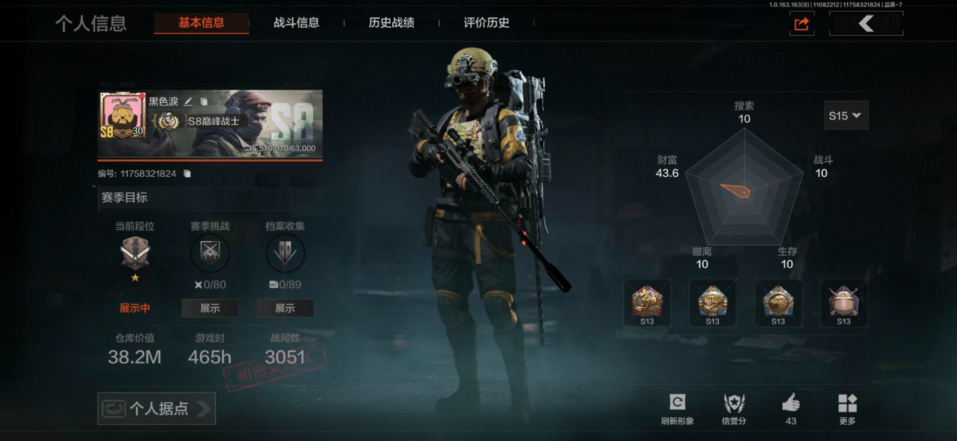 库存价值38.2 3近战武器 5金呛皮 可修改实名 【柯恩币数量】:1186 【近战武器】:热能武器·补牢工兵铲涂鸦利刃 【金色呛皮】:旗帜·aek棱光裂变·qbu191告丧夜曲·ar57浮鳞影青·q192旧王圣谕·q191 【紫色呛皮】:旗帜·rpk16棱光裂变·莫辛棱
