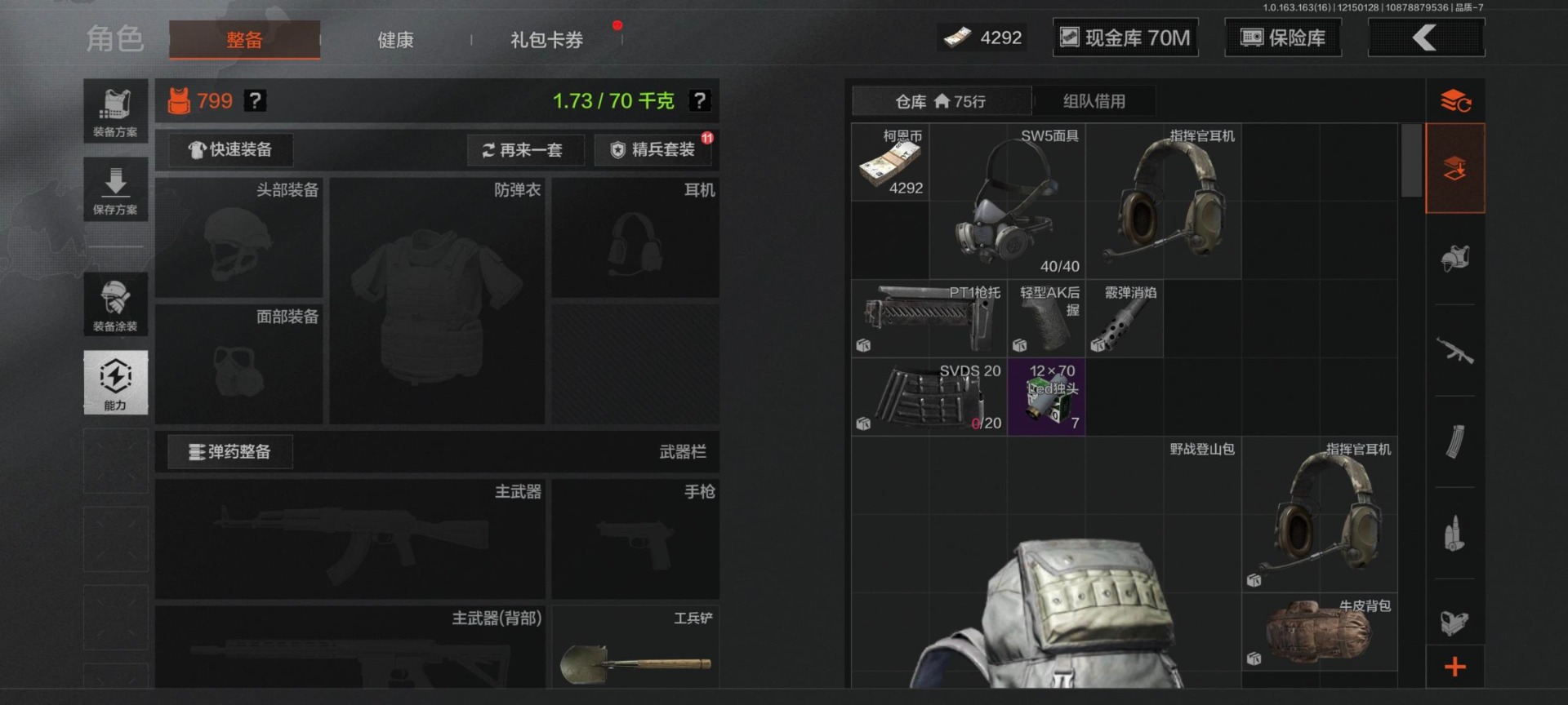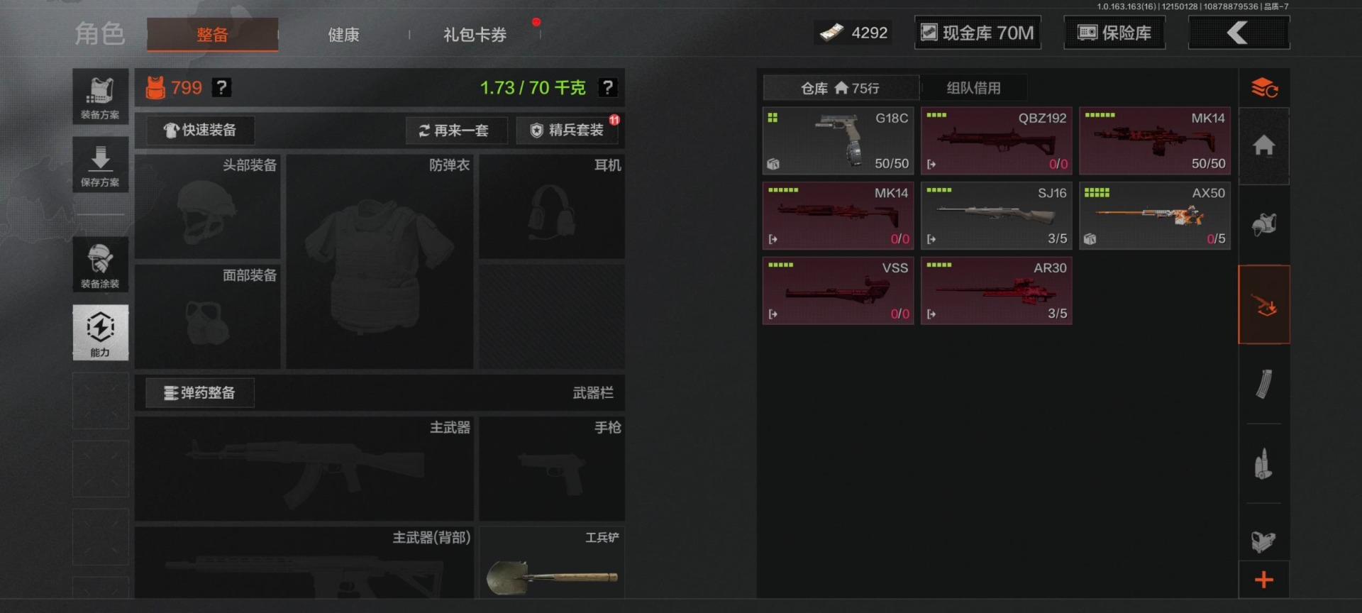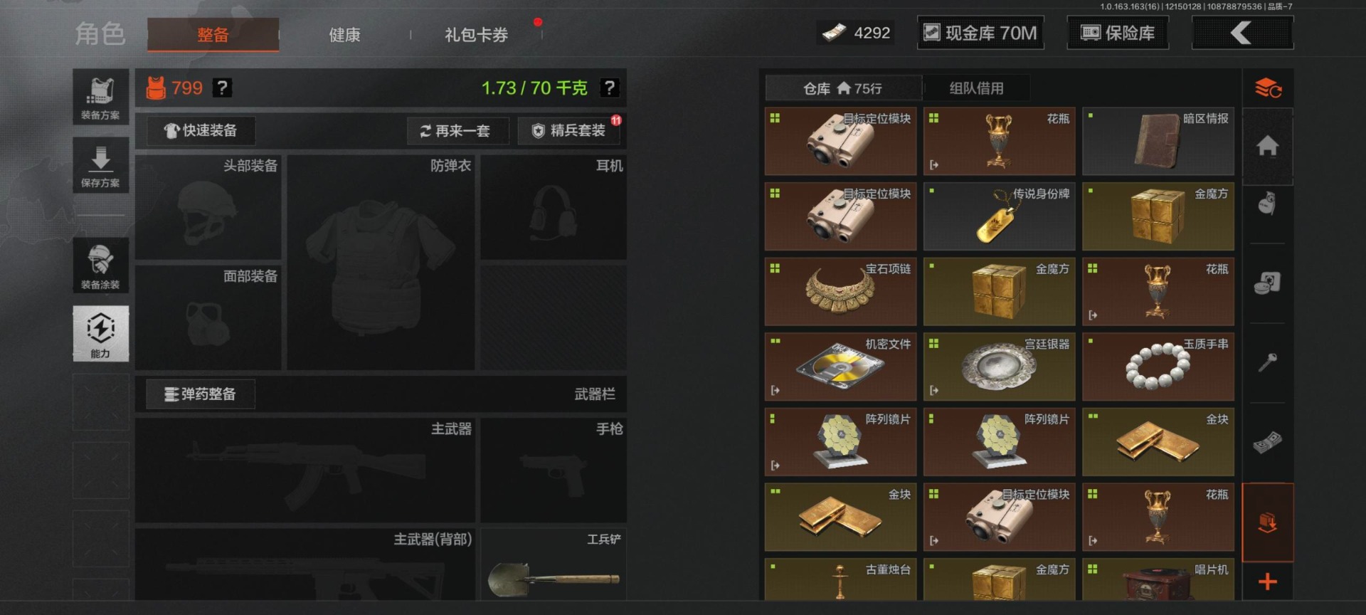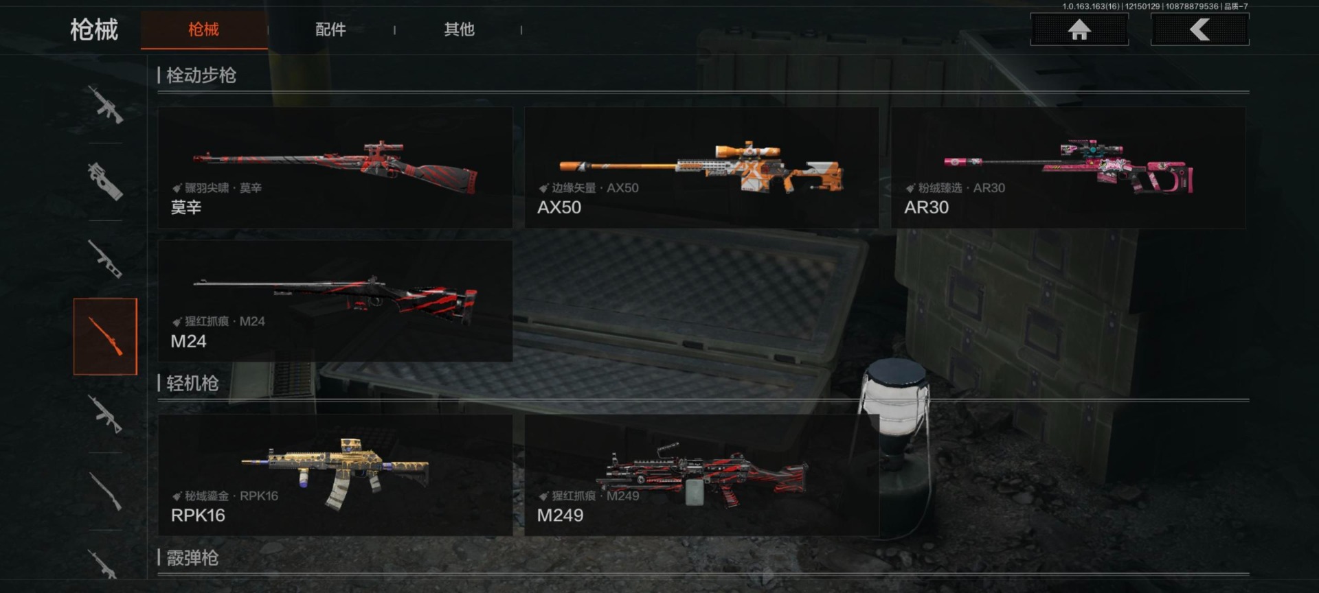 [14652874]库存价值100.4 可修改实名 【柯恩币数量】:4292 【紫色呛皮】:竞技·m110棱光裂变·ak74n棱光裂变·ak102棱光裂变·akm鱼跃丹青·dt mdr旗帜脉冲·usas12战术大师·sks战术大师·suomi典礼武备·mk14边缘矢量·ax50秘域鎏金·rpk16逆火玄石·ace31逆火玄石·m16粉绒臻选·ar30粉绒臻选·an94 【角色装扮(紫)】:高地武士套装金狮护身·转运套装鎏金街头套装都市夜影套装