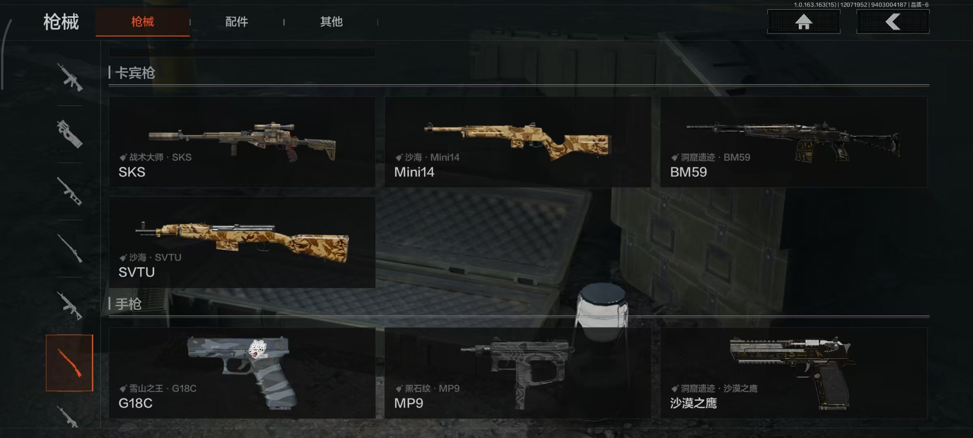 库存价值22.6 4近战武器 2金呛皮 可修改实名 【柯恩币数量】:242339 【近战武器】:空腔战术苍穹利爪工兵铲胜利军刀 【金色呛皮】:战术大师·aek包络战术·akm 【紫色呛皮】:旗帜脉冲·m110旗帜脉冲·mp5k战术大师·sks战术大师·suomi骑士之剑·groz