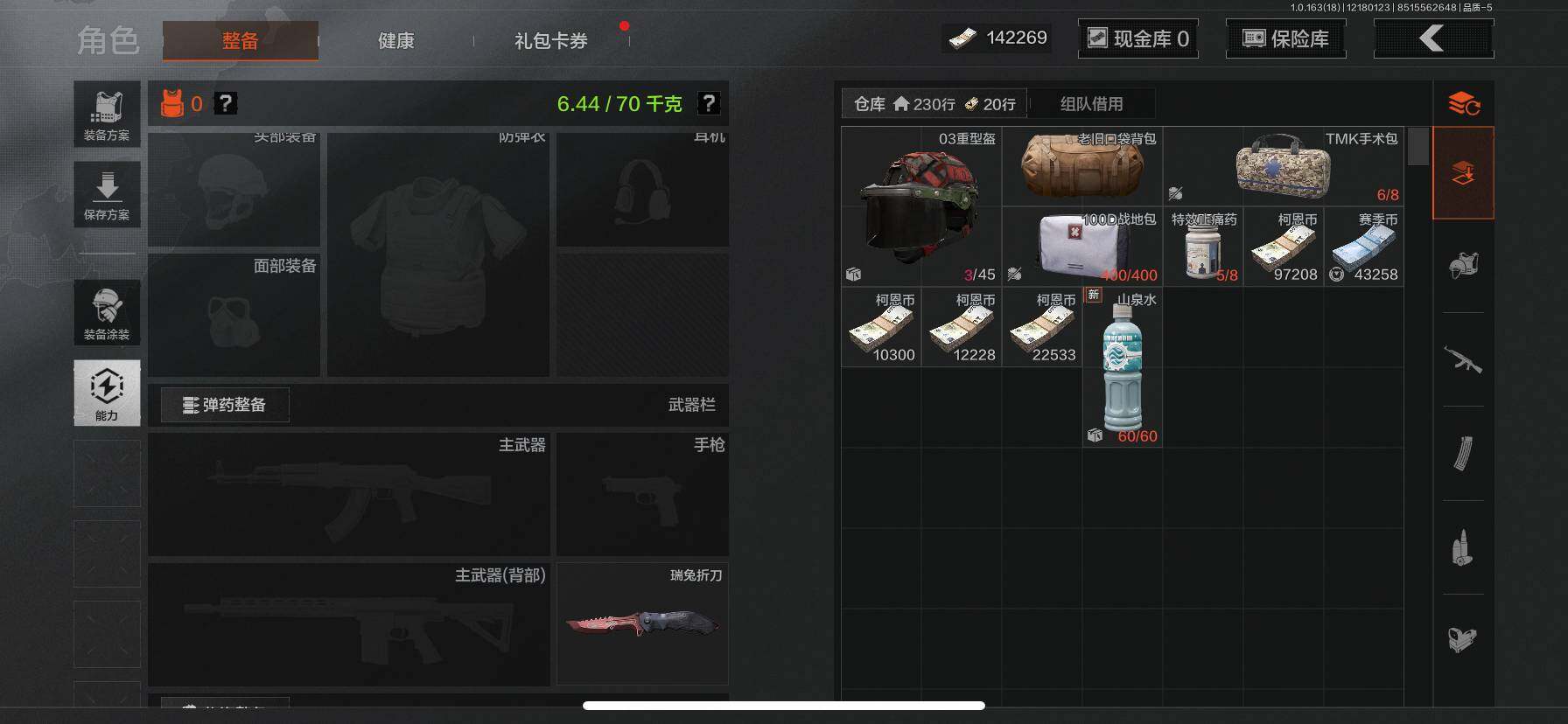 【aqzg722】等级:30/段位:暗区传说/仓库价值百万:0.2/柯恩币:142269/冬日手套/急袭弯刀/瑞兔折刀/精英指虎/冬日冰镐/赢家匕首/瀚星斩铁/涂鸦利刃/火绒塔莉娅/钢铁壁垒作战服/机车朋克战衣/硝云余响作战服/噤声者吉利服/冰河碎影14/骑士之剑vss/黄金fal/伦琴幻影fal/利齿风暴m/旗帜aek/浮鳞影青q192/s14