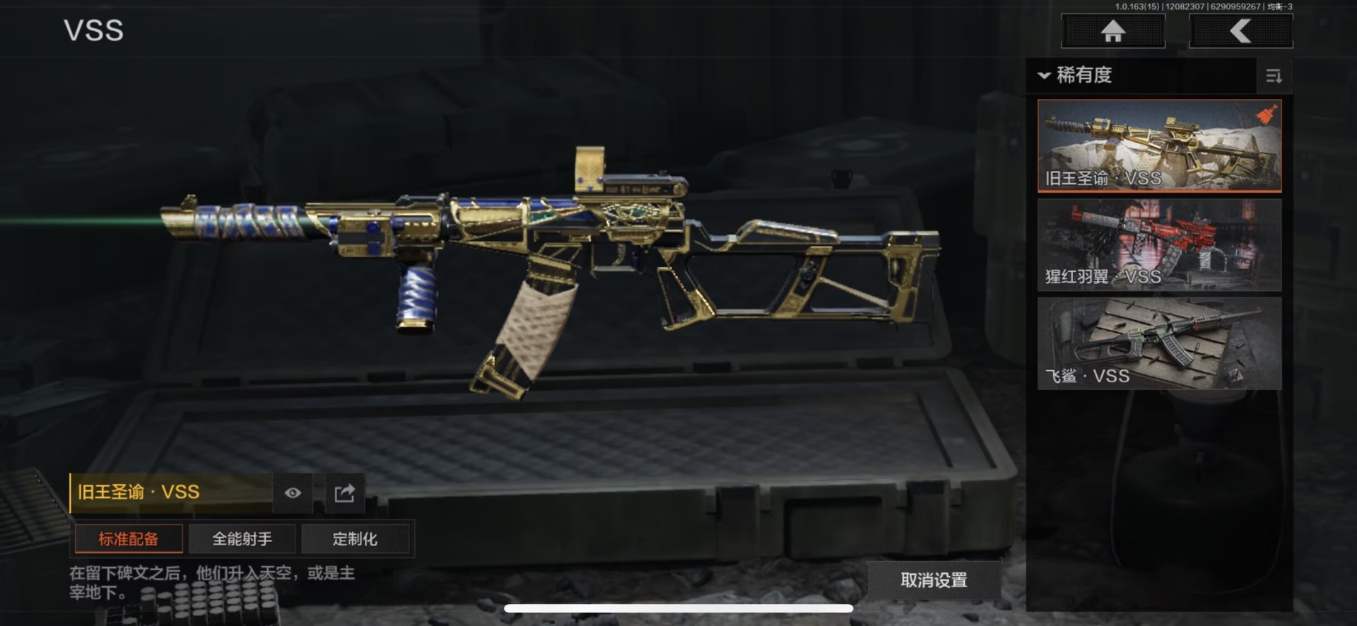 [14653821]库存价值14.6 2近战武器 2金呛皮 可修改实名 【柯恩币数量】:1690 【近战武器】:工兵铲裁决手杖剑 【金色呛皮】:告丧夜曲·aug旧王圣谕·vss 【紫色呛皮】:骤羽尖啸·m4a1骤羽尖啸·m猩红羽翼·vss骑士之剑·t03伦琴计量·scar典礼武备·mk14伦琴计量·t951典礼武备·mcx 【角色装扮(紫)】:王国卫队礼装野狩骑士套装秋日盛宴风衣
