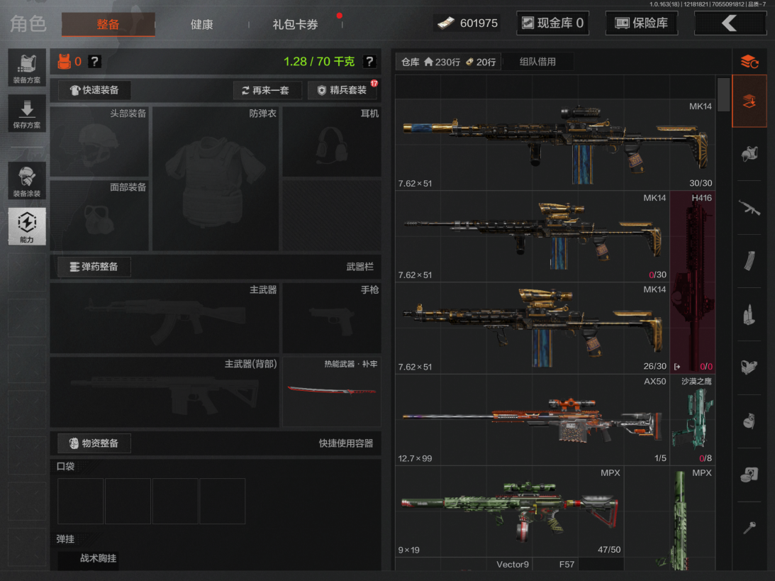 【仓库价值5.7m 科恩币601975 3金呛 刀皮 赢家匕首 热能武器·补牢】苹果q-等级30-仓库价值5.7m-科恩币601975-【套装】 赤红雄狮作战套装 鎏金街头套装 公司成员套装 王国卫队礼装·轻装 金狮护身·转运套装 【呛皮】 旗帜·aek 利齿风暴·m 伦琴幻影·ax50栓动步呛 【近战武器】 赢家匕首 热能武器·补牢