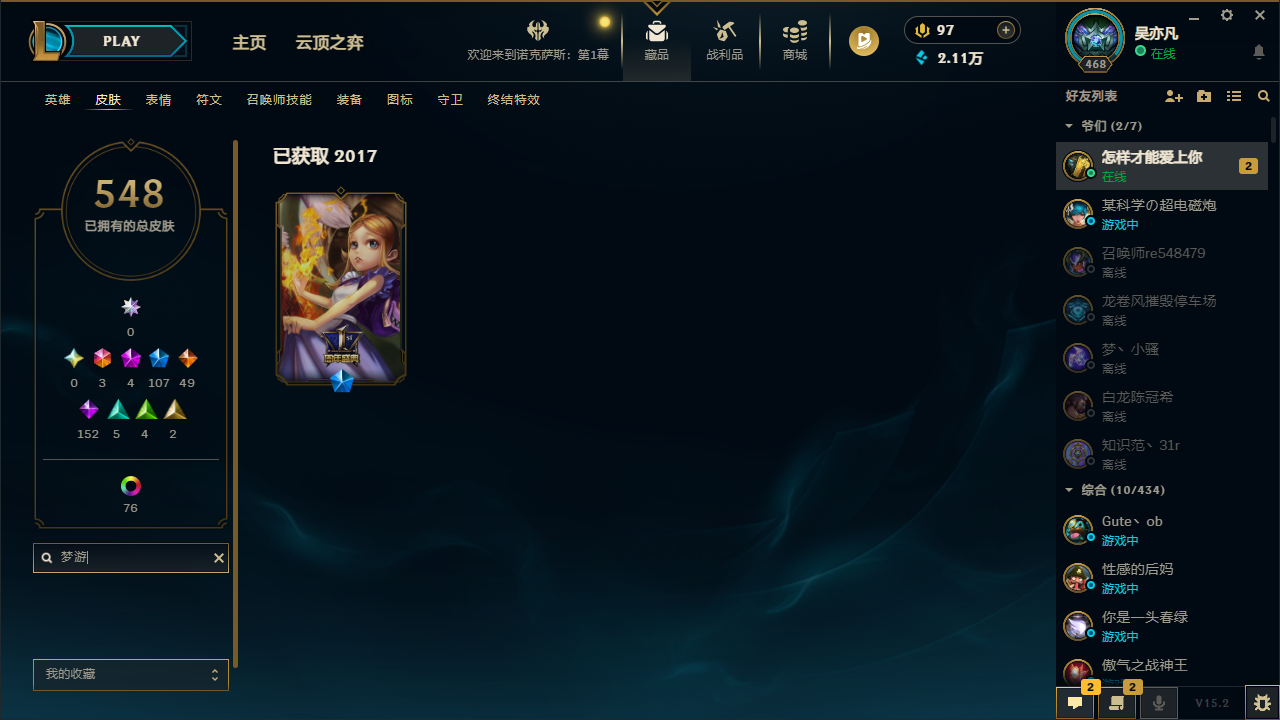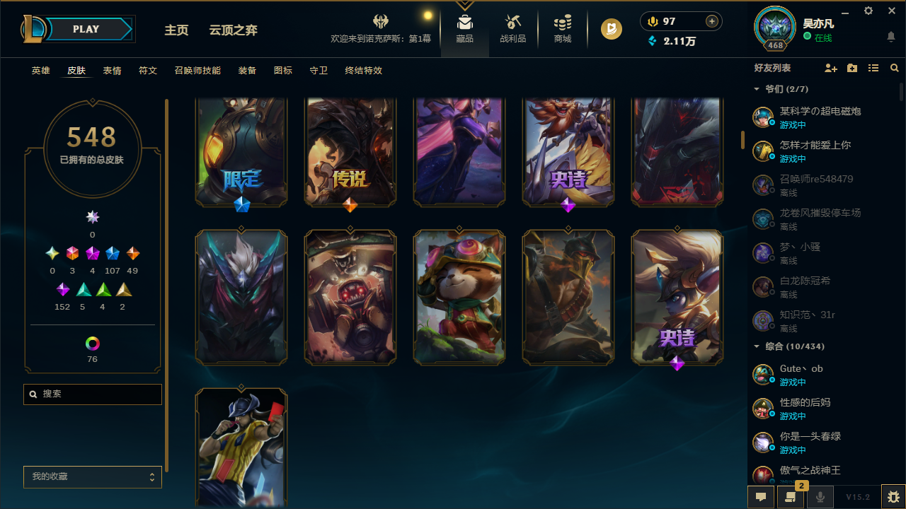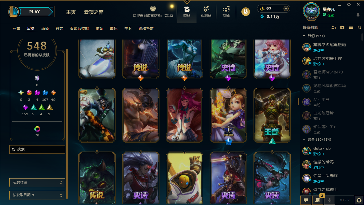 [5778045]32041.3终极 4神话 2臻彩 106限定 49传说 152史诗 548皮肤 92炫彩 170英雄 黄金 皮肤:天龙之子 斯莫德暮星之羽 霞晨星之翎 洛冰雪游神 巴德永恒之森 巴德skt t1 卡莉丝塔冠军之矛 卡莉丝塔腥红之月 卡莉丝塔灌篮高手 艾翁糖果之王 艾翁泳池派对 雷克塞上古战魂 雷克塞暗星 锤石ssw 锤石腥红之月 锤石冠军典狱长 锤石深渊恐惧 锤石永恒之森 阿兹尔skt t1 阿兹尔幽冥领主 阿兹尔星际之门 阿兹尔源代码 娜美海皇姬 娜美河水之灵 娜美锦鲤 娜美胜利之剑 亚托克斯狂鲨 亚托克斯霸天剑魔 亚托克斯炼狱魔女 蔚霓虹杀拳 蔚源计划:自由 艾克任性学霸 艾克时之砂 艾克爵士 克烈冠军之隐 劫skt t1 劫胜利呛神 卢锡安西部魔影 卢锡安觅心游侠 卢锡安源计划:雷 卢锡安职业杀手 卢锡安海牛大大 塔姆五星大厨 塔姆圣诞捣蛋鬼 金克丝星之守护者 金克丝黑帮狂花 金克丝银河魔装机神 千珏黯焰双魂 千珏源计划:升华 烬腥红之月 烬圣诞老人 布隆布隆·狮心屠龙勇士 布隆荣誉使者 阿克尚源代码 卡蜜尔这货不是维克兹苍穹之光 维克兹源计划:风 亚索西部牛仔 亚索泳池派对 扎克邪恶魔人 扎克狂狮 纳尔冰雪兽 纳尔萌侦探 喵尔摩斯最后一只恐龙 纳尔k/da 卡莎skt t1 婕拉鬼影森森 婕拉野火之藤 婕拉霸天龙神 奥瑞利安 · 索尔灰烬领主 奥瑞利安·索尔skt t1 辛德拉仲裁圣女 辛德拉觅心之翼 奎因死亡之鹰 奎因血羽凤凰 奎因腥红之月 黛安娜无限烈焰 黛安娜广寒仙子 嫦娥暗黑女武神 黛安娜暗星女王 丽桑卓源代码