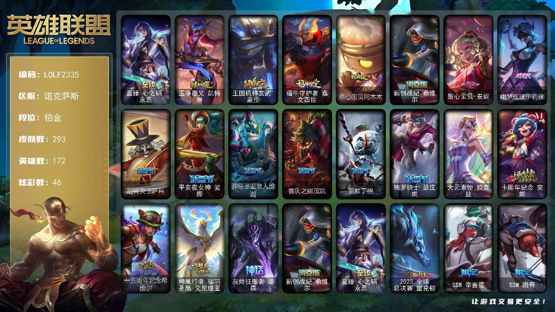 【lolf2335】172英雄/293皮肤/1终极/6神话/45限定/8臻彩/46炫彩/41传说/65史诗/铂金/至臻心之钢永恩/冠军之血希瓦娜凯旋圣装/斗魂觉醒拉克丝无限斗志/玉剑传说舞剑仙承影/天煞劫恒星游历者/灵魂莲华卡西奥佩娅流火/战斗学院盖伦不死鸟/魔女阿卡丽虚荣/净雪之月莫甘娜冬虹/玉净夜叉凯特琳/王国机神玄武盖伦/福牛守护者嘉文四世/点心宝贝阿木木/新创战纪希维尔/甜心宝贝安妮/幽梦玫瑰伊莉丝/胡桃夹子萨科/平安夜女神娑娜/邪恶圣诞老人维迦/喜庆之树茂凯/雪默丁格/魄罗骑士瑟庄妮/大元素使拉克丝/十周年纪念安妮/十五周年纪念希维尔/神凰行者瑞羽圣凰艾尼维亚/灰烬征服者潘森/2023全球总决赛雷克顿/ssw辛吉德/ssw图奇/ssw锤石/dwg凯南/灵能特工易/神凰行者烈羽焰凰霞/暗裔英雄盖伦/胜利呛神格雷福斯/胜利之剑亚托克斯/胜利呛神卢锡安/胜利凤凰艾尼维亚/胜利之王泰达米尔/胜利巨口克格莫/胜利女神娑娜/胜利剑圣易/胜利之运崔斯特/胜利女神菲奥娜/海贼瑞兹/无头骑士赫卡里姆/魅惑女巫迦娜/泳池派对厄运小姐/泳池派对格雷福斯/泳池派对凯特琳/泳池派对蕾欧娜/泳池派对李青/女猎手希维尔/暗影沃里克/都铎王朝图奇/征服者韦鲁斯/制胜金靴李青/防暴天使凯尔/警用试作体k9内瑟斯/邪鸦魅影乐芙兰/大天使长米迦勒凯尔/源计划林易/恶魔男爵瑞兹/黎明使者索拉卡/提莫约德尔人的一大步/驯龙炮手崔丝塔娜/幻灵战斗队长厄运小姐/源计划联合艾希/恶魔之刃泰达米尔/鬼魂新娘莫甘娜/绅士科加斯/黯晶凤凰艾尼维亚/电玩女神娑娜/女主播迦娜/最终boss维迦/苹果机器人布里茨/冰川巨兽墨菲特/源计划泯灭雷克顿/神拳李青/源计划净化薇恩/炼狱魔犬内瑟斯/战斗学院伊泽瑞尔/源计划超体莫德凯撒/死亡骑士盖伦/月蚀骑士蕾欧娜/星之守护者拉克丝/偶像歌手阿狸/泳池派对吉格斯/霸天异形卡兹克/灌篮高手德莱厄斯/神王德莱厄斯/奥德赛凯隐/黑夜使者亚索/神龙尊者昼日真龙亚索/神龙尊者夜月幻龙亚索/暗星尊烬/西部天使赛娜/天煞劫/星之守护者霞/源计划毁灭派克/翼骑统领赵信/摄魂男爵弗拉基米尔/重生之沙费德提克/侍魂易/铁血剑豪易/战争机器赛恩/战场公主希维尔/火箭达人崔丝塔娜/火牙狼人沃里克/黑帮狂花厄运小姐/紫晶射手艾希/百夫长贾克斯/刀锋女王莫甘娜/炼金狂士辛吉德/死神卡尔萨斯/贵族血统萨科/飞越疯人院萨科/掠星魔刃卡萨丁/恐惧新星普朗克/穿着正装的恶魔维迦/驯龙大师斯维因/抵抗军天使凯特琳/古墓丽影凯特琳/铁血狙击手凯特琳/海贼魅影卡特琳娜/沙漠风暴卡特琳娜/符文战神雷克顿/枯萎之壤雷克顿/斗战胜佛孙悟空/v字仇杀者布兰德/灵魂烈焰布兰德/防弹武僧李青/至高之拳李青/地下拳王李青/屠龙勇士薇恩/战地机甲斯卡纳/四神之力乌迪尔/军神战甲波比/大夏武士潘森/冰川勇者伊泽瑞尔/腥红之月凯南/孤高游侠盖伦/钢铁烈阳蕾欧娜/至高君王玛尔扎哈/帝王斑蝶克格莫/侏罗纪化石克格莫/银河魔装机神希瓦娜/银河魔装机神菲兹/夜鸦菲奥娜/源计划火菲奥娜/生化骑士德莱厄斯/天启骑士杰斯/源代码丽桑卓/邪恶魔人扎克/西部牛仔亚索/源计划风亚索/腥红之月亚索/屠龙勇士布隆/源计划雷卢锡安/源计划阴劫/爵士克烈/霓虹杀拳蔚/炼狱魔女蔚/河水之灵娜美/上古战魂雷克塞/霹雳游侠弗拉基米尔/死亡骑士内瑟斯/战地之王加里奥/赌侠崔斯特/皇家守卫赵信/电锯狂人厄加特/幻执事乐芙兰/弗拉基米尔侯爵/屠龙勇士凯尔/暗影易/玉剑传说无极/后场堡垒阿利斯塔/哞利斯塔/黯晶巨牛阿利斯塔/沙之守护瑞兹/武仙座海格力斯赛恩/腥红之月希维尔/军情五处提莫/小恶魔崔丝塔娜/披着海牛的狼沃里克/冻原猎手沃里克/黑暗骑士沃里克/海牛狼人沃里克/古神沃里克/荒野巨兽努努和威朗普/脏兮兮努努和威朗普/破败军团厄运小姐/神龙尊者苍龙艾希/魔女艾希/武神贾克斯/源计划孤狼贾克斯/玉剑传说苍鸾/腥红之月基兰/机械污染辛吉德/腥红之月伊芙琳/绝影神偷图奇/五杀摇滚主唱卡尔萨斯/地狱火卡尔萨斯/梦魇科加斯/狂欢阿木木/王子不是我阿木木/魔域梦魇萨科/健美教练蒙多/泳池派对蒙多/深海一号卡萨丁/凌云之翼艾瑞莉娅/源计划正义艾瑞莉娅/海牛骑手库奇/塔里克辉盾/绿野仙踪维迦/里尔击球手特朗德尔/垃圾场特朗德尔/荒野治安官凯特琳/双城之战凯特琳/净雪之月凯特琳/银白呛骑布里茨/奥德赛墨菲特/劫掠梦魇魔腾/鳄霸雷克顿/黑色玫瑰假面舞会伊莉丝/战场boss布兰德/传统僧侣李青/灵魂莲华薇恩/荒漠之咬卡西奥佩娅/蛇发女妖卡西奥佩娅/太空律动狗头内瑟斯/狮子星神奈德丽/诺克萨斯波比/狂热球迷古拉加斯/光执事伊泽瑞尔/黑桃皇牌伊泽瑞尔/灵能特工伊泽瑞尔/五杀摇滚吉他手莫德凯撒/地狱送葬约里克/苍穹之光约里克/喵里克/暗星约里克/kdaallout阿卡丽/战神阿瑞斯盖伦/德玛西亚警官盖伦/战场boss玛尔扎哈/灵魂莲华锐雯/光明哨兵锐雯/毛毛虫克格莫/极寒慎/荣誉使者慎/战斗学院拉克丝/太空律动闪耀灯球拉克丝/战地法师泽拉斯/欲望之主泽拉斯/kda阿狸/坚韧不屈沃利贝尔/墨影之灵沃利贝尔/霸天战士雷恩加尔/觅心射手韦鲁斯/猎户星神韦鲁斯/失落大陆诺提勒斯/全金属狂潮维克托/灵魂收割者德莱文/血石骑士赫卡里姆/奥德赛卡兹克/西部魔影德莱厄斯/地下都市梦魇德莱厄斯/灵魂莲华德莱厄斯/战斗学院杰斯/女帝黛安
