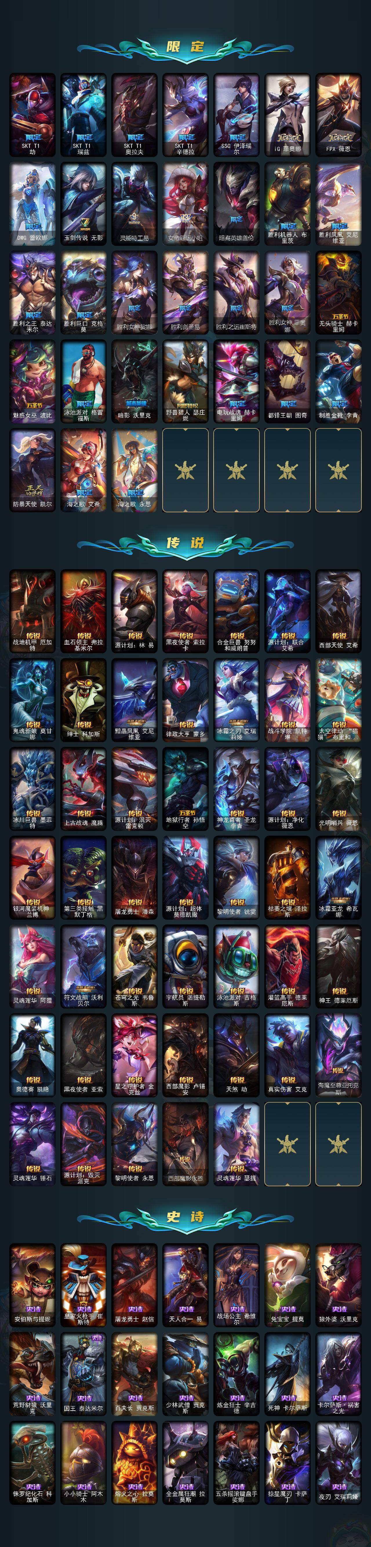 【lolyh564】172英雄/439皮肤/4终极/20神话/56限定/13臻彩/289炫彩/47传说/73史诗/钻石/雪花头像/玉剑传说苍鸾头像/至臻 至高天 凯尔/至臻灵魂莲华易/至臻北极星使者沃里克/至臻征服者贾克斯/至臻暗裔英雄嘉文四世/至臻西部魔影泰隆/至臻 青花瓷 丽桑卓/至臻 drx 亚托克斯/至臻 太空律动 魔音海妖 娜美/至臻 原计划:逆流 塞拉斯/至臻 神龙尊者 炎龙瑟提/