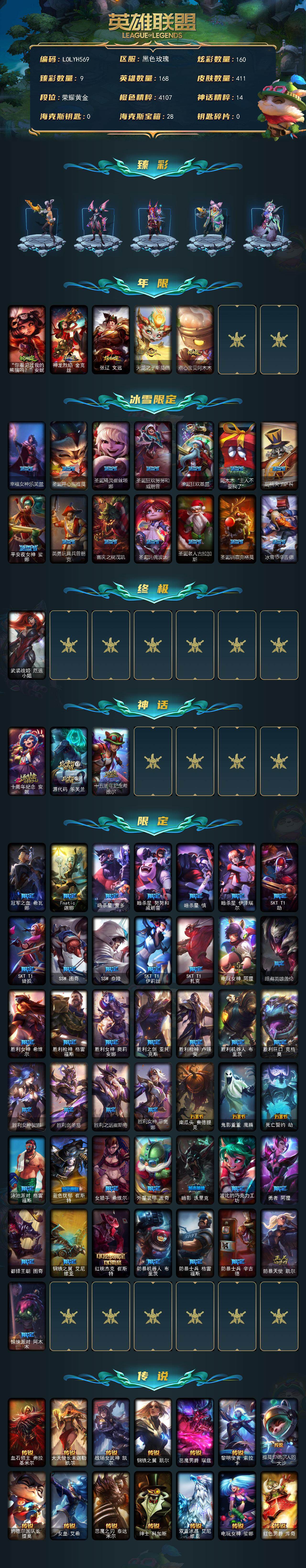 【lolyh569】168英雄/411皮肤/1终极/3神话/62限定/9臻彩/160炫彩/30传说/108史诗/黄金账号等级:715/天龙之子卡莎飞龙乘云/墨之影武者亚索金墨耀影/雾雨之刃锐雯/弹幕天使卡莎炽天使勇敢/星之守护者霞烈羽/玉剑传说神机花火青竹/灵魂莲华亚索霜见之时/魔女阿卡丽虚荣/净雪之月莫甘娜冬虹/你看见过我的熊猫吗安妮/神龙烈焰金克丝/张辽文远/天龙之子斯莫德/点心宝贝阿木木/幸福女神乐芙兰/圣诞开心鬼提莫/圣诞精灵崔丝塔娜/圣诞狂欢努努和威朗普/圣诞狂欢基兰/阿木木“主人不要我了”/胡桃夹子萨科/平安夜女神娑娜/英勇玩具兵普朗克/喜庆之树茂凯/圣诞玩偶波比/圣诞老人古拉加斯/圣诞驯鹿克格莫/冰雪节辛吉德/武装战姬厄运小姐/十周年纪念安妮/源代码乐芙兰/十五周年纪念希维尔/冠军之血希瓦娜/fnatic迦娜/暗杀星蒙多/暗杀星努努和威朗普/暗杀星慎/暗杀星伊泽瑞尔/sktt1劫/sktt1婕拉/ssw图奇/ssw泰隆/sktt1伊莉丝/sktt1扎克/电玩女神阿狸/暗裔英雄盖伦/胜利女神希维尔/胜利呛神格雷福斯/胜利女神奥莉安娜/胜利之剑亚托克斯/胜利呛神卢锡安/胜利机器人布里茨/胜利巨口克格莫/胜利女神娑娜/胜利剑圣易/胜利之运崔斯特/胜利女神菲奥娜/南瓜头费德提克/鬼影重重魔腾/死亡誓约劫/泳池派对格雷福斯/蓝色忧郁崔斯特/女猎手希维尔/外星装甲库奇/暗影沃里克/波比的巧克力工坊/勇者阿狸/都铎王朝图奇/钢铁之翼艾尼维亚/红桃杰克崔斯特/防暴机器人布里茨/防暴士兵格雷福斯/防暴士兵辛吉德/防暴天使凯尔/惊悚派对阿木木/血石领主弗拉基米尔/大天使长米迦勒凯尔/战场女武神凯尔/钢铁之翼凯尔/恶魔男爵瑞兹/黎明使者索拉卡/提莫约德尔人的一大步/约德尔国队长提莫/女皇艾希/恶魔之刃泰达米尔/绅士科加斯/双重冰晶艾尼维亚/电玩女神娑娜/红色男爵库奇/最终boss维迦/女警狙击凯特琳/陆地王者4wd布里茨/苹果机器人布里茨/神拳李青/银河魔装机神兰博/第三类接触黑默丁格/炼狱魔犬内瑟斯/死亡骑士盖伦/星之守护者拉克丝/黯黑魔龙希瓦娜/冰霜亚龙希瓦娜/符文战熊沃利贝尔/宇航员诺提勒斯/女校长菲奥娜/奥德赛凯隐/科学怪熊的新娘安妮/腥红之月崔斯特/绞肉机角斗士赵信/翼骑统领赵信/摄魂男爵弗拉基米尔/铁钩船长费德提克/圣光审判凯尔/天人合一易/侍魂易/铁血剑豪易/战争机器赛恩/战场公主希维尔/月光女神阿忒弥斯索拉卡/兔宝宝提莫/火箭达人崔丝塔娜/狼外婆沃里克/荒野豺狼沃里克/女船长厄运小姐/国王泰达米尔/黑色荆棘莫甘娜/小小骑士阿木木/殇之机器人阿木木/熔火之心拉莫斯/全金属狂潮拉莫斯/贵族血统萨科/飞越疯人院萨科/战争血统蒙多/五杀摇滚键盘手娑娜/夜行义贼艾瑞莉娅/海克斯科技迦娜/寒冰女皇迦娜/恐惧新星普朗克/血石诅咒塔里克/穿着正装的恶魔维迦/北领前线斯维因/绝代智将斯维因/抵抗军天使凯特琳/黑曜石守护者墨菲特/霸天巨兽墨菲特/暗夜猫女卡特琳娜/前线指挥官卡特琳娜/符文战神雷克顿/龙骑统帅嘉文四世/凯旋英雄嘉文四世/死亡绽放伊莉丝/v字仇杀者布兰德/灵魂烈焰布兰德/至高之拳李青/地下拳王李青/深海妖姬卡西奥佩娅/法老王朝内瑟斯/四神之力乌迪尔/血色之锤波比/飞车暴走族古拉加斯/大夏武士潘森/面包之王潘森/实习护士阿卡丽/刺客信条凯南/铁甲雄心盖伦/钢铁烈阳蕾欧娜/至高君王玛尔扎哈/腥红之月泰隆/血色精锐锐雯/兔女郎锐雯/腥红之月鬼武者慎/odst地狱伞兵拉克丝/沙之守护泽拉斯/钢之逆鳞希瓦娜/骸骨之爪希瓦娜/银河魔装机神希瓦娜/黑帮教父格雷福斯/海牛猎手菲兹/铁血猎人雷恩加尔/白色死神韦鲁斯/皇家守卫菲奥娜/永恒之森赫卡里姆/沙之守护卡兹克/暗星卡兹克/铁血帝皇德莱厄斯/生化骑士德莱厄斯/天启骑士杰斯/暗黑女武神黛安娜/无限烈焰黛安娜/腥红之月黛安娜/血羽凤凰奎因/勇敢的心奎因/仲裁圣女辛德拉/亚特兰蒂斯辛德拉/灰烬领主奥瑞利安索尔/野火之藤婕拉/邪恶魔人扎克/源计划风亚索/战地机甲维克兹/苍穹之光维克兹/猛虎布隆/腥红之月烬/银河魔装机神千珏/五星大厨塔姆/职业杀手卢锡安/冲击之刃劫/时之砂艾克/源计划自由艾克/霸天剑魔亚托克斯/锦鲤娜美/幽冥领主阿兹尔/糖果之王艾翁/永恒之森巴德/冰雪游神巴德/星空之门内瑟斯/孤胆英豪嘉文四世/死亡骑士内瑟斯/西部牛仔崔斯特/拆弹专家黑默丁格/创意工坊黑默丁格/亮丽女神希维尔/法老阿木木/魔导绅士维迦/宗师级锻造训练师/小红帽安妮/黑暗骑士奥拉夫/风执事加里奥/地狱火加里奥/探戈灵魂崔斯特/地下都市梦魇崔斯特/皇家守卫赵信/电锯狂人厄加特/潮流女王乐芙兰/社会名流乐芙兰/弗拉基米尔伯爵/弗拉基米尔侯爵/黑潮弗拉基米尔/联合王国费德提克/荒野幽灵费德提克/末世天使凯尔/暗影易/星战易/玉剑传说无极/金牛座阿利斯塔/斗牛士阿利斯塔/荒野镖客阿利斯塔/后场堡垒阿利斯塔/部落精神瑞兹/美国大叔瑞兹/宗师级法师训练师瑞兹/原野伐木工赛恩/光明骑士希维尔/咖啡甜心希维尔/森林女神索拉卡/睡衣守护者索拉卡/游击队员崔丝塔娜/约德尔海贼团崔丝塔娜/小恶魔崔丝塔娜/冻原猎手沃里克/黑暗骑士沃里克/特工狂花厄运小姐/勇敢的心艾希/关羽云长/腥红之月泰达米尔/宗师级钓鱼训练师贾克斯/复仇武神贾克斯/玉剑传说苍鸾/嘻哈精神基兰/腥红之月基兰/机械污染辛吉德/科学狂人辛吉