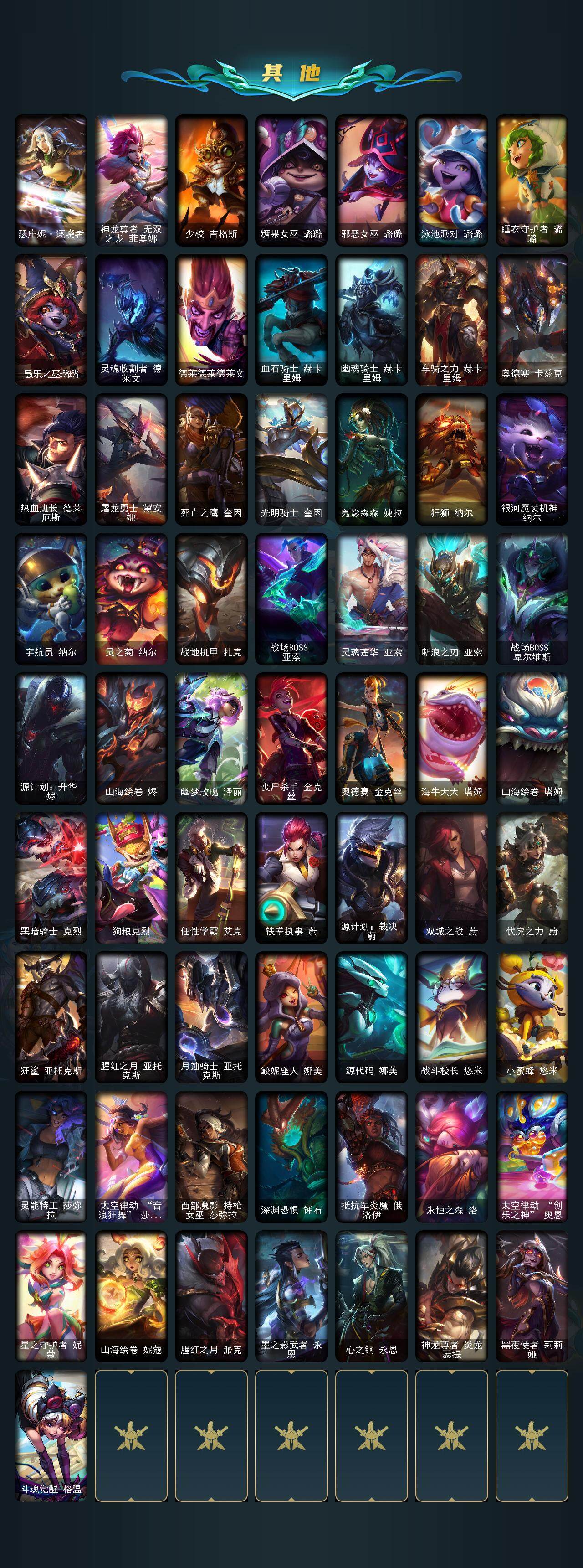 【lolz1068】171英雄/629皮肤/2终极/17神话/93限定/12臻彩/128炫彩/58传说/122史诗/未定级/至臻kda伊芙琳/至臻暗星墨菲特/至臻暗裔英雄嘉文四世/至臻黑夜使者李青/至臻绒毛菲兹/至臻星之守护者辛德拉/至臻真实伤害亚索/至臻未来战士卢锡安/至臻腥红之月亚托克斯/至臻未来战士锤石/至臻源计划逆流塞拉斯/天龙之子卡莎飞龙乘云/无畏骑士瑟庄妮赤子初心/冠军之箭艾希凯旋圣装/墨之影武者亚索金墨耀影/冠军之刃锐雯2016凯旋圣装/神龙尊者圣龙李青龙腾云起/泳池派对奥莉安娜优雅珠光鲸/春晖神女艾希玉露金风/魔女阿卡丽虚荣/净雪之月莫甘娜冬虹/墨之影武者永恩灵墨刻影/心之钢伊泽瑞尔天纵才华/银龙裁决泰隆/神龙之翼库奇/美猴王孙悟空/点心宝贝阿木木/海克斯科技卡萨丁/海克斯科技雷克顿/摄魂使者薇恩/觅心猫猫悠米/觅心女王艾希/觅心魔灵奥莉安娜/幽梦玫瑰辛德拉/幸福女神乐芙兰/圣诞开心鬼提莫/圣诞精灵崔丝塔娜/圣诞狂欢努努和威朗普/圣诞糖果棒厄运小姐/圣诞狂欢基兰/阿木木“主人不要我了”/胡桃夹子萨科/平安夜女神娑娜/英勇玩具兵普朗克/喜庆之树茂凯/冬季仙境奥莉安娜/雪装奈德丽/圣诞玩偶波比/冰雪驯鹿波比/圣诞驯鹿克格莫/魄罗骑士瑟庄妮/圣诞老人德莱文/冰雪节辛吉德/北极星圣贤基兰/北极星猎人斯维因/北极星使者彗/未来战士伊泽瑞尔/武装战姬厄运小姐/十周年纪念安妮/源代码乐芙兰/神凰行者瑞羽圣凰艾尼维亚/养蜂人辛吉德/创星之灵璐璐/冠军典狱长锤石/fnatic迦娜/fnatic嘉文四世/暗杀星奥莉安娜/暗杀星蒙多/暗杀星努努和威朗普/sktt1贾克斯/sktt1劫/sktt1李青/sktt1薇恩/ssw图奇/ssw泰隆/ssw雷恩加尔/sktt1瑞兹/sktt1艾克/sktt1娜美/ssg嘉文四世/ssg纳尔/ssg霞/ig艾瑞莉娅/t1永恩/电玩勇者锐雯/电玩女神阿狸/暗裔英雄盖伦/胜利女神莫甘娜/胜利女神希维尔/胜利之树茂凯/胜利呛神格雷福斯/胜利女神奥莉安娜/胜利之剑亚托克斯/胜利呛神卢锡安/南瓜头费德提克/大魔法锅布里茨/鬼影重重魔腾/小恶魔菲兹/无头骑士赫卡里姆/魅惑女巫崔丝塔娜/魅惑女巫伊莉丝/泳池派对奥莉安娜/泳池派对格雷福斯/泳池派对普朗克/泳池派对瑟提/泳池派对塔莉垭/蒙多蒙多/密林猎手提莫/外星装甲库奇/暗影沃里克/星之守护者芮尔/野兽猎人德莱文/波比的巧克力工坊/勇者奈德丽/都铎王朝图奇/斗魂觉醒佛耶戈/御星魔矢艾希/战场boss吉格斯/钢铁之翼艾尼维亚/防暴士兵格雷福斯/防暴士兵辛吉德/防暴天使凯尔/双城之战2微光实验室辛吉德/双城之战2斗士蔚/地狱之门卫士加里奥/魔幻卡牌崔斯特/战地机甲厄加特/邪鸦魅影乐芙兰/血石领主弗拉基米尔/大天使长米迦勒凯尔/战场女武神凯尔/钢铁之翼凯尔/源计划林易/恶魔男爵瑞兹/霸天零式赛恩/提莫约德尔人的一大步/约德尔国队长提莫/驯龙炮手崔丝塔娜/合金巨兽努努和威朗普/女皇艾希/恶魔之刃泰达米尔/鬼魂新娘莫甘娜/绅士科加斯/黯晶凤凰艾尼维亚/律政大亨蒙多/灵能特工娑娜/冰霜之刃艾瑞莉娅/红色男爵库奇/最终boss维迦/陆地王者4wd布里茨/太空律动猫猫布里和里茨/冰川巨兽墨菲特/上古战魂魔腾/地狱行者孙悟空/神龙尊者圣龙李青/光明哨兵薇恩/第三类接触黑默丁格/驯龙学者黑默丁格/炼狱魔犬内瑟斯/屠龙勇士潘森/源计划超体莫德凯撒/死亡骑士盖伦/神王盖伦/日蚀骑士蕾欧娜/星之守护者拉克丝/枯萎之壤泽拉斯/黯黑魔龙希瓦娜/冰霜亚龙希瓦娜/焰尾妖狐阿狸/光明哨兵格雷福斯/苍穹之光韦鲁斯/宇航员诺提勒斯/女校长菲奥娜/霸天异形卡兹克/灌篮高手德莱厄斯/青花瓷奥瑞利安索尔/心之钢凯隐/天煞劫/灵魂莲华锤石/源计划毁灭派克/至高天派克/狼神英灵安蓓萨/安伯斯与提妮/科学怪熊的新娘安妮/皇家火呛手崔斯特/特战先锋赵信/摄魂男爵弗拉基米尔/铁钩船长费德提克/重生之沙费德提克/圣光审判凯尔/地狱火阿利斯塔/战争机器赛恩/战场公主希维尔/钢铁之心希维尔/圣洁化身索拉卡/源代码索拉卡/火箭达人崔丝塔娜/狼外婆沃里克/火牙狼人沃里克/荒野豺狼沃里克/黑帮狂花厄运小姐/国王泰达米尔/百夫长贾克斯/刀锋女王莫甘娜/黑色荆棘莫甘娜/炼金狂士辛吉德/死神卡尔萨斯/侏罗纪化石科加斯/殇之机器人阿木木/熔火之心拉莫斯/贵族血统萨科/飞越疯人院萨科/战争血统蒙多/夜行义贼艾瑞莉娅/海克斯科技迦娜/寒冰女皇迦娜/星之守护者迦娜/恐惧新星普朗克/血石诅咒塔里克/穿着正装的恶魔维迦/北领前线斯维因/抵抗军天使凯特琳/古墓丽影凯特琳/霸天巨兽墨菲特/无畏号墨菲特/海贼魅影卡特琳娜/暗夜猫女卡特琳娜/前线指挥官卡特琳娜/源计划雄心卡特琳娜/蓝焰梦魔魔腾/枯萎之壤雷克顿/凯旋英雄嘉文四世/灵骨工匠奥莉安娜/暗星奥莉安娜/v字仇杀者布兰德/防弹武僧李青/至高之拳李青/地下拳王李青/深海妖姬卡西奥佩娅/生化博士黑默丁格/法老王朝内瑟斯/艳后奈德丽/铁血猎手奈德丽/四神之力乌迪尔/军神战甲波比/血色之锤波比/冰川勇者伊泽瑞尔/死亡领主莫德凯撒/铁血女忍阿卡丽/刺客信条凯南/腥红之月凯南/铁甲雄心盖伦/孤高游侠盖伦/钢铁烈阳蕾欧娜/源计划山蕾欧娜/至高君王玛尔扎哈/刺客信条锐雯/兔女郎锐雯/帝王斑蝶克格莫/侏罗纪化石克格莫/腥红之月鬼武者慎/战国大名慎/奥术光辉拉克丝/星际迷航拉克丝/钢之逆鳞希瓦娜/银河魔装机神希瓦娜/暗影妖狐阿狸/黑帮