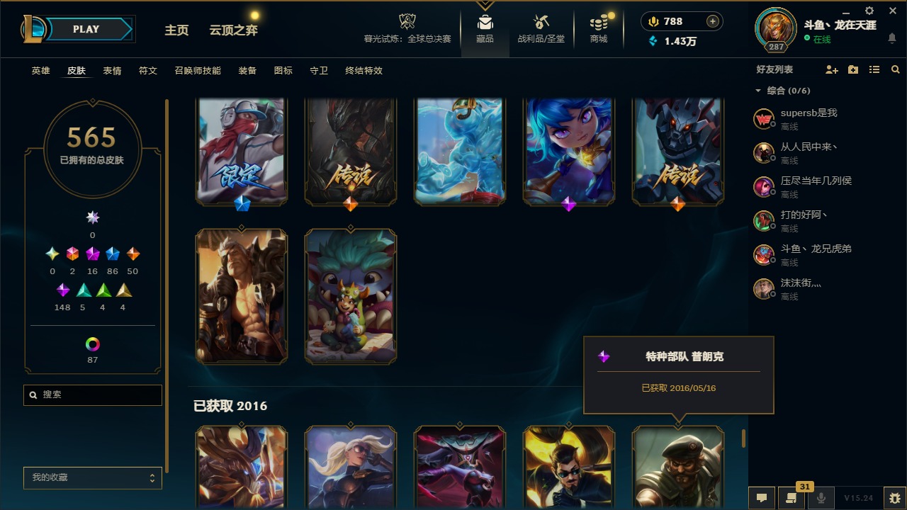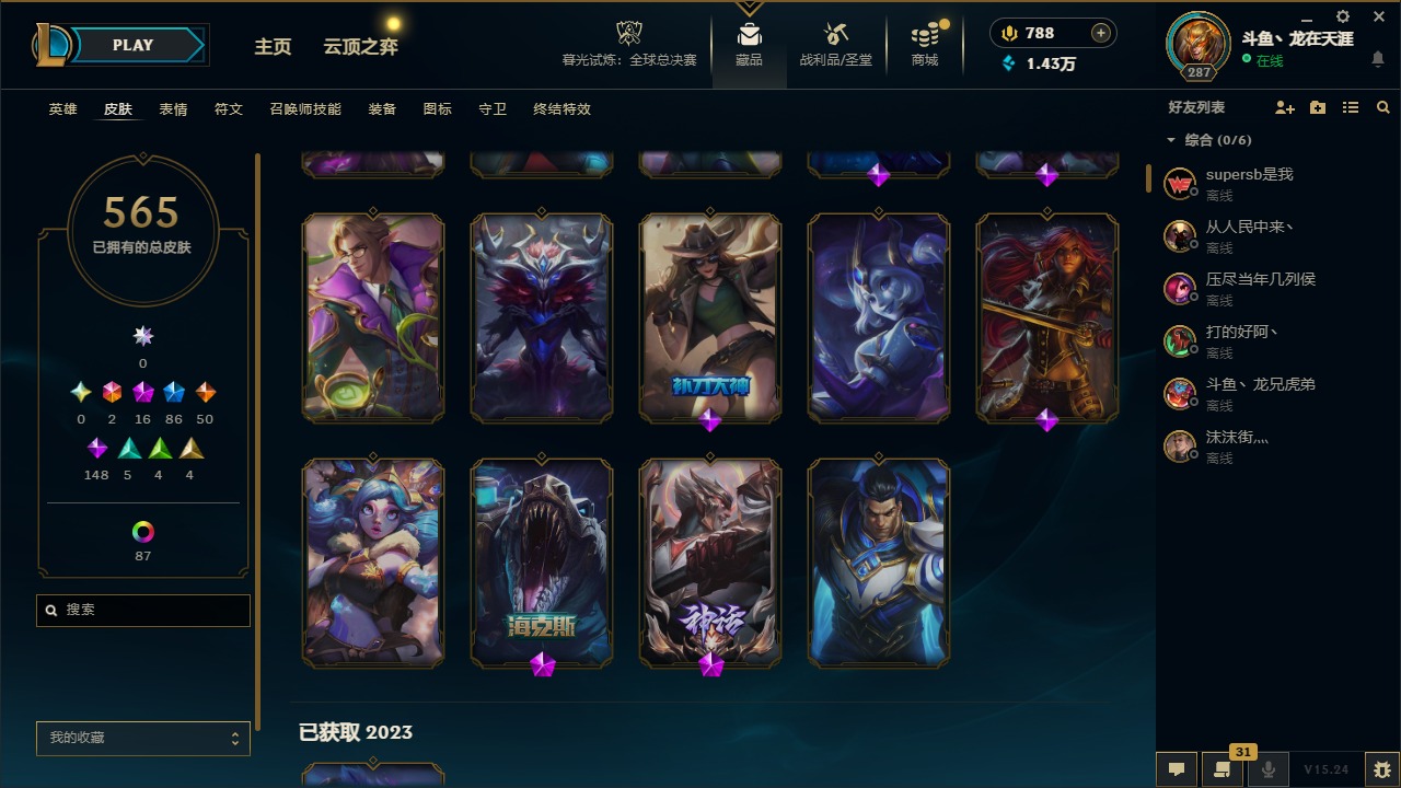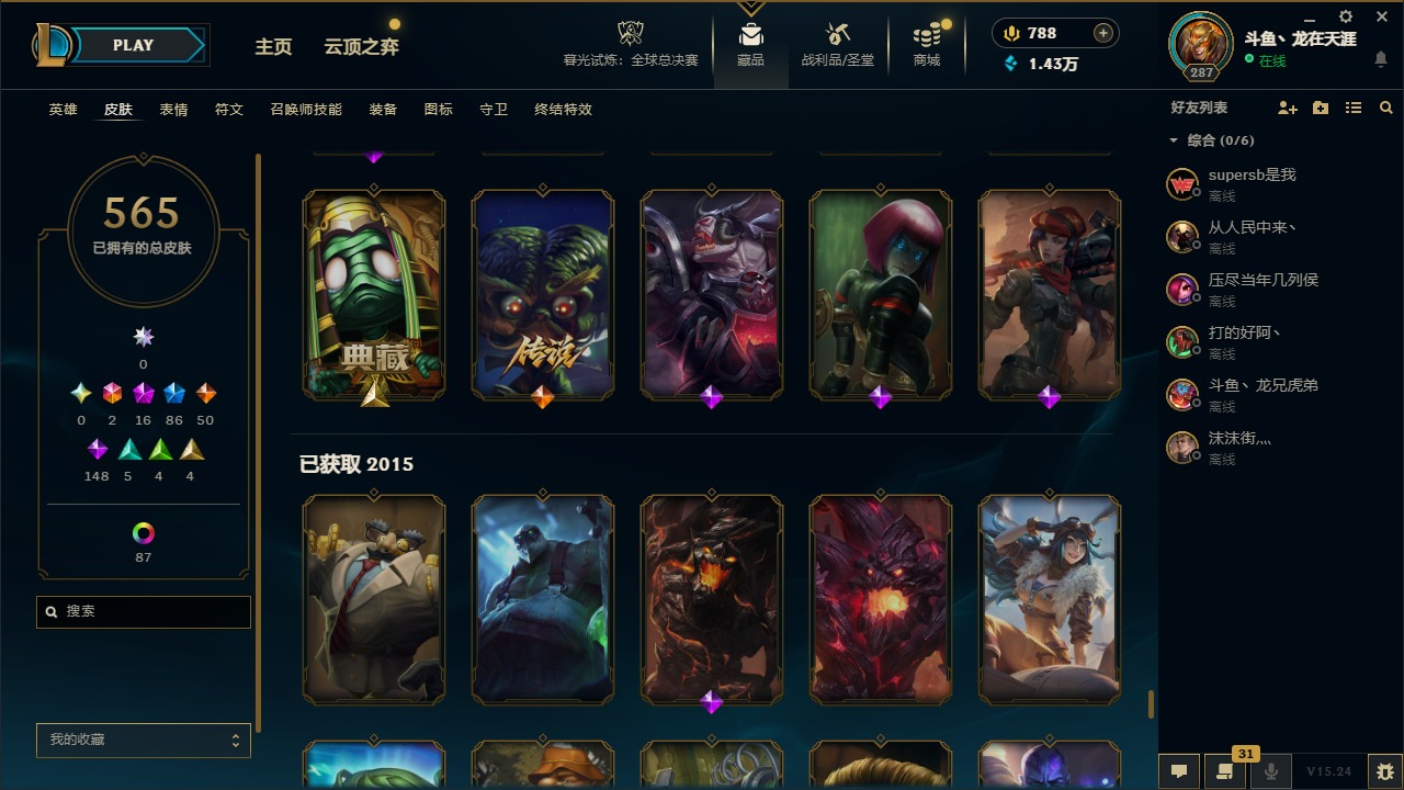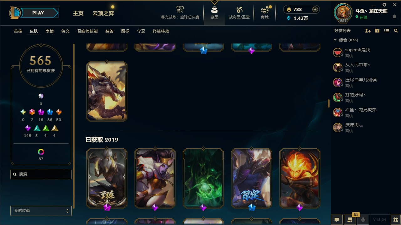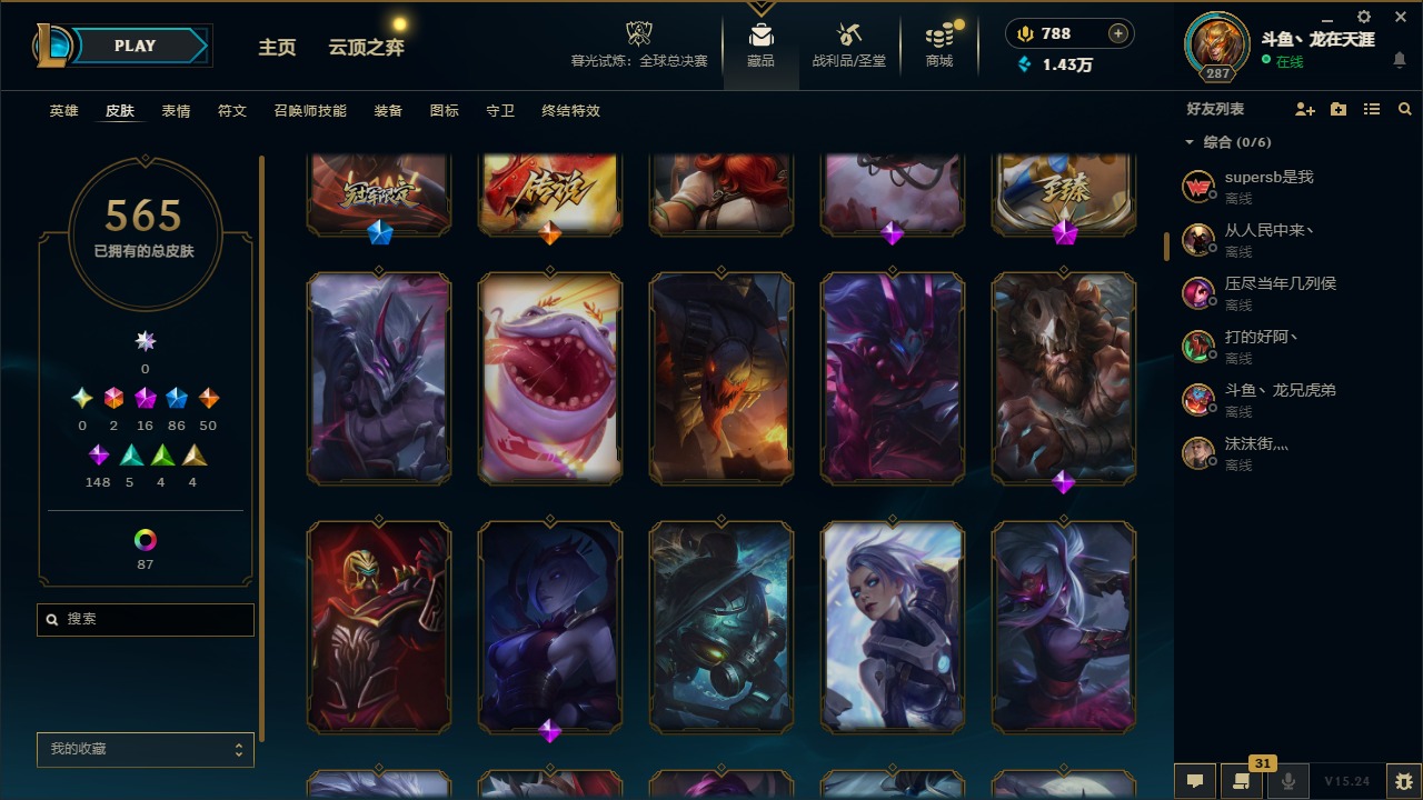 2终极 16神话 86限定 50传说 148史诗 565皮肤 106炫彩 172英雄 可二次 可修改实名 【至臻】至臻 王国机神玄武 盖伦至臻 黑夜使者 李青至臻 腥红之月 亚托克斯至臻 魔女 婕拉至臻 玉剑传说 武剑仙至臻 未来战士 卢锡安至臻 凯旋将军 德莱厄斯至臻 绒毛菲兹